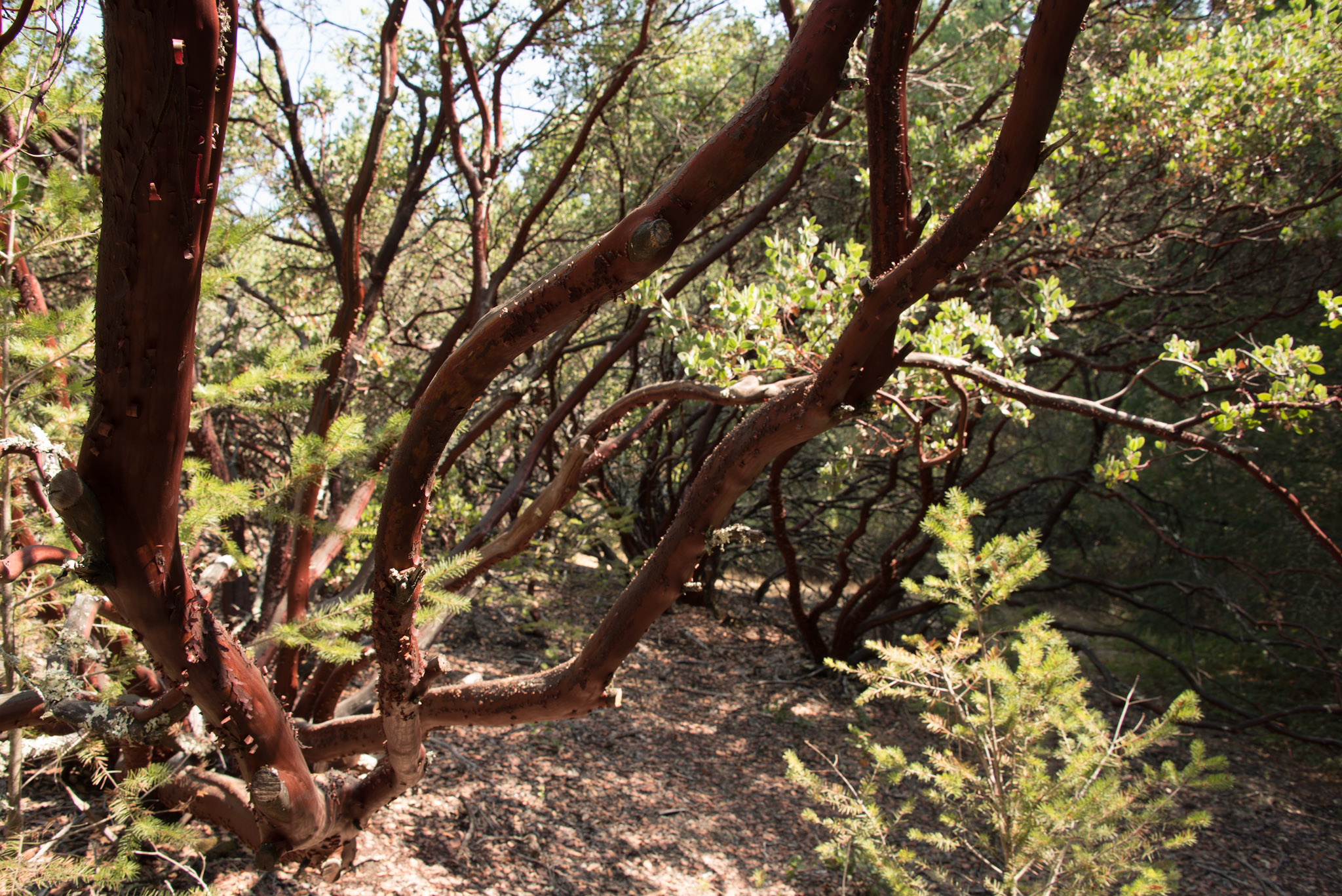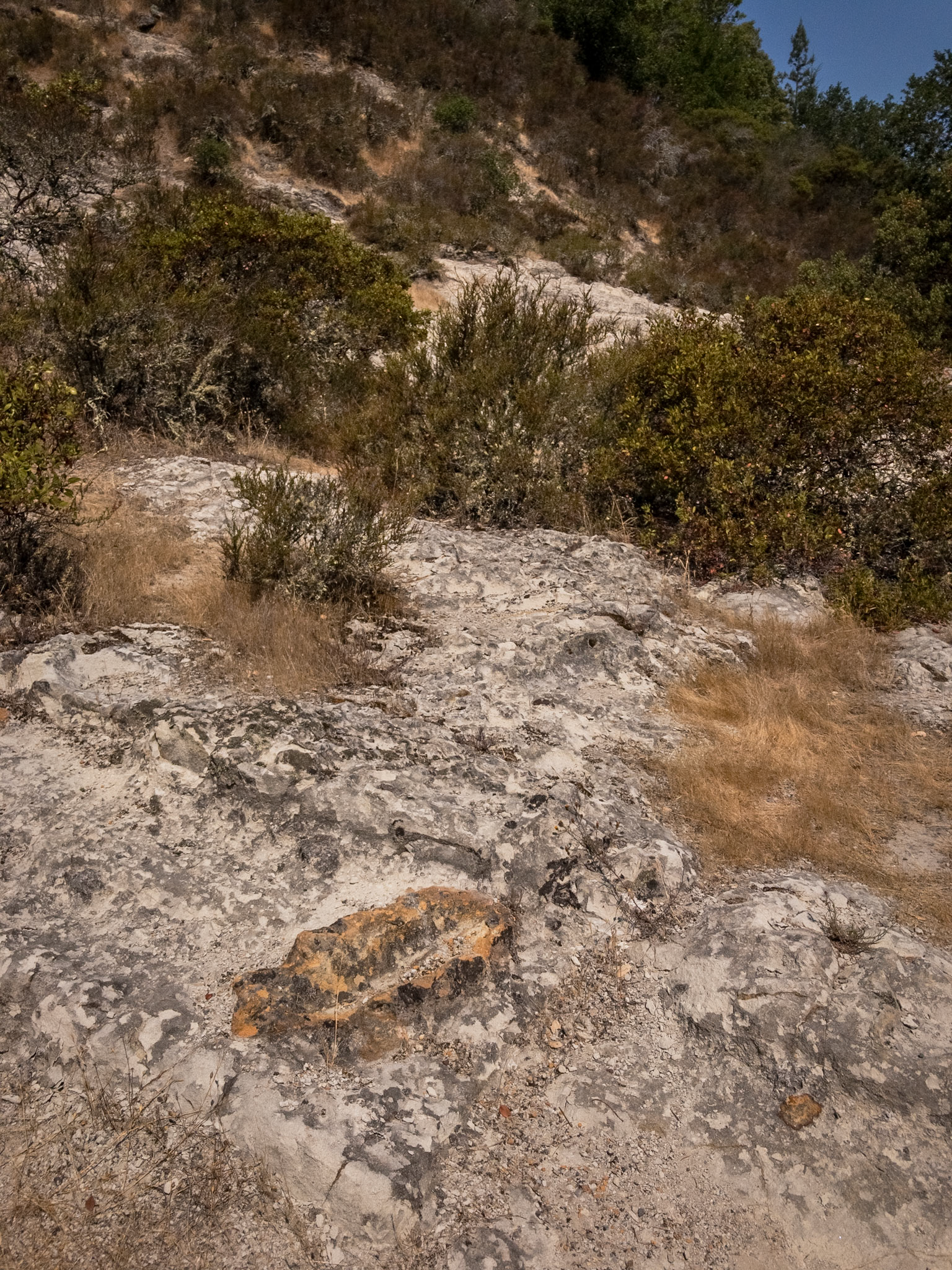 At any rate, it was an interesting little jaunt through the forest of long-dead, often moss-covered giants lying on the ground with red-barked Manzanita trees and Poison Oak peppering the landscape. Often we found ourselves walking on what I thought was poorly poured concrete, only to learn that the same ash that covered and killed the trees also coated the forest floor in a light grey coating, hardening over time.