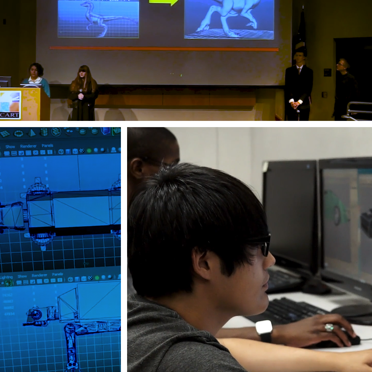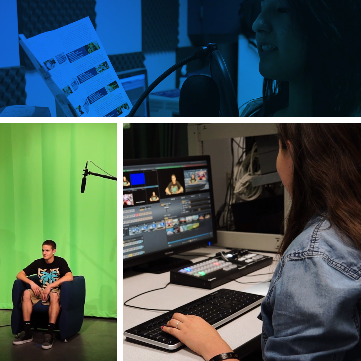 Students develop skills in television and film production. Using industry-standard software packages (i.e. Adobe CC), students will engage in hands-on, integrated curriculum. They work on all stages of production while creating products such as short films, advertisements, journalism broadcasts, and documentaries. All multimedia students develop skills in the content and presentation of message design, the sociological impacts of media, and the stages of the production cycle.