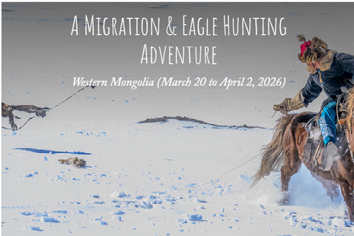 After completing the migration we will then drive to our final location at the base of the Altai mountains, where we will stay for a further four nights at a custom-built ger camp alongside an extended family of eagle hunters. Over the next three days, we will first shadow a group of eagle hunters as they ride into the surrounding peaks to hunt for foxes, before witnessing a private community festival to celebrate the coming of spring. This usually involves competitive mock hunts with eagles, incredible feats of horsemanship, and even a game of bushkashi (a kind of polo with a goat carcass).
