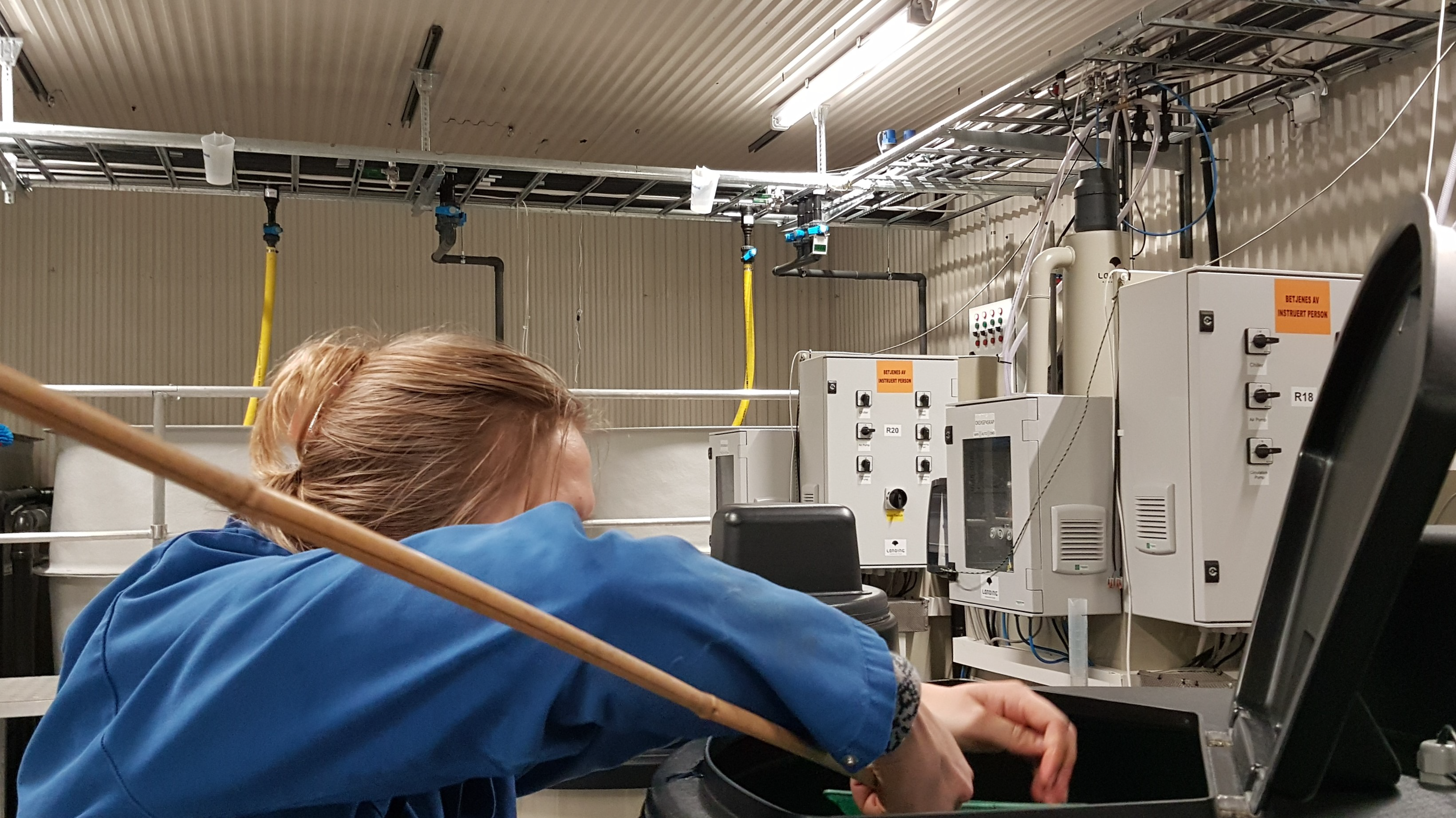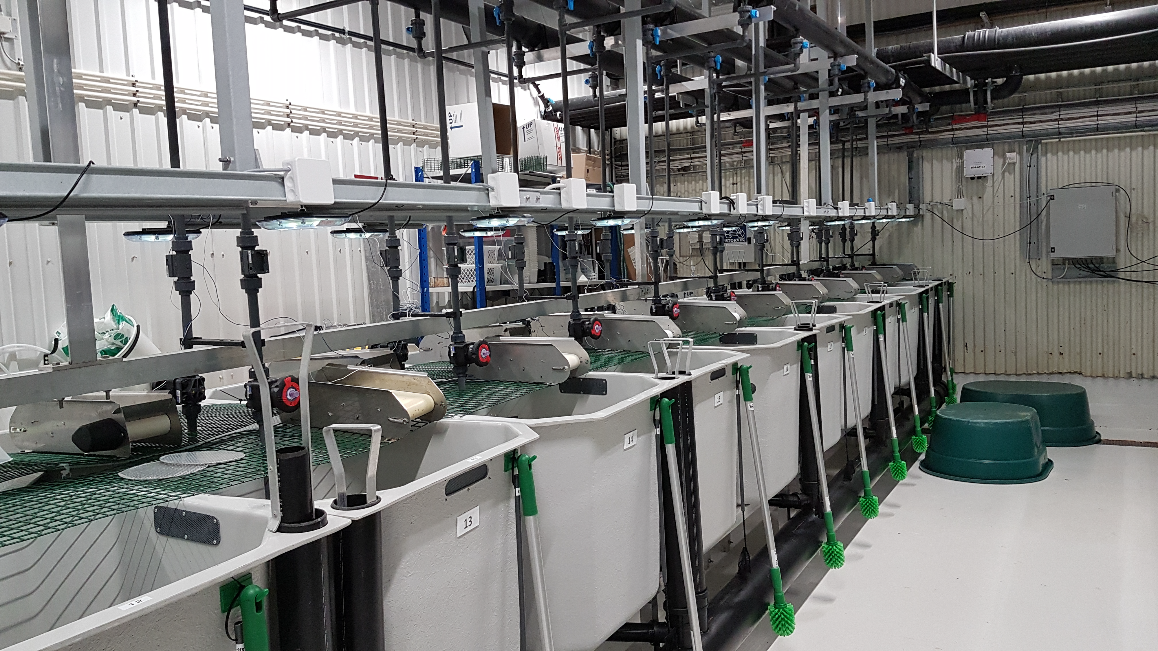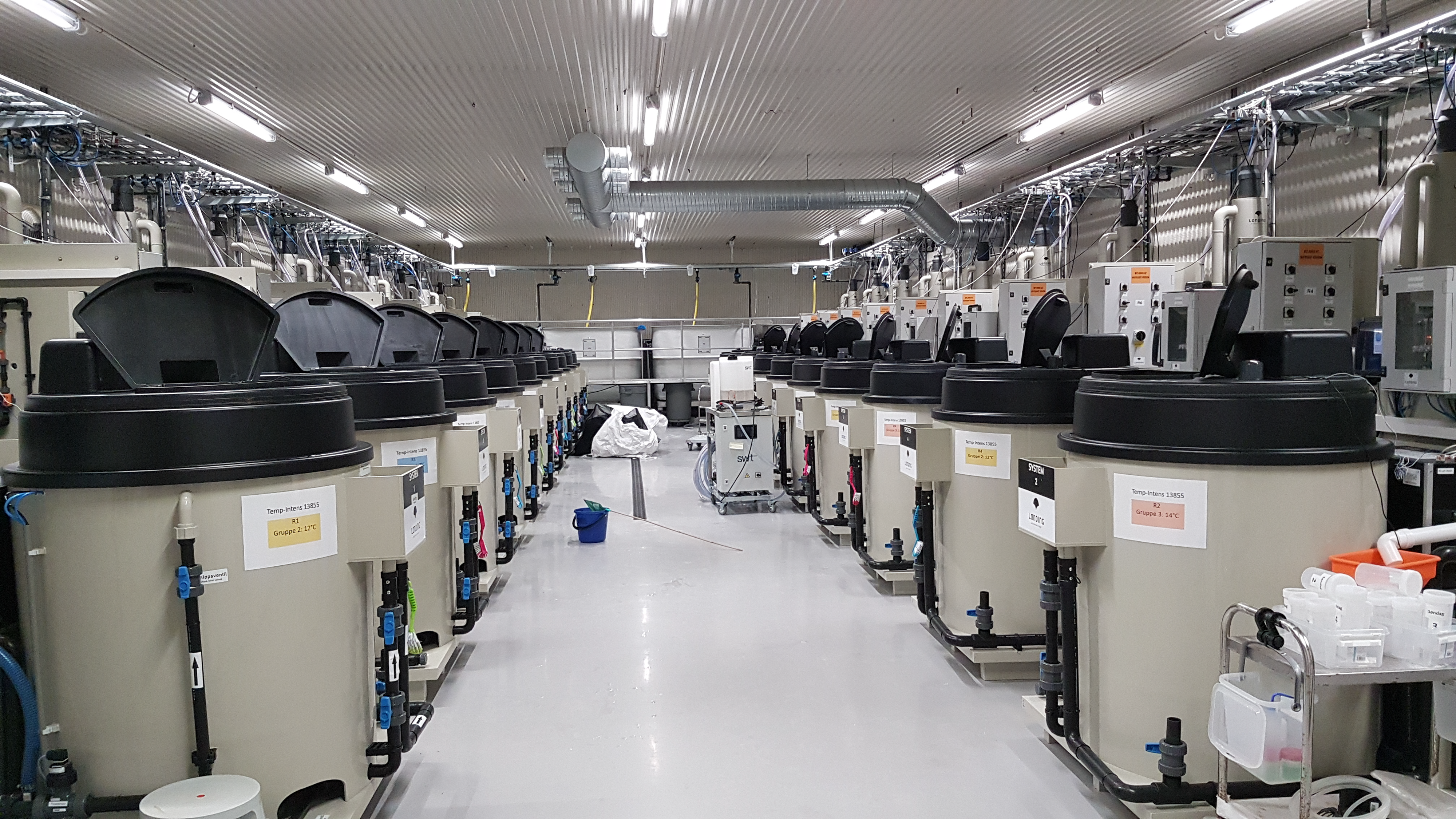 Den andre halvparten fordeles over 16 kar med individuelle resirkuleringsenheter (RAS).