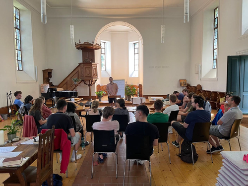 Etwa 20 Jugendliche kamen für eine Woche zu uns in die Bridgetown Church, die Dorfkirche in Kleinhüningen. Dort wohnten sie mit Schlafsack und Mätteli, dort assen wir zusammen, dort trafen wir uns zu den Gruppenzeiten. Jeder Tag begann mit einer Zeit der Stille in der Gruppe. Danach gab es einen Input zu den vier Punkten unseres Jüngerschaftsprogramms – Gott kennen, Gott vertrauen, Gott lieben, Gott gehorchen – und jemand aus dem Leiterteam teilte sein Herz mit uns. Nach einem herrlichen Mittagessen ging es in verschiedenen Gruppen in die Einsätze.