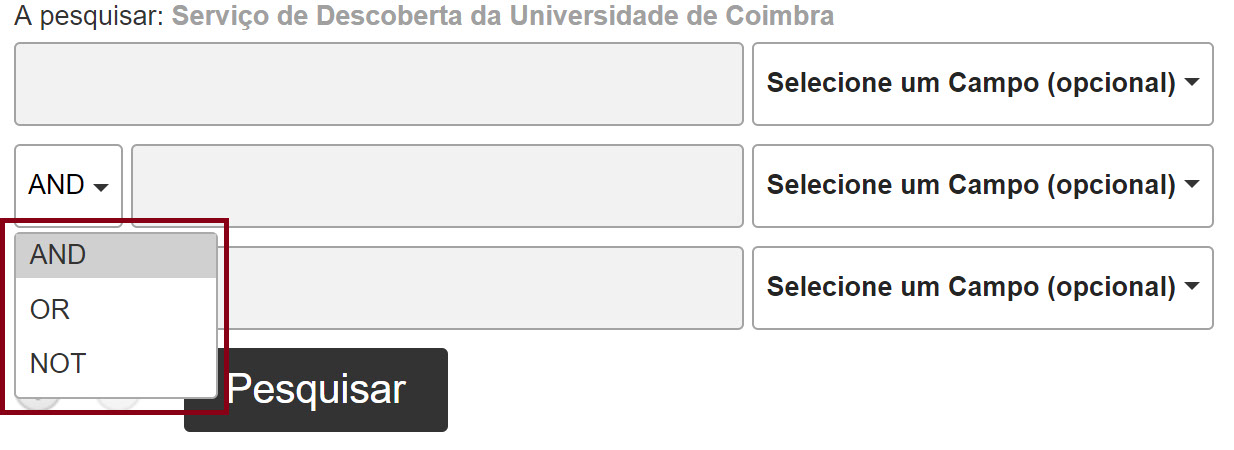 - Combinar termos através de operadores lógicos (AND, OR ou NOT)