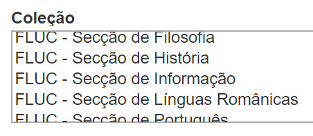 No campo "Coleção" são enlencadas as coleções do repositório da UC, o Estudo Geral