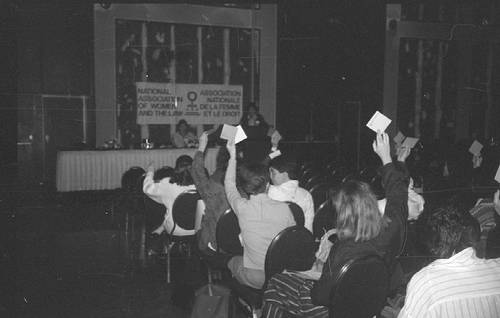 Cover Image: Black and white photograph of NAWL event, Winnipeg (1987), 10-036-S8-F5-I4, NAWL fonds (10-036), Archives and Special Collections, University of Ottawa.