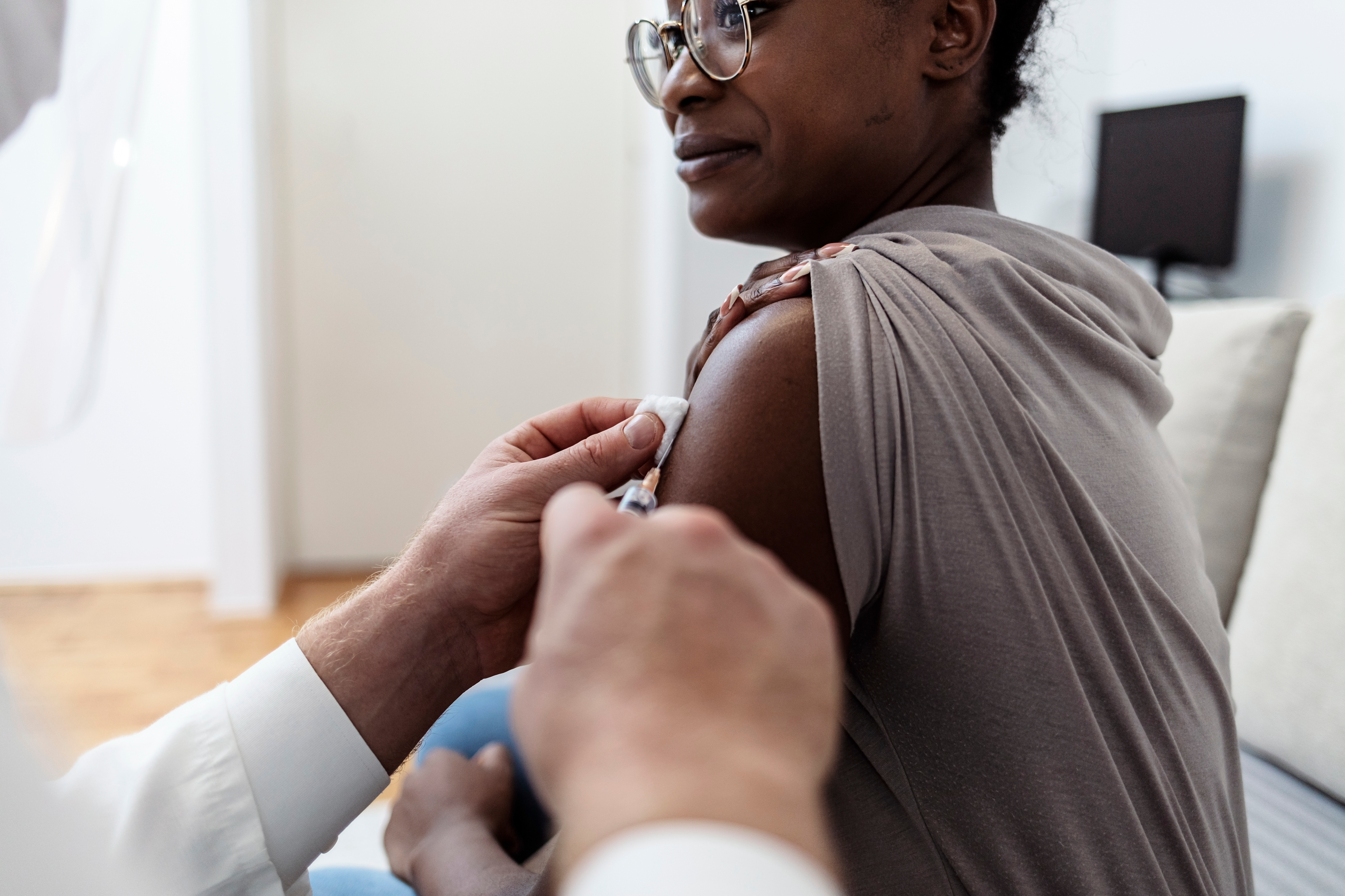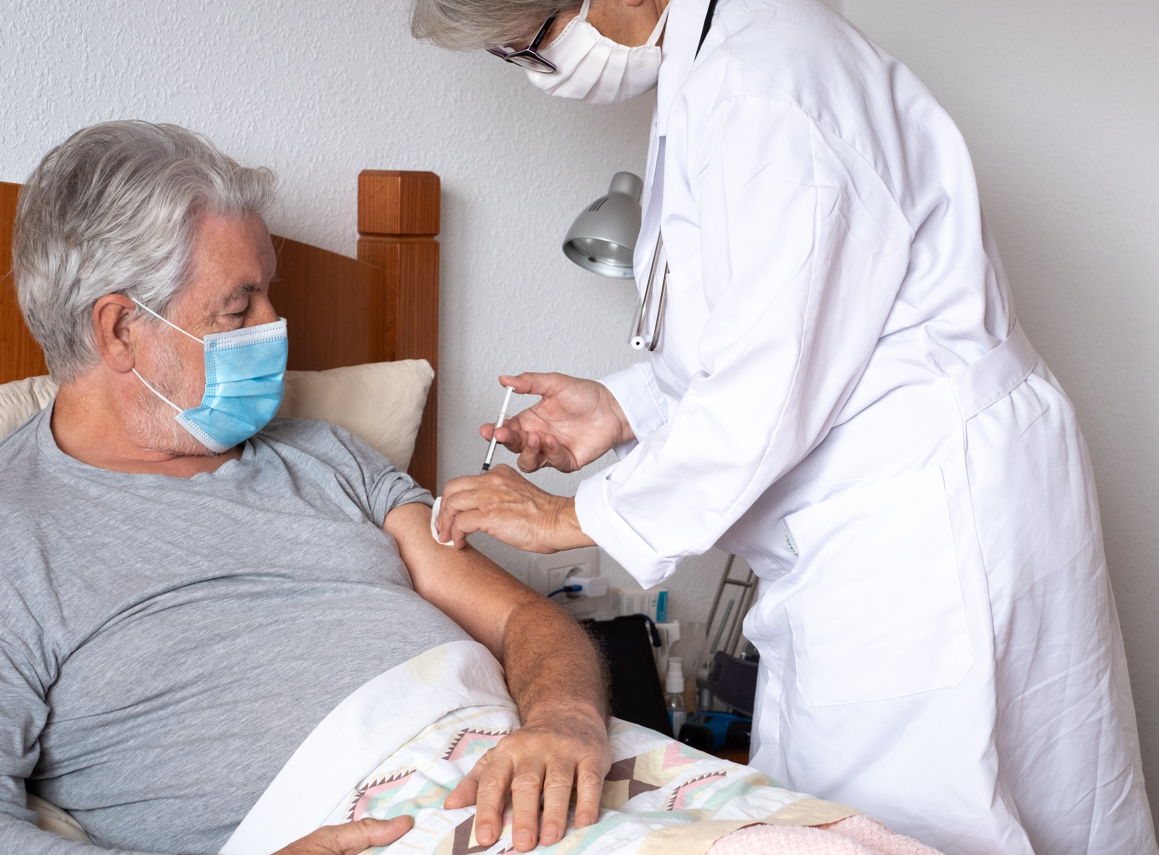 Created with images by Monkey Business - "Doctor talking to senior couple in hospital" • bernardbodo - "Senior man getting vaccinated at hospital" • Paul Maguire - "Frail old woman lying in a bed in hospital or nursing home, UK" • carballo - "senior couple wearing masks with coronavirus symptoms" • Treecha - "A doctor or scientist in the COVID-19 medical vaccine research and development laboratory holds a syringe with a liquid vaccine to study and analyze antibody samples for the patient. " • Khunatorn - "Vaccination healthcare concept. Hands of doctor or nurse in medical gloves injecting a shot of vaccine to a man patient." • Jelena Stanojkovic - "Shot of healthcare worker injecting black female patient with COVID-19 vaccine. Beautiful young black girl takes seasonal flu jab. Black woman getting injection at home. Immunization, COVID-19 vaccine" • thodonal - "Concept of elderly support" • smolaw11 - "Hopeful lover emotional in hospital, Woman Best friend hugging visits her girlfriend recovering that sick lying on bed. Lovingly embrace smile with support happiness care from family healthy moment" • luciano - "Coronavirus. Female doctor injects covid-19 vaccine to an elderly man in bed during a home visit" • pikselstock - "Woman hugging her elderly mother " • fizkes - "Close up Indian woman planning budget, using calculator and laptop, reading documents, young female checking finances, counting bills or taxes, online banking services, sitting at desk" • Viglietti/peopleimages.com - "Dedicated to personal quality care. Shot of a female nurse assisting her senior patient."