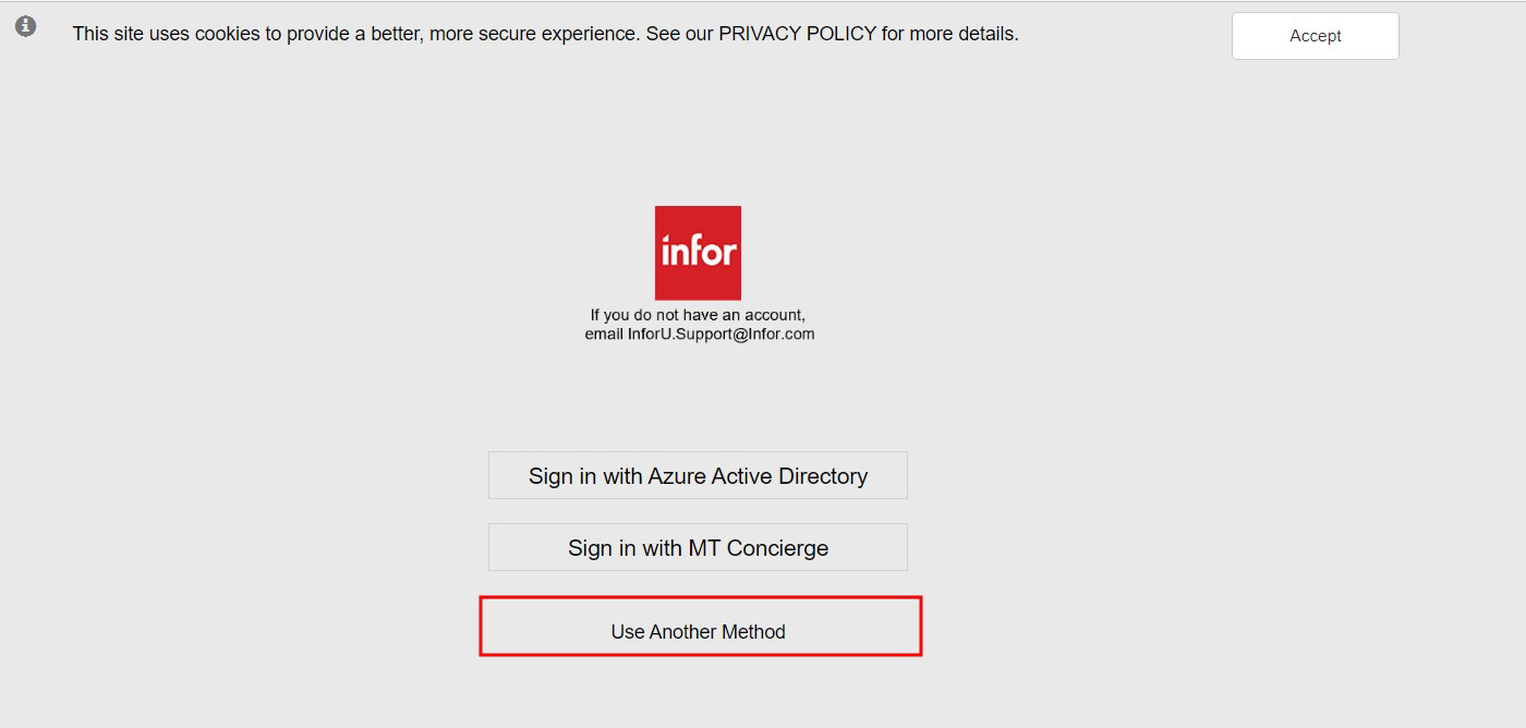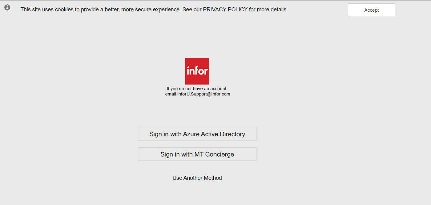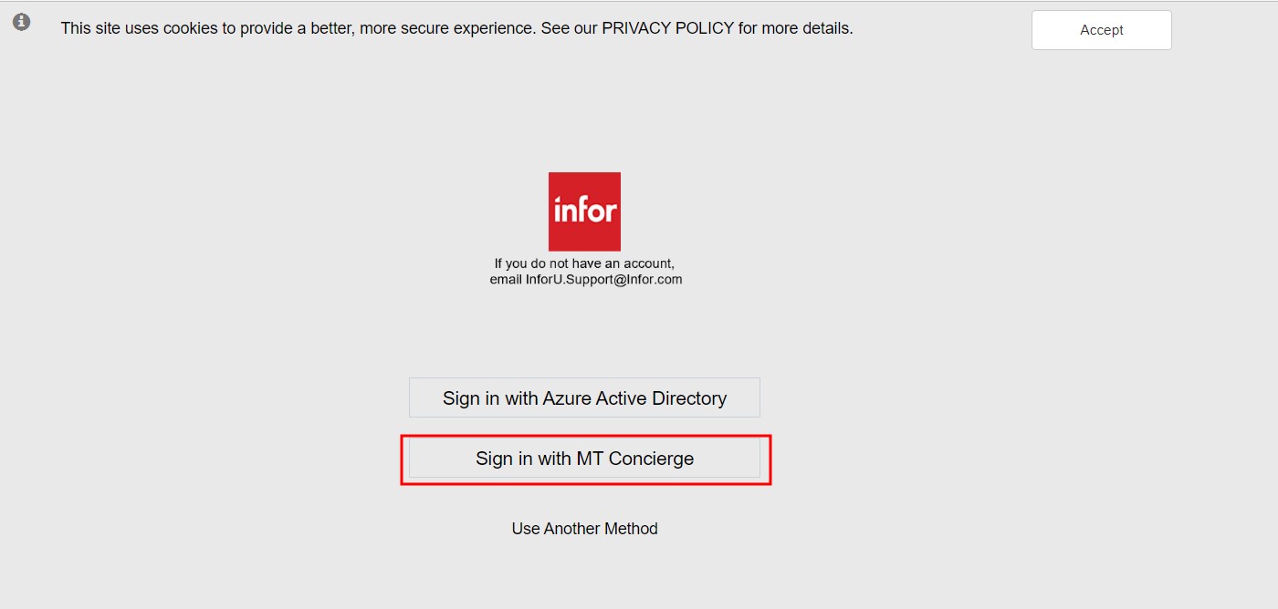 - The customers should have an Infor Concierge account to log in via Sign in with MT Concierge.