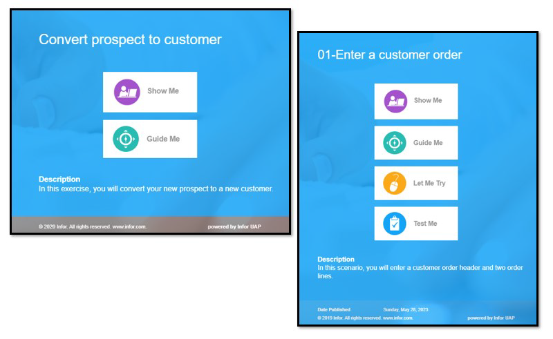 Example of SDL - Exercise (Convert prospect to customer) & eLearning - End User Simulation (01-Enter a customer order).