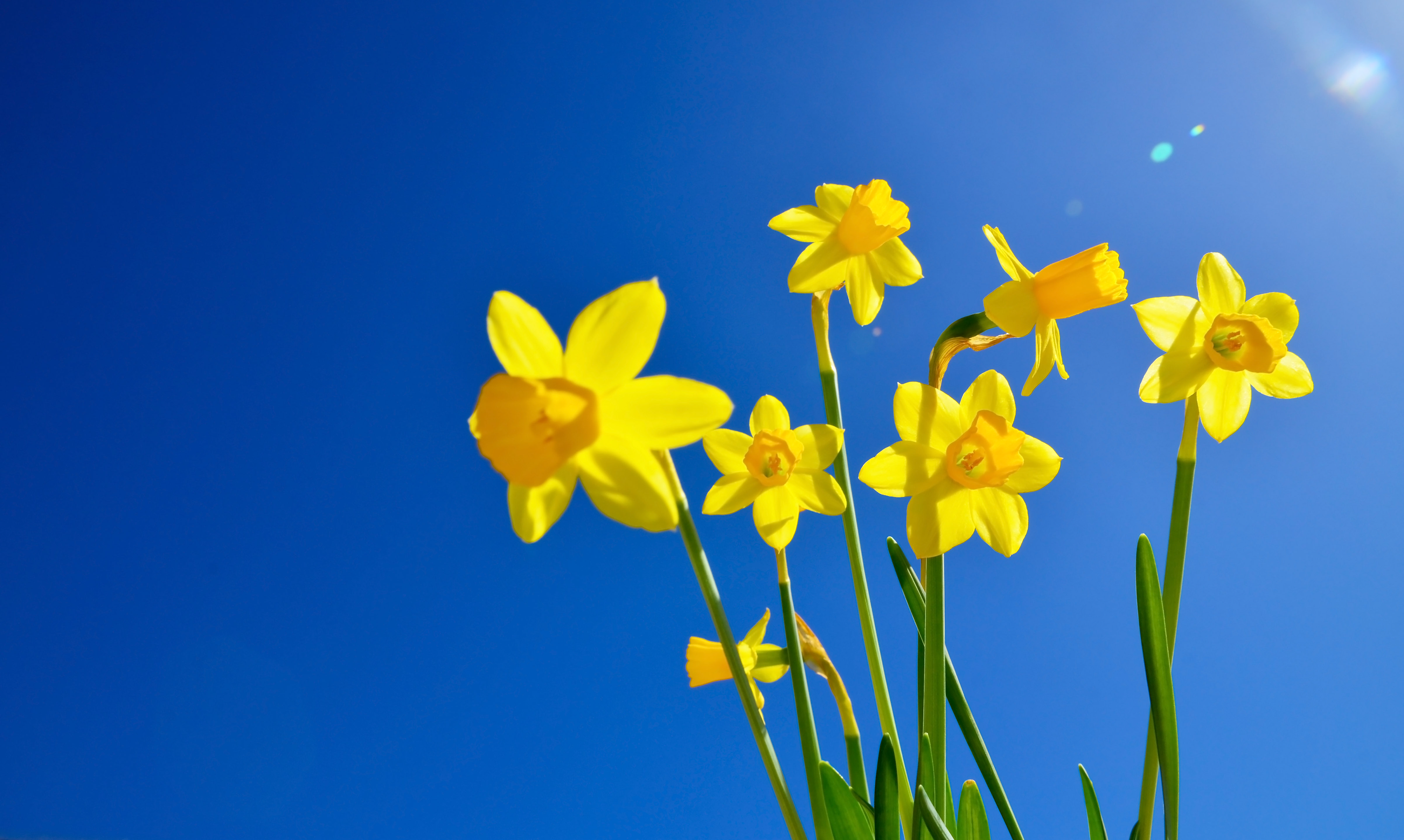 Created with an image by svf74 - "Narcissus on a blue sky background.Yellow daffodils spring flowers.Springtime concept for design with copy space.Selective focus."