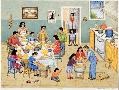 This artwork belongs in the "Family Across Cultures" room because it celebrates familial togetherness and the importance of family bonds, reflecting a theme that transcends cultures.