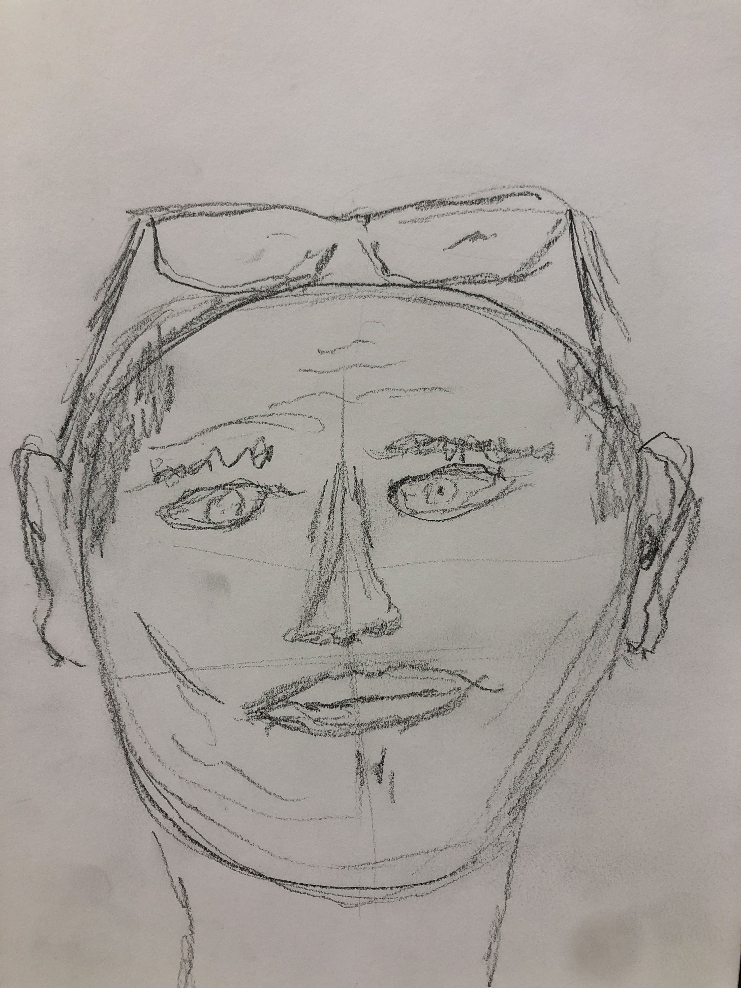 - Kijk goed naar de vorm van het hoofd. Een hoofd is niet rond of ovaal, een hoofd heeft een ei-vorm. Teken de juiste vorm. Let op: schetsen!