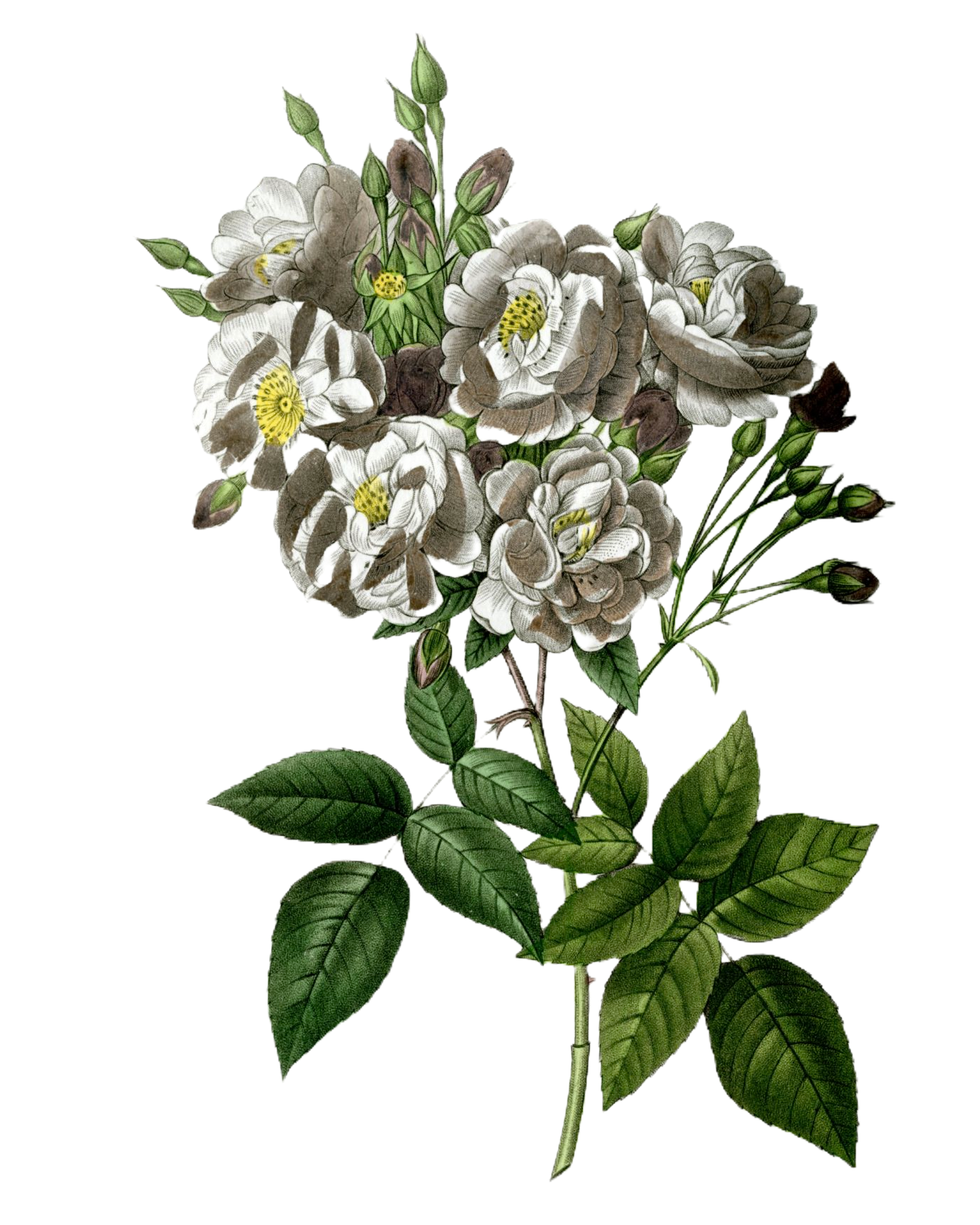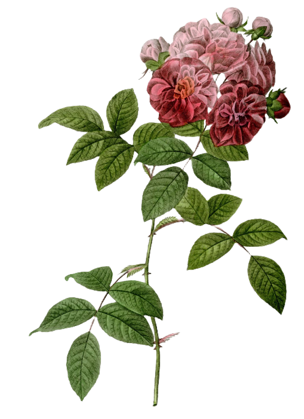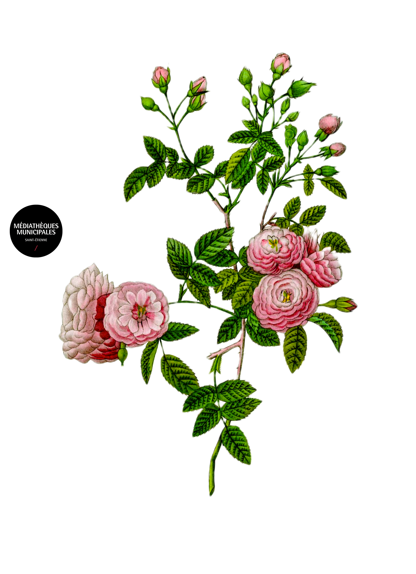 Sélection extraite de l'ouvrage " Les roses / peintes par Pierre- Joseph Redouté " ; décrites et classées selon leur ordre naturel par C. A. Thory [édition] : Pierre-Joseph Redouté ; Edité par P. Dufart , 1835.