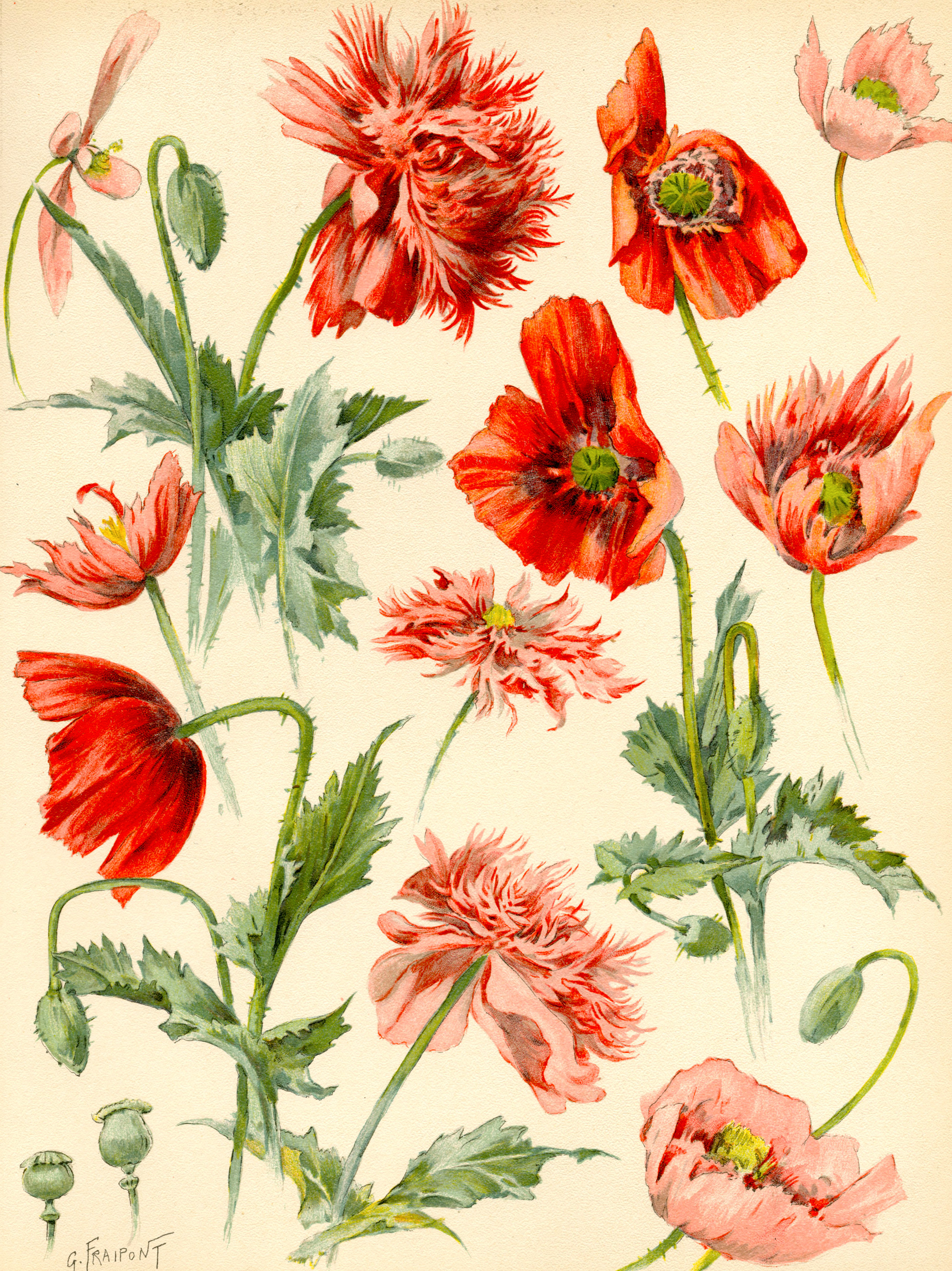 Sélection de planches extraites de "Pages d'albums : la Flore des artistes : études d'après nature" : Gustave Fraipont ; Paris, Ed. Henri Laurens, 1907
