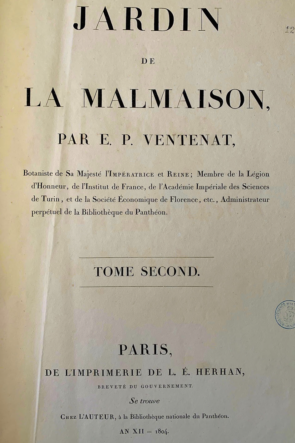 Joséphine souhaite immortaliser les plantes rares et exotiques qu'elle fait planter dans les serres du château de Malmaison. Elle confie à Étienne Pierre Ventenat (1757-1808) la partie botanique de l'ouvrage qui est un «hortus pictus» (nouveau concept de littérature accompagné d'une collection iconographique de plantes).