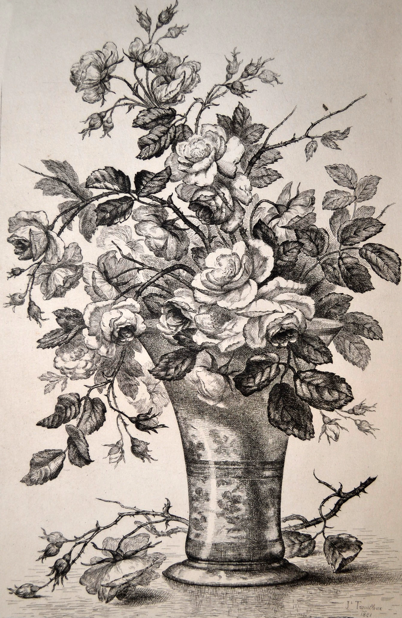Sélection extraite de l'ouvrage " Eaux-fortes : fleurs, portraits, compositions diverses, paysages, motifs divers " : Jacques Trouilleux ; Edité par S.n. , 1872-1895.
