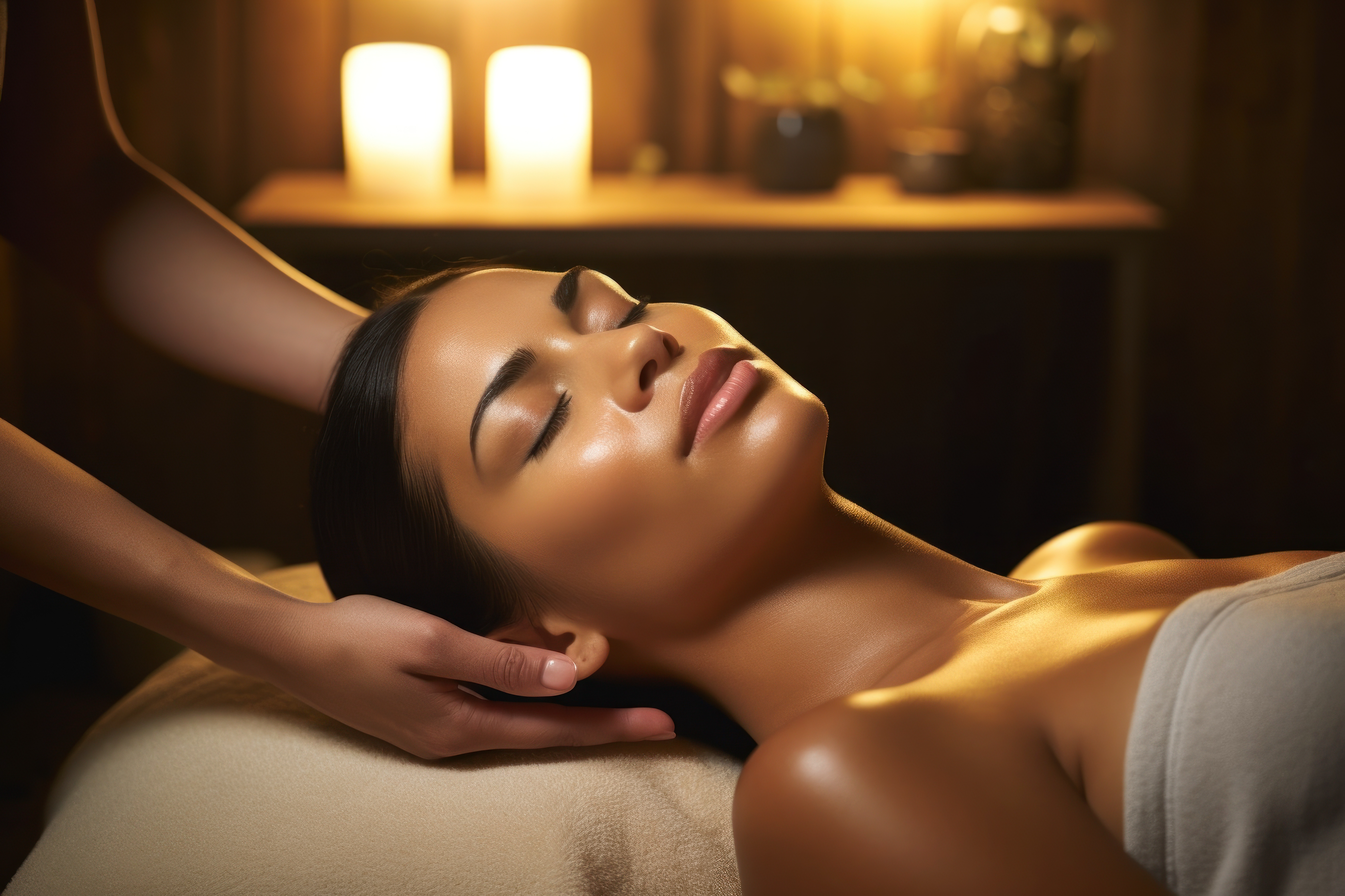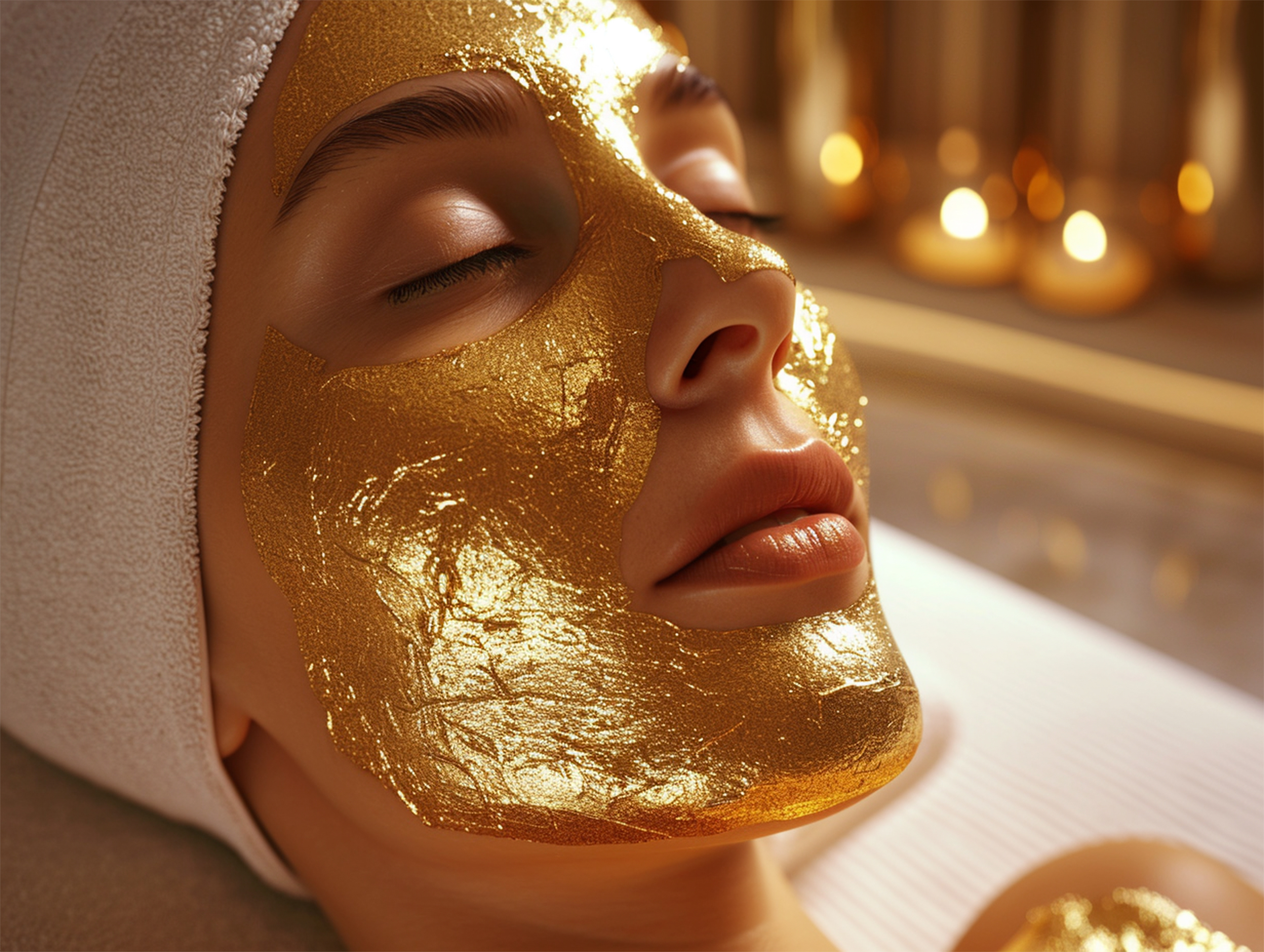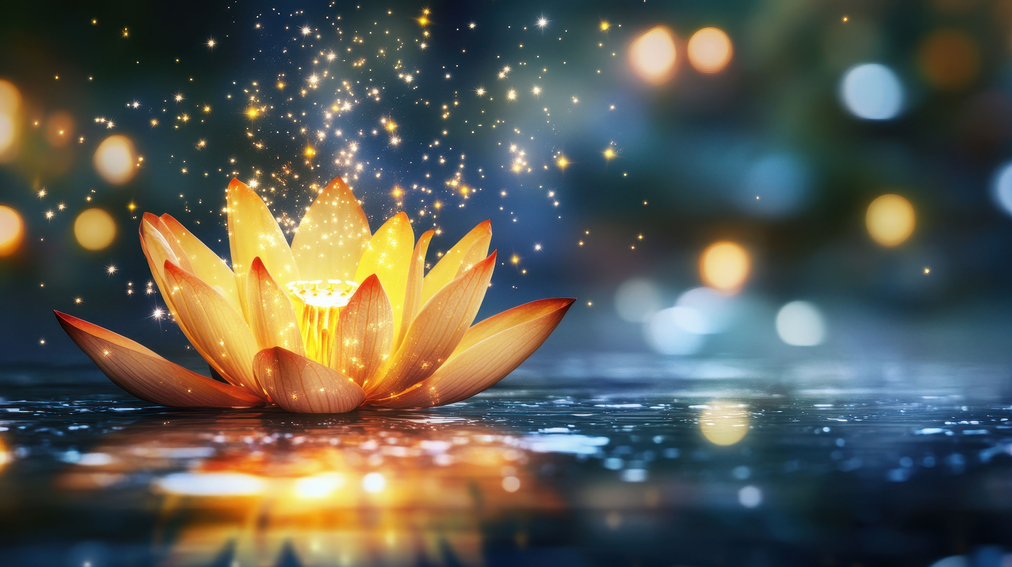 Created by House of Hives - Communication with Heart & Soul. Images by Tom - "A serene golden lotus flower blooms in tranquil waters, surrounded by a magical glow and sparkling lights." • Margo_Alexa - "A woman enjoying a luxurious gold facial mask, with soft lighting enhancing the feeling of relaxation." • Rawpixel.com - "Head massage adult woman spa." • irissca - "Mental health in Autumn season. Fall happy mood, positive emotions as a remedy for autumn depression. Autumn photo of happy beautiful girl holding glow heart shape in hands." • Elena - "Beautiful woman applying drops of oil serum on face using eye dropper"