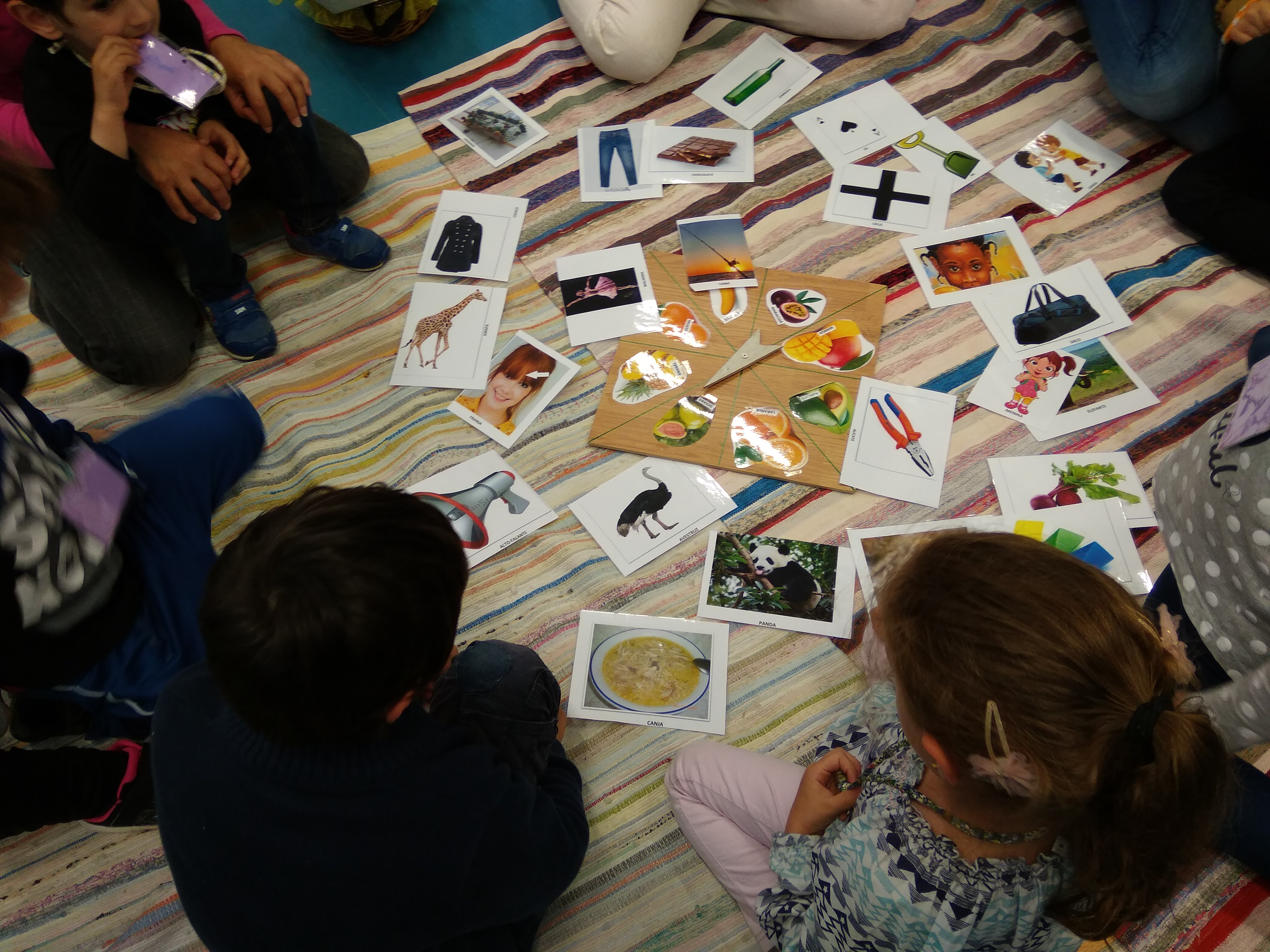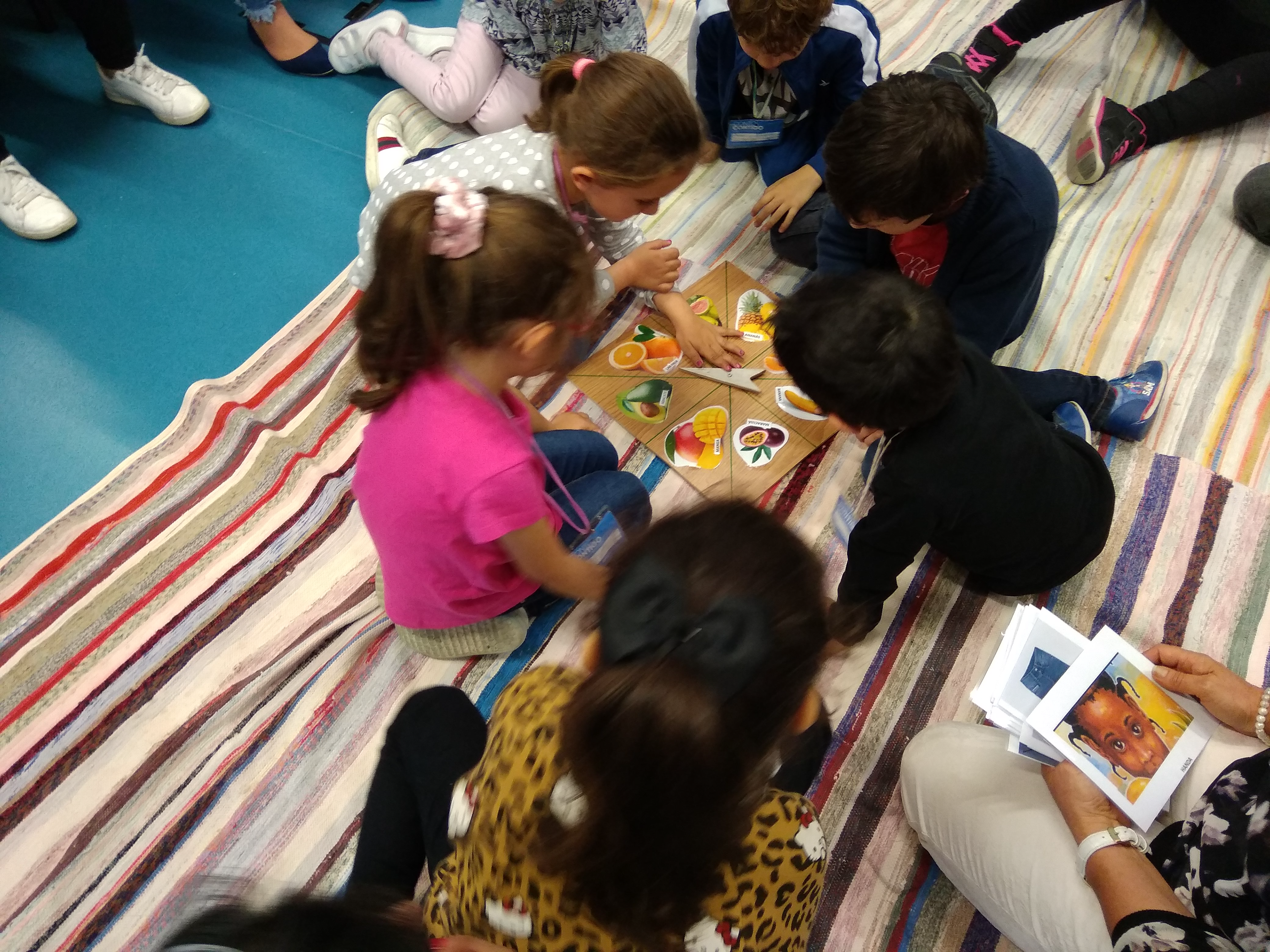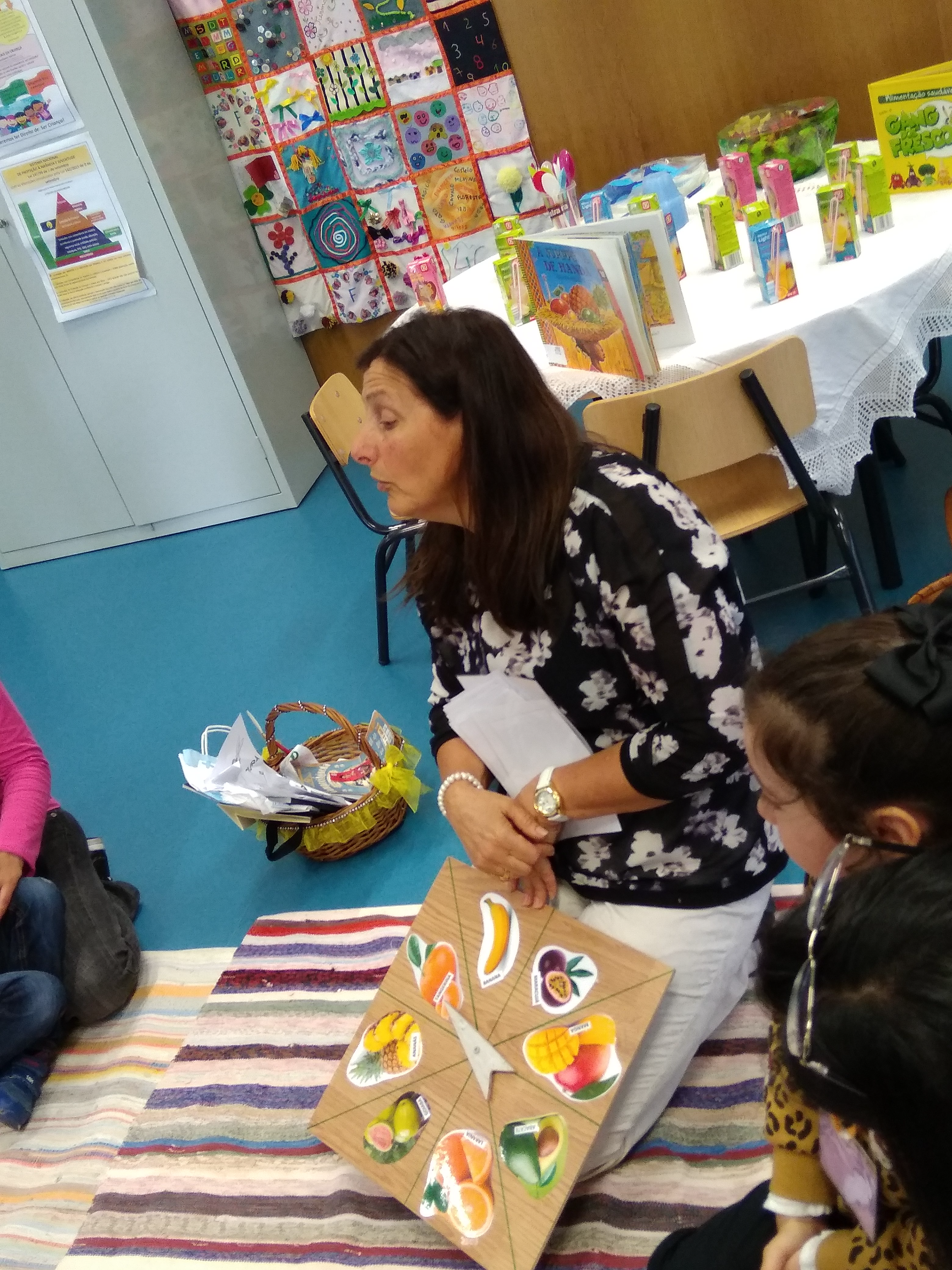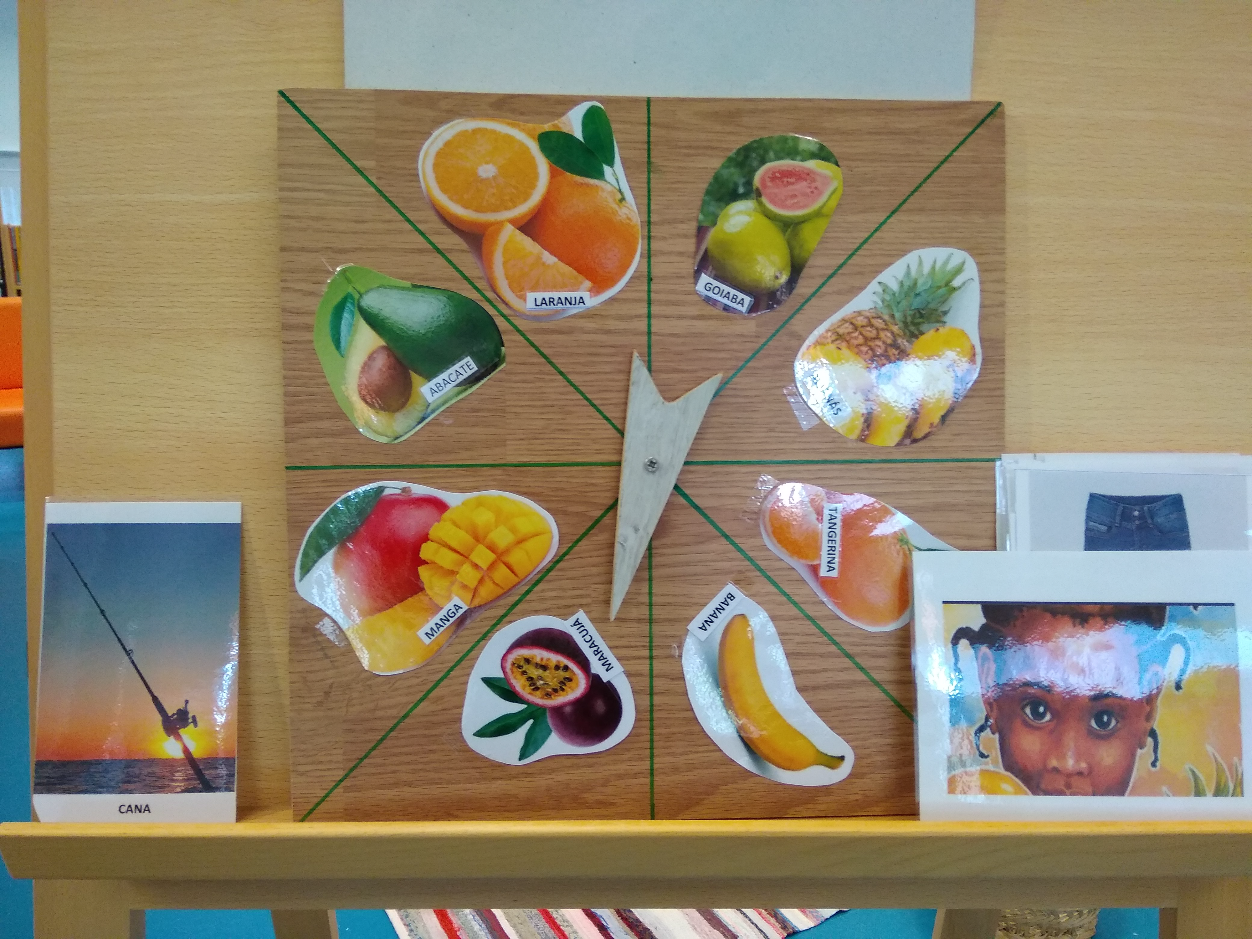 Neste relógio, irão ser colocadas imagens cujos nomes tenham sílabas iniciais que soem da mesma forma, tendo por base as frutas referidas em "A surpresa de Handa".
