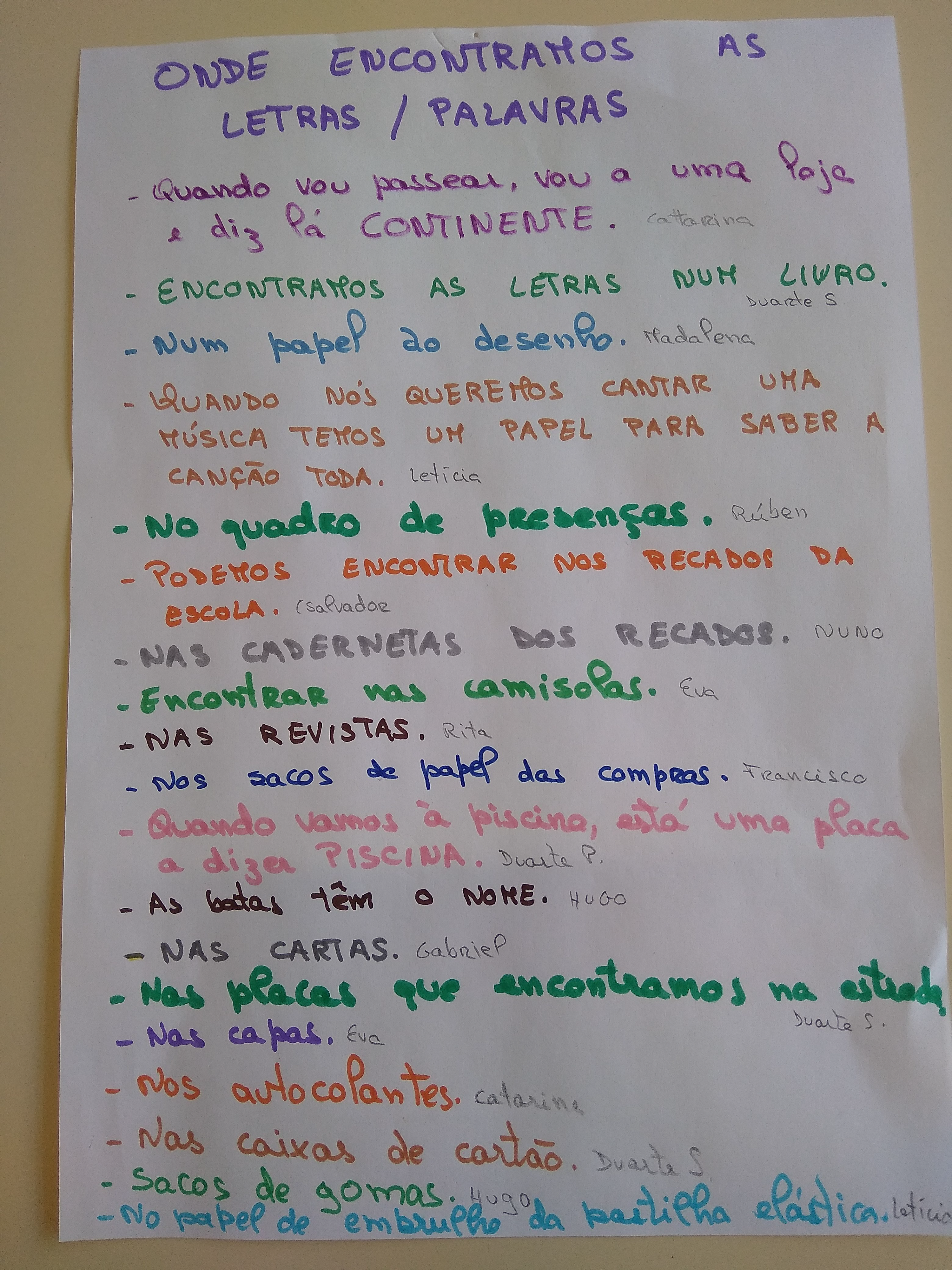 Conhecimento do nome e sons das letras