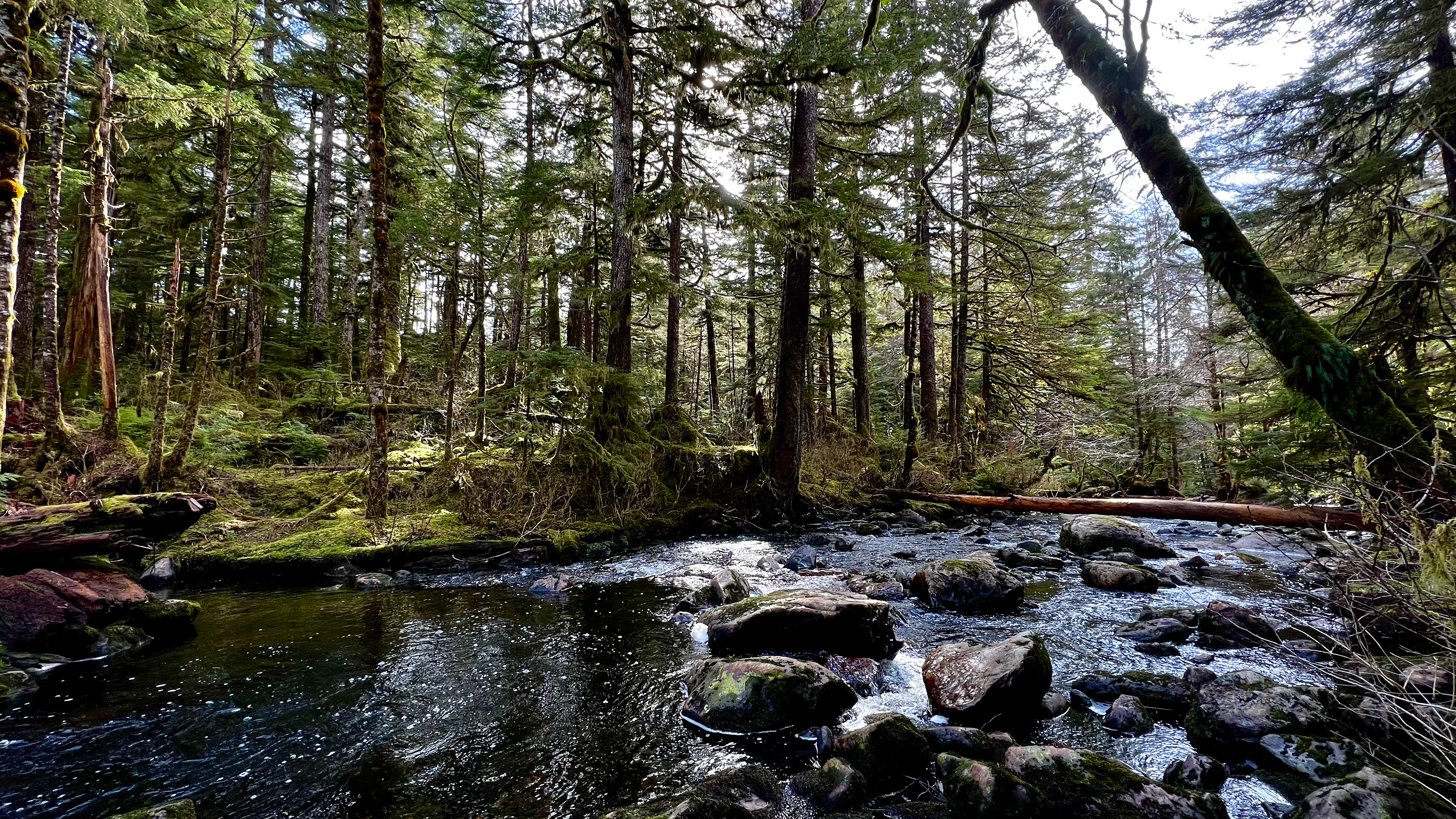 Years later, in 1998, I came to realize I was home in the middle of my 26th winter. There was a hiss from the crack in the old cast-iron wood stove, the hot fire inside sucking oxygen. Snow-covered Sitka Spruce trees stood utterly still outside the cabin window. These trees, all connected, made up Lingit Aanii, the Tlingit People’s territory - or the Tongass National Forest as its now commonly known. I lived about 80 miles northwest of Ketchikan, Southeast Alaska – in the world’s largest, intact temperate rainforest.