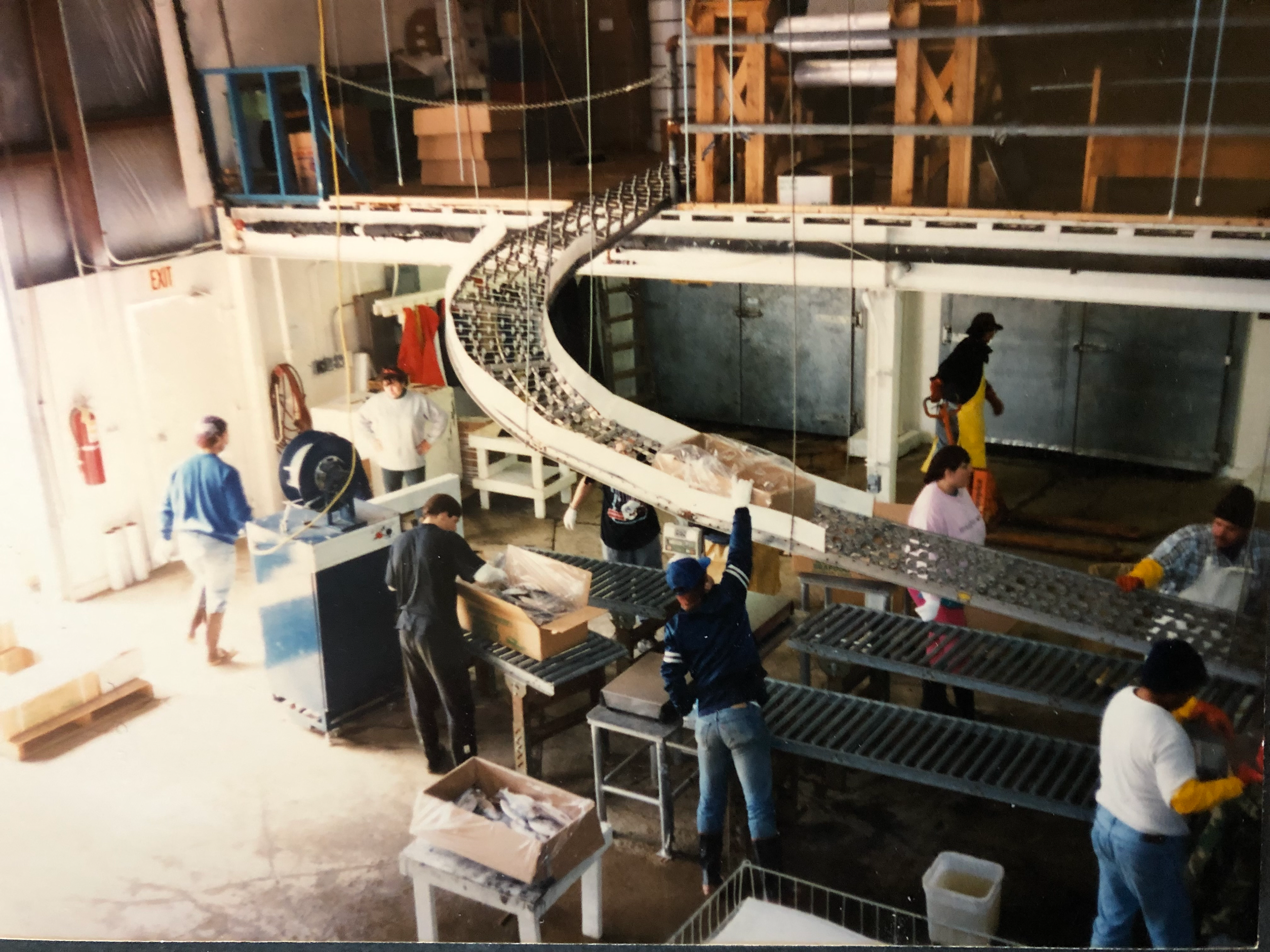 They called it the “slime line.” All manner of people from all over the world including a bunch of us young college guys were called out of the dim light of morning every day to line up and process fish for food. Heads whacked, guts removed, eggs separated and rolling them into a blast-freezer on nine-foot-high metal racks. This was some hard-ass labor. And for me it would transform my love for this wild creature I’d been obsessed with since catching them next to my Dad in early morning light.