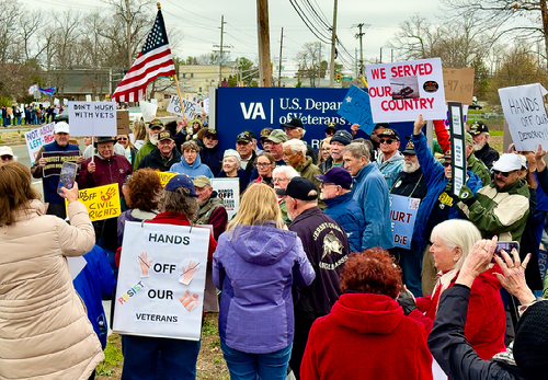 We went to a Hands Off Protest at the VA Hospital in Toms River, NJ. Over 1500 people showed up. The protest was held on Hooper Avenue, one of the main roads. This was just one of the many protests m(ore than 1400) nationwide that drew crowds estimated in the Millions!