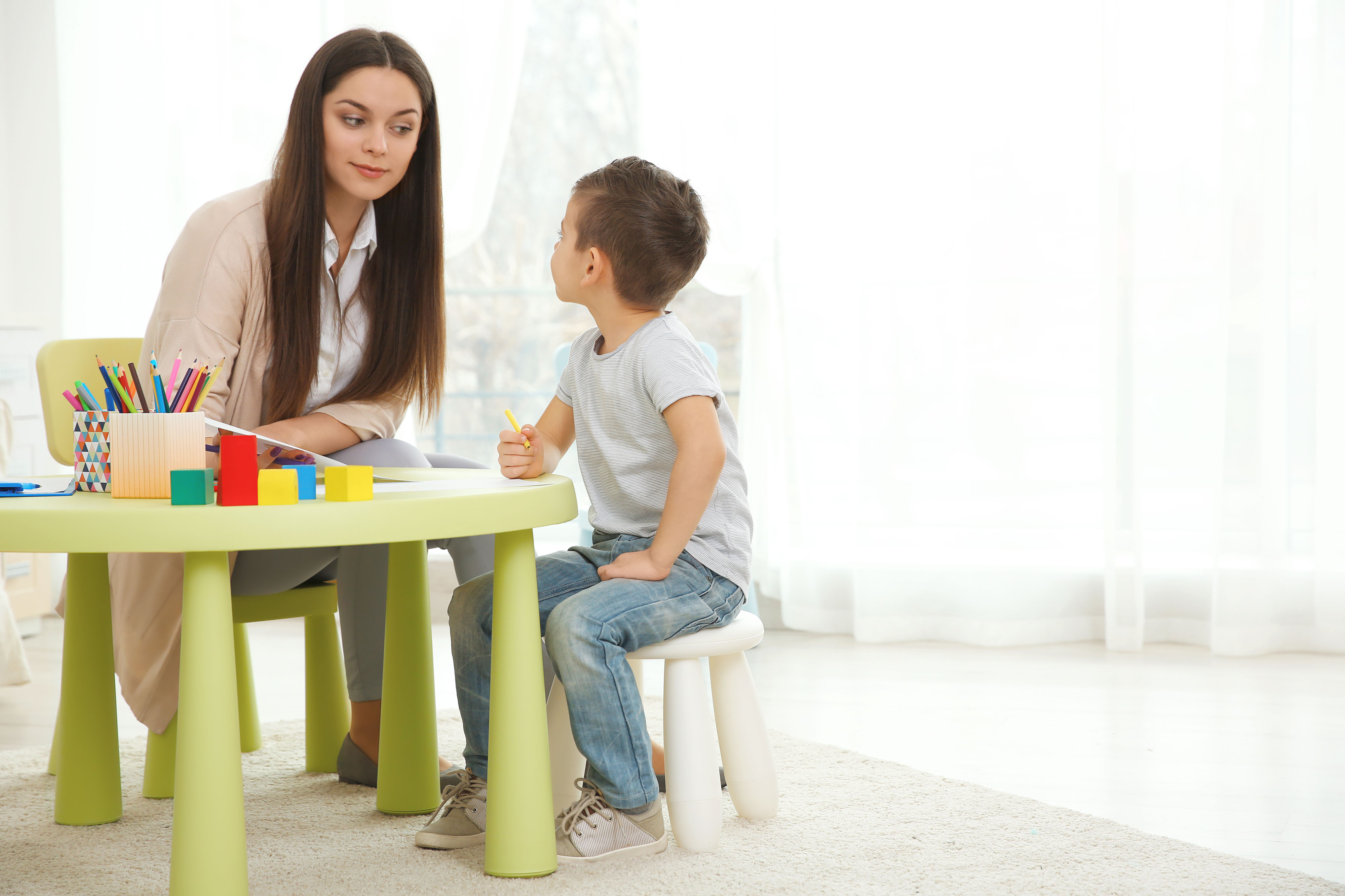 Created with images by Faruk - "A glowing lightbulb wearing a graduation cap sits on an open book next to a diploma and other books, symbolizing the bright ideas and successful future of education" • Rido - "Group of students talking with professor" • Africa Studio - "Young child psychologist working with little boy"