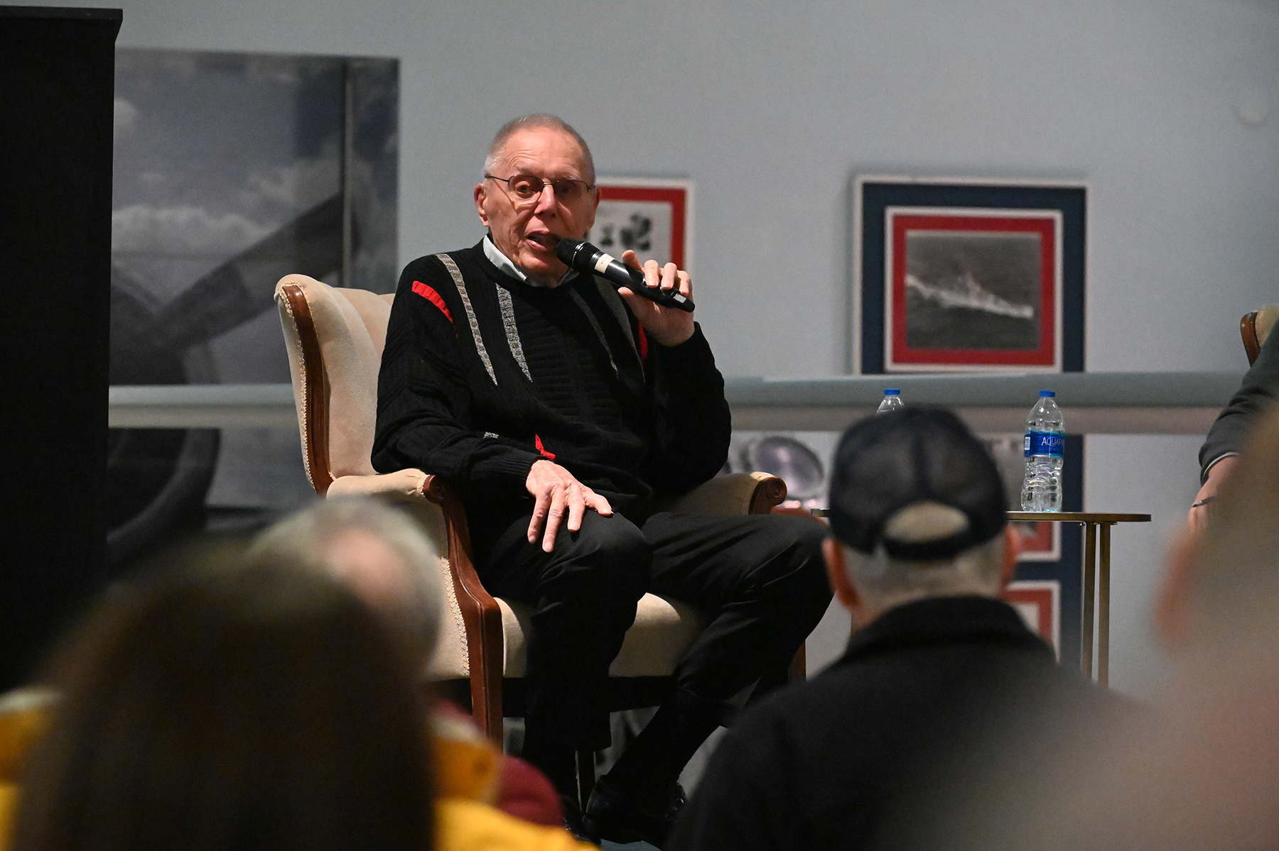Photo: Retired Major General Alexander Macdonald, former N.D. Air National Guard commander and N.D. adjutant general, speaks about his Korean War experiences at the Fargo Air Museum, Fargo, Jan. 18, 2022.