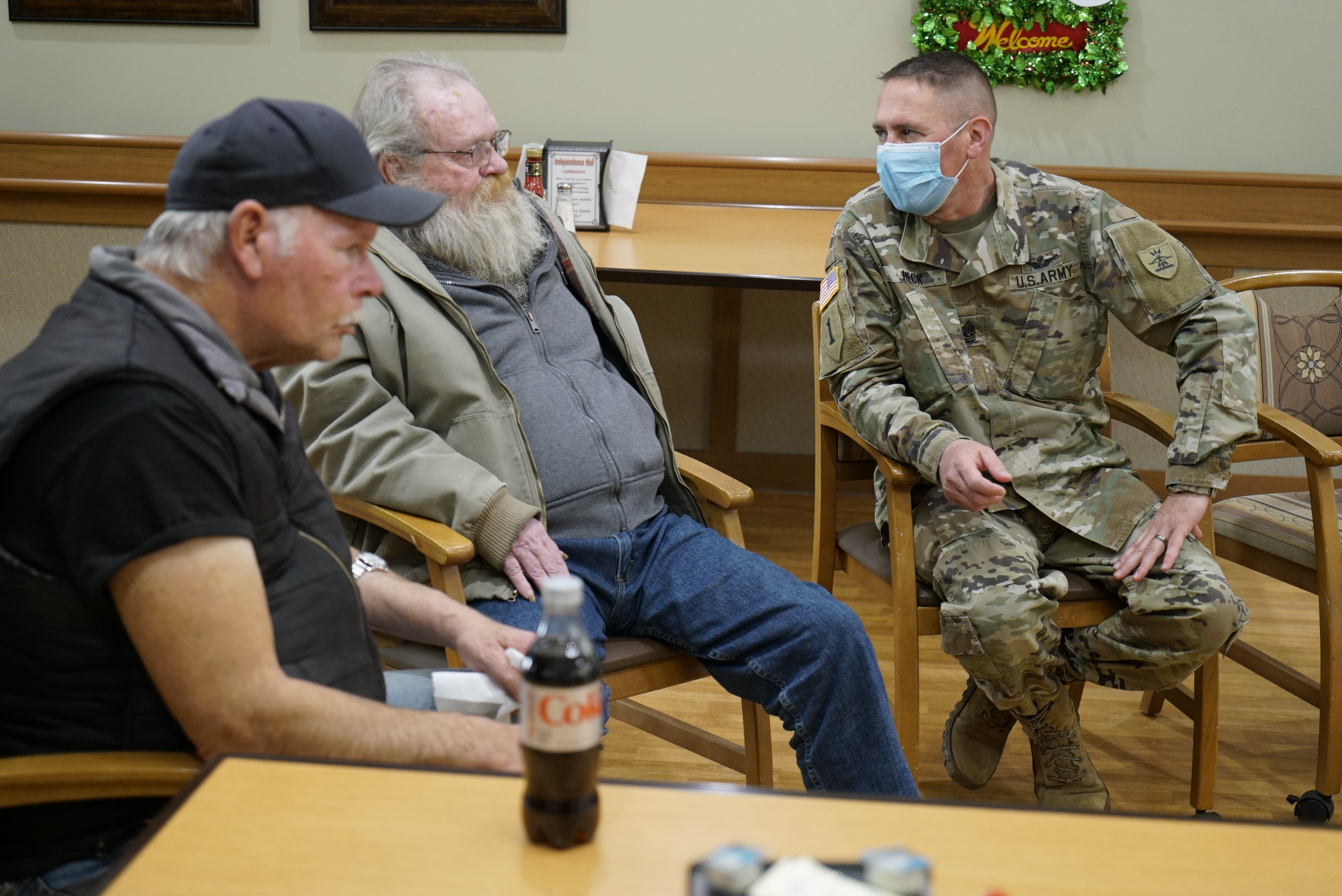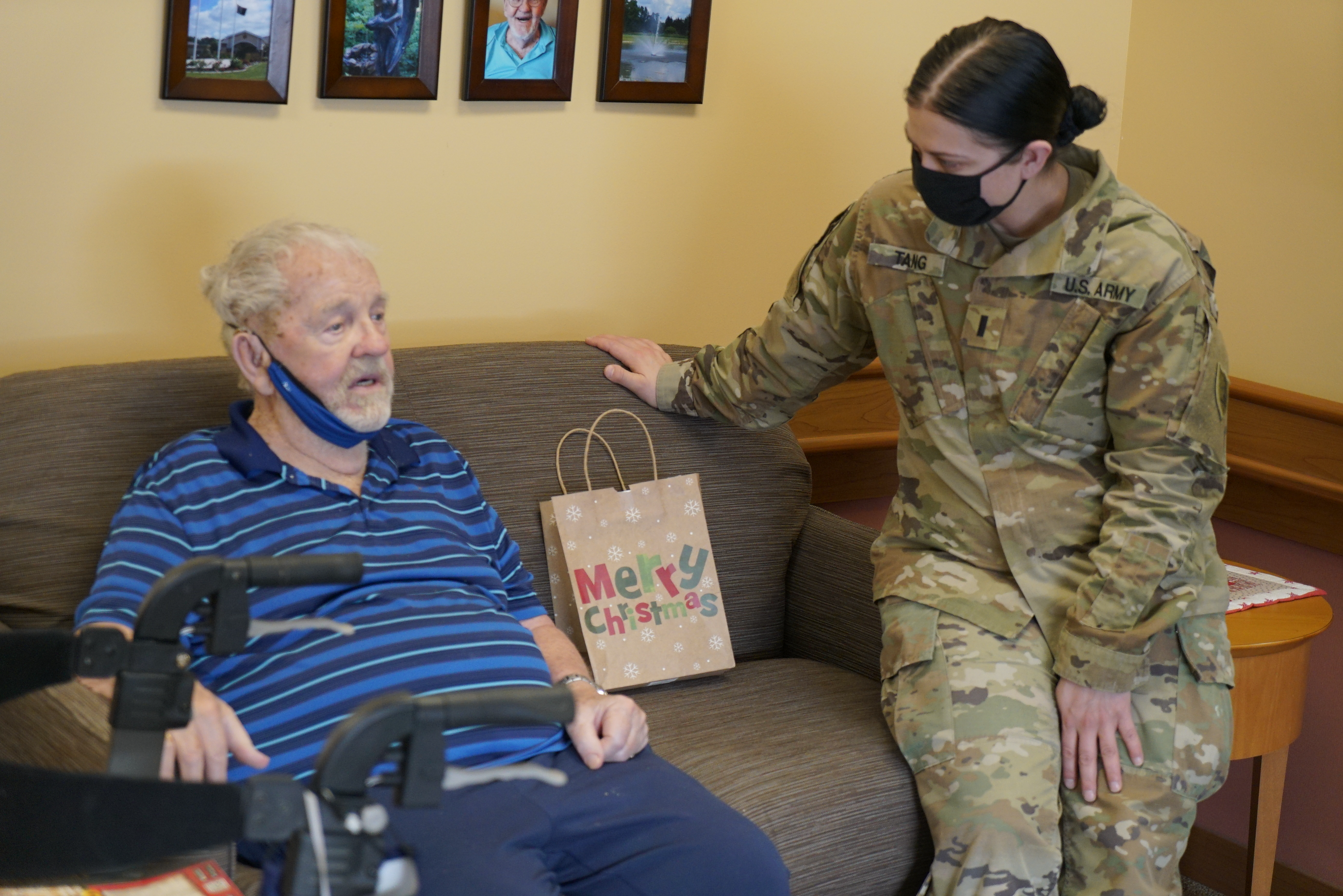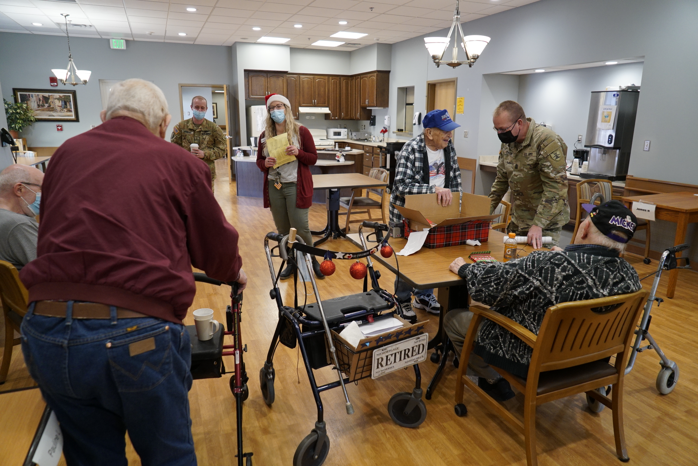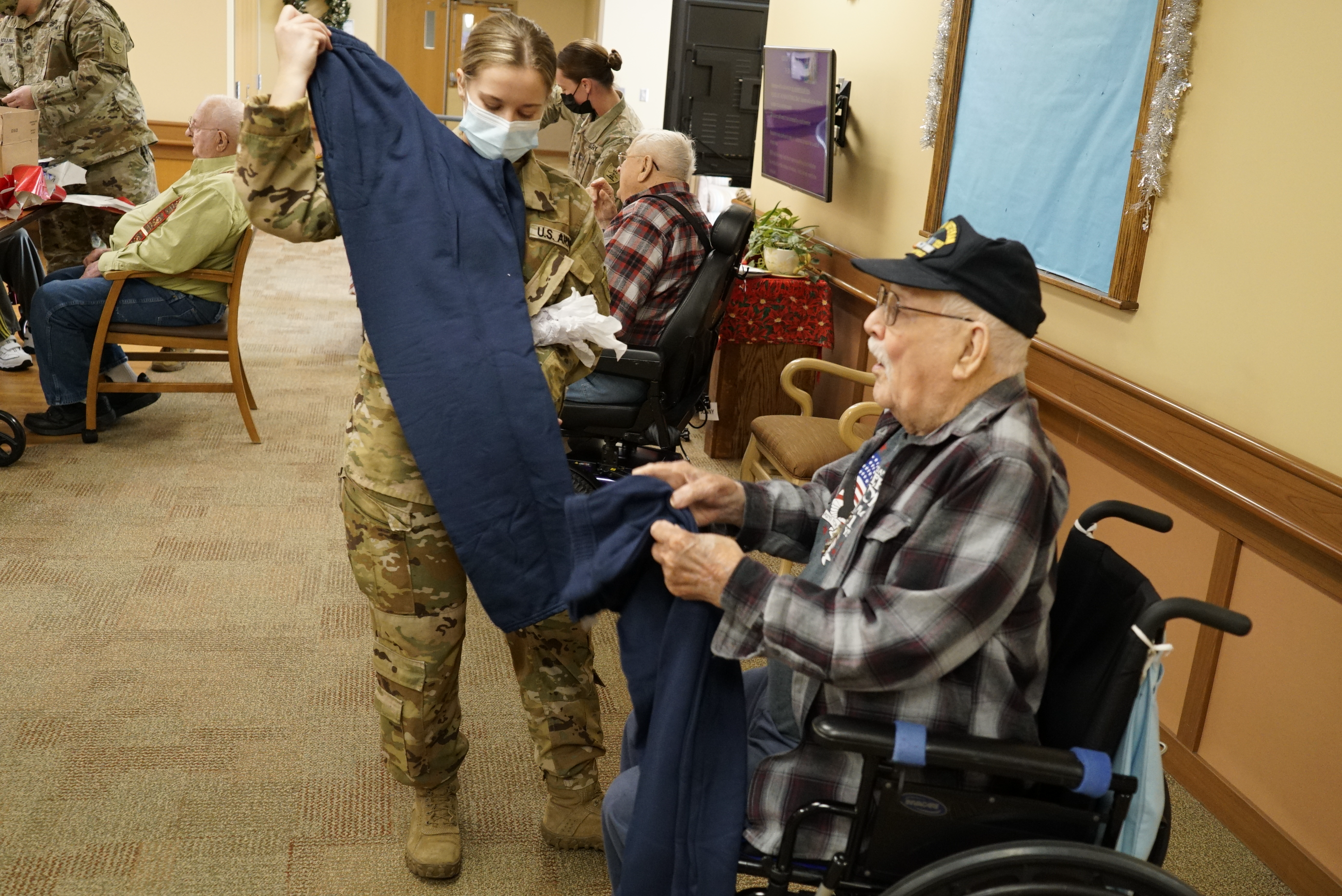 N.D. National Guard members visited Veterans and spouses at the N.D. Veterans Home in Lisbon, Dec. 9, 2021. For over 20 years, N.D. Guard members collect and deliver gifts and spread holiday cheer at the home. (Photos and story by Sgt. 1st Class Charles Highland, N.D. National Guard Public Affairs Office)