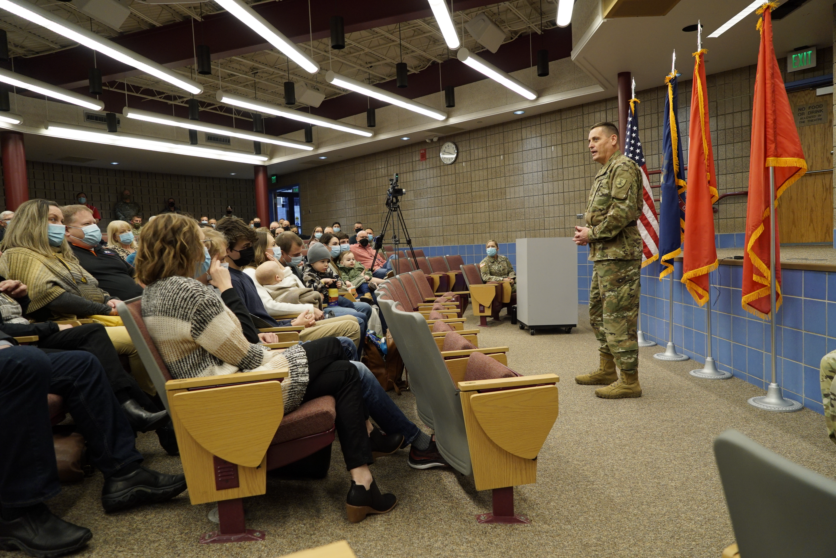 Brigadier General Jon Erickson addresses the audience at his promotion ceremony at the Raymond J. Bohn armory, Bismarck, Dec. 10, 2021.