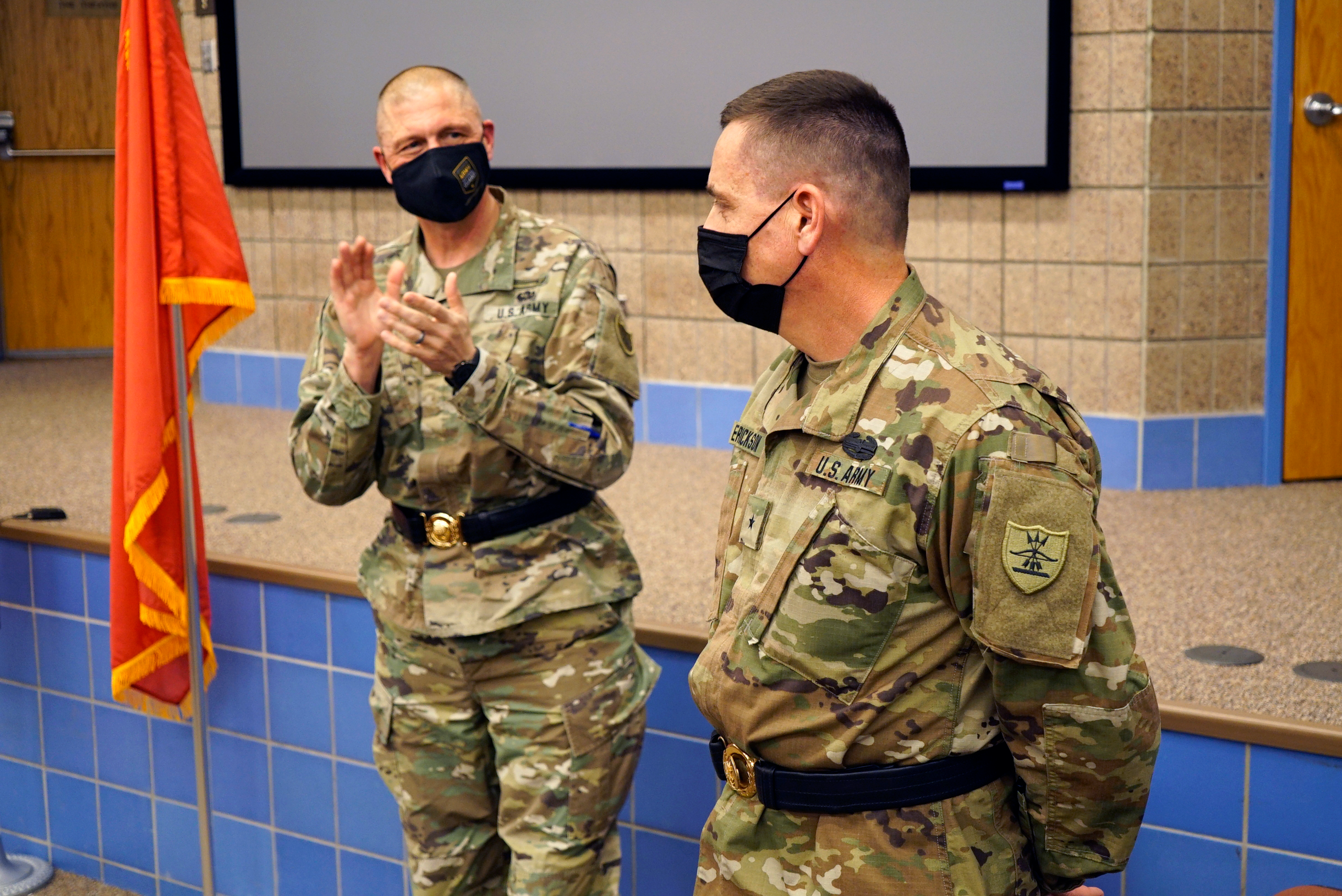 The commander of the N.D. National Guard's Land Component Command (LCC), Jon Erickson, was promoted to brigadier general at the Raymond J. Bohn armory, Bismarck, Dec. 10, 2021, during a ceremony witnessed by family, friends, and fellow Guard members. The N.D. adjutant general, Maj. Gen. Al Dohrmann, presided over the ceremony. (National Guard story by Bill Prokopyk, N.D. National Guard Public Affairs)