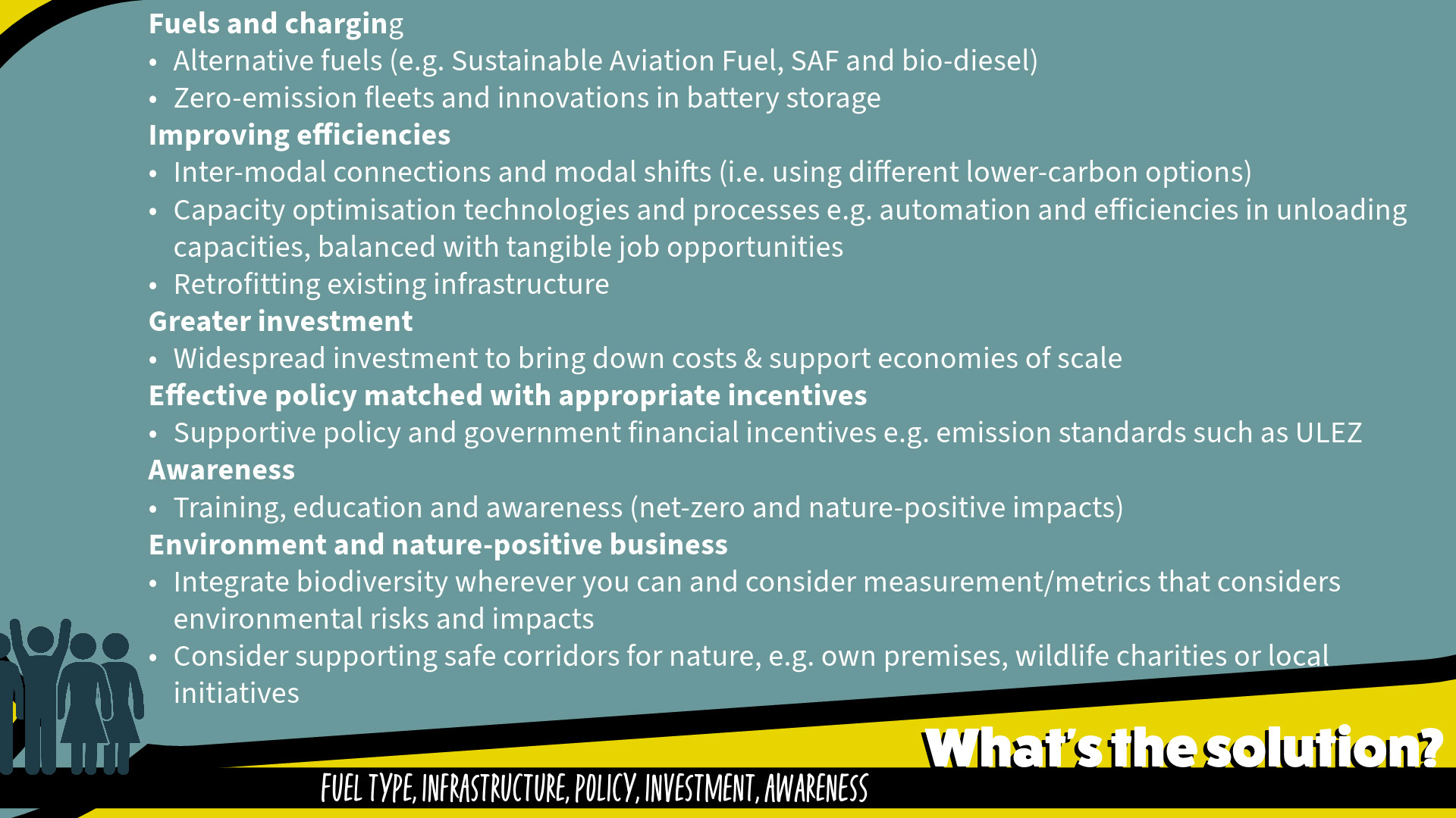 - Case studies of best practices or unpacking key issues to decarbonising the sector or encouraging other environmental benefits (particularly biodiversity and 'nature-positive' solutions)