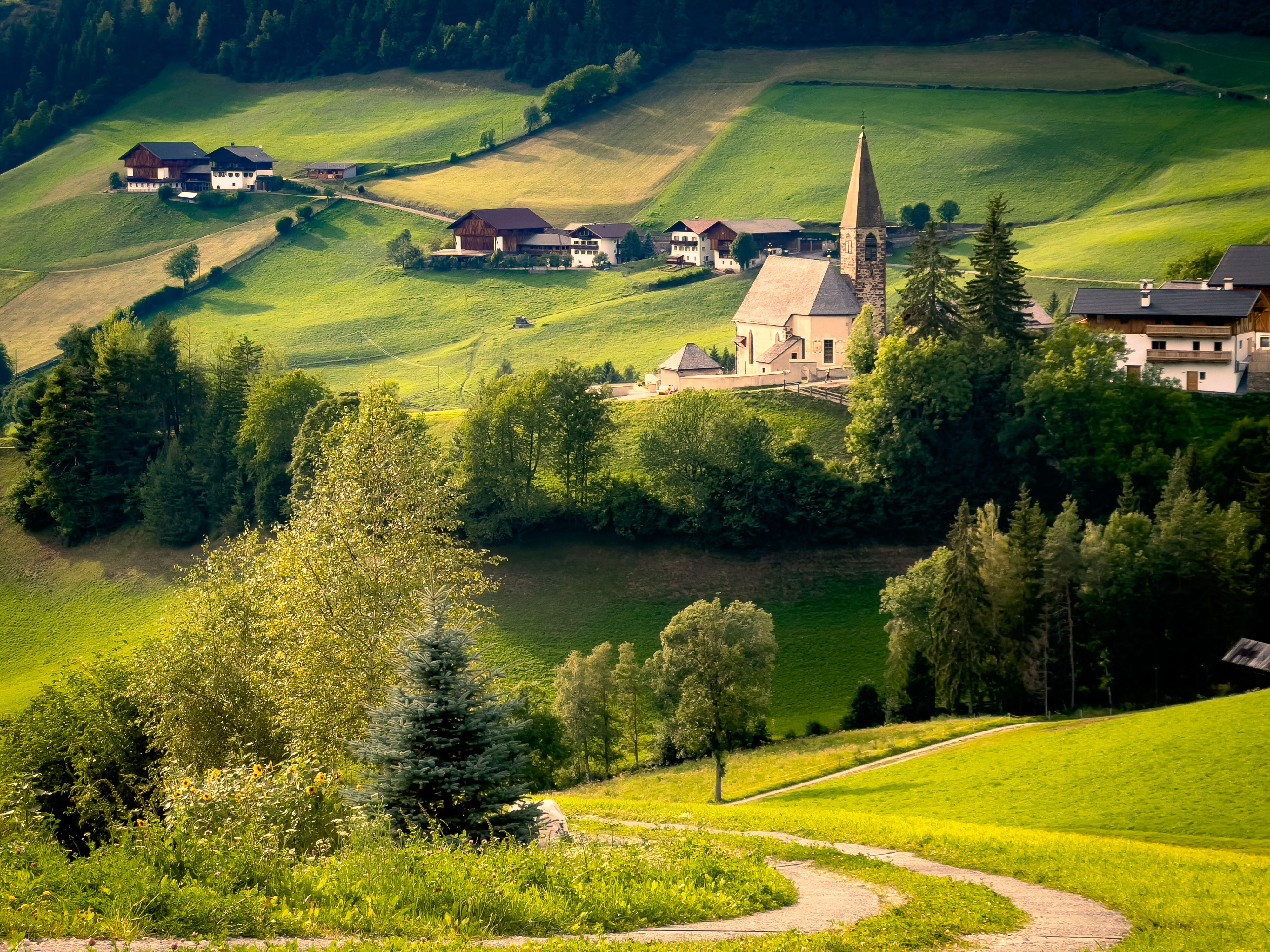 After some downtime at our hotel, we'll make our way in the Val Gardena, perhaps the most scenic valley in all of the Dolomites. Here, we will take you to some of our favorite viewpoints to capture a truly iconic scene, the Chiesa di Santa Maddalena, framed inside the Odle mountains as the sun begins to set.