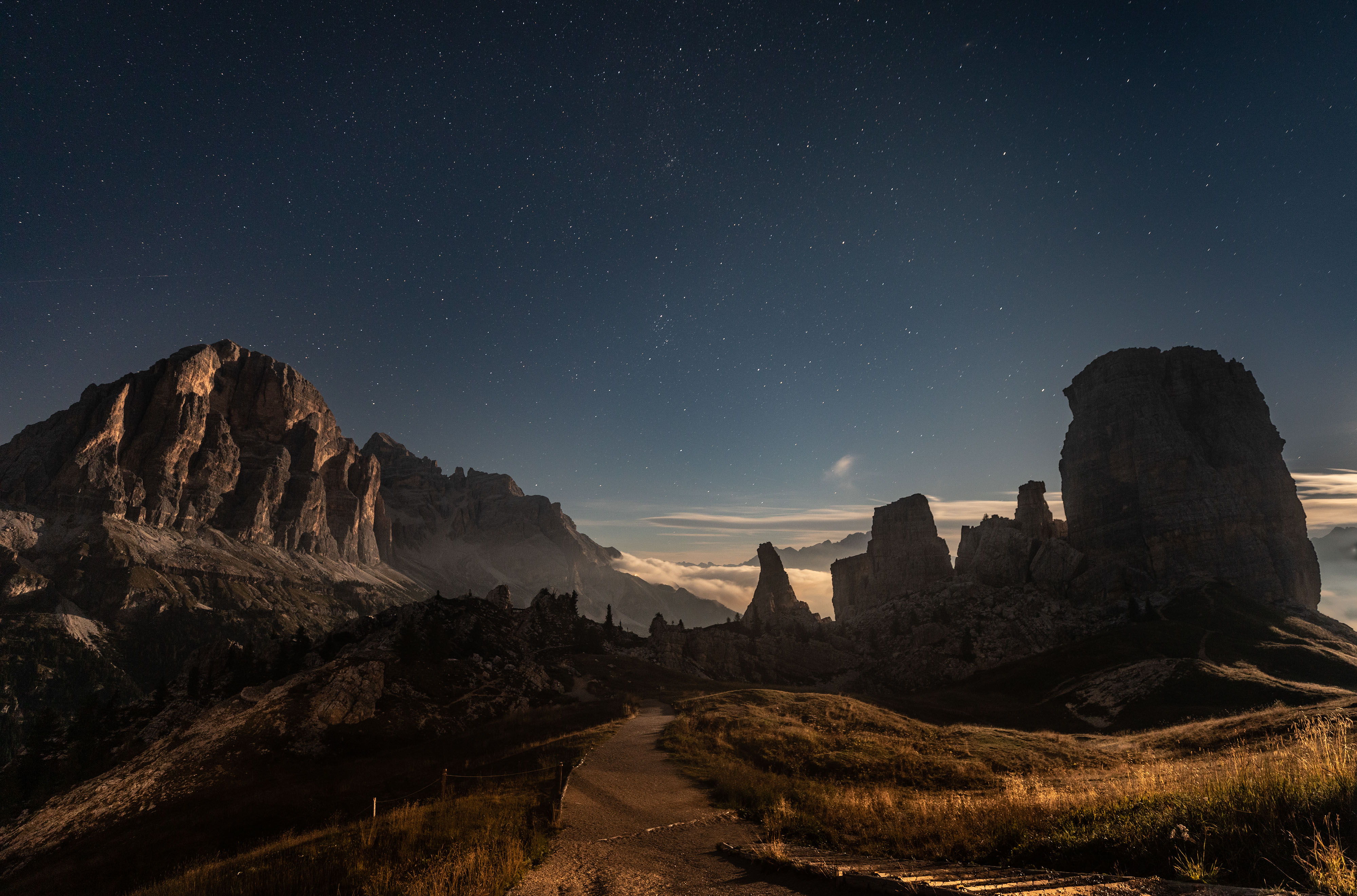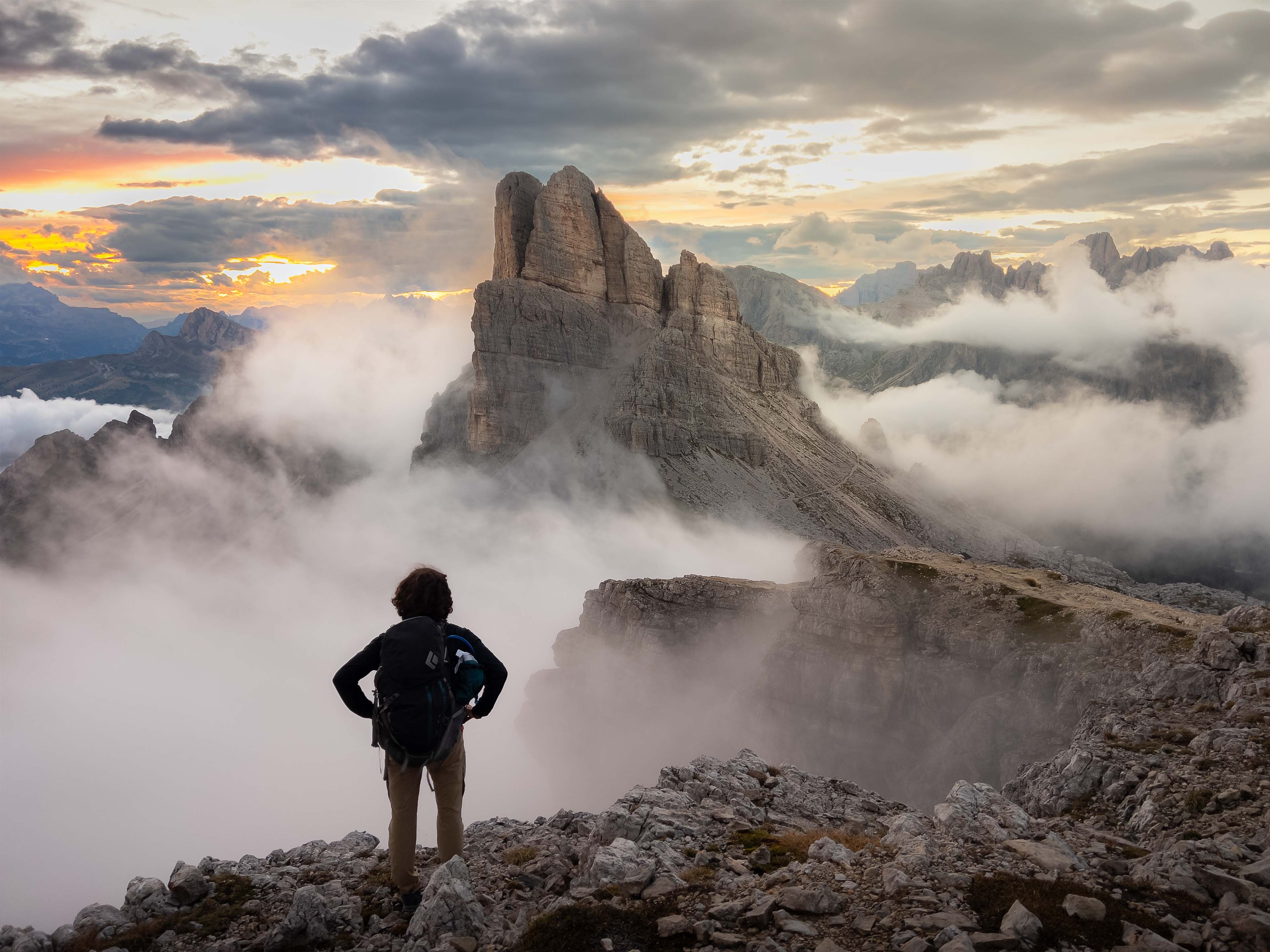 Walk right out the door and be greeted by an incredible sunrise with 360 views. Every angle will be amazing and it's only a few steps out of bed. After a warm breakfast, we will enjoy some down time to soak in the early morning sun, or a nap, before embarking on a short hike, downhill, to our next rifugio. We will spend a leisurely afternoon exploring the area, hiking, editing and critique sessions while we await sunset. The sunset will be amazing from this epic skytop perch and best enjoyed with the famous Tiramisu made on premise. Weather permitting, we will have the opportunity to capture the night sky framed by the moonlit Cinque Torri formation, all within footsteps of the rifugio.
