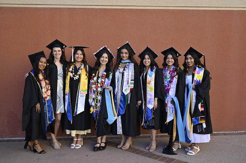 Tassels vary in use and color. At SJSU, the color of tassels for bachelor’s degree candidates represent each college. The colors for the Lurie College of Education is light blue and the colors for the College of Information, Data and Society are lemon yellow (School of Information) and orange (Data Analytics).