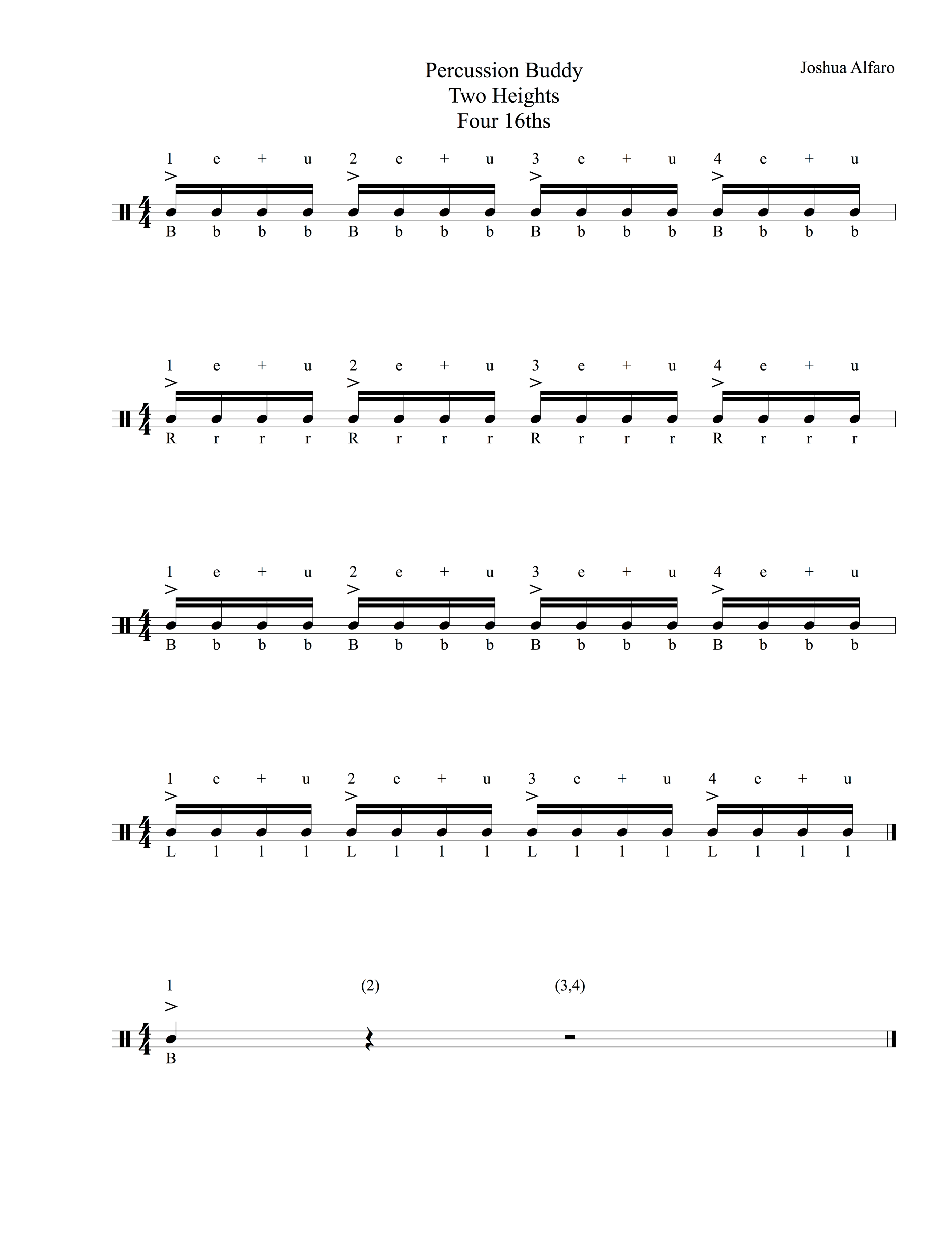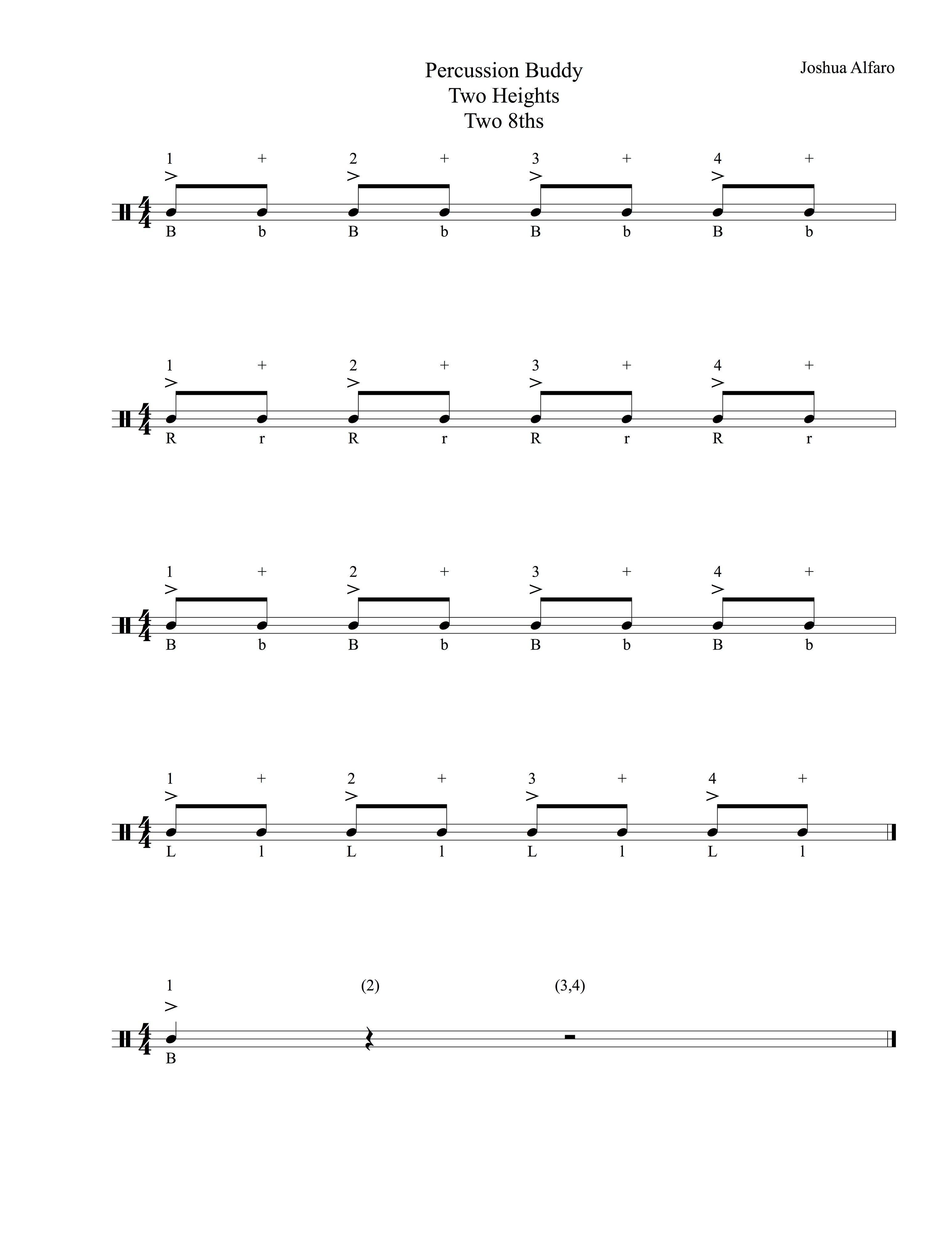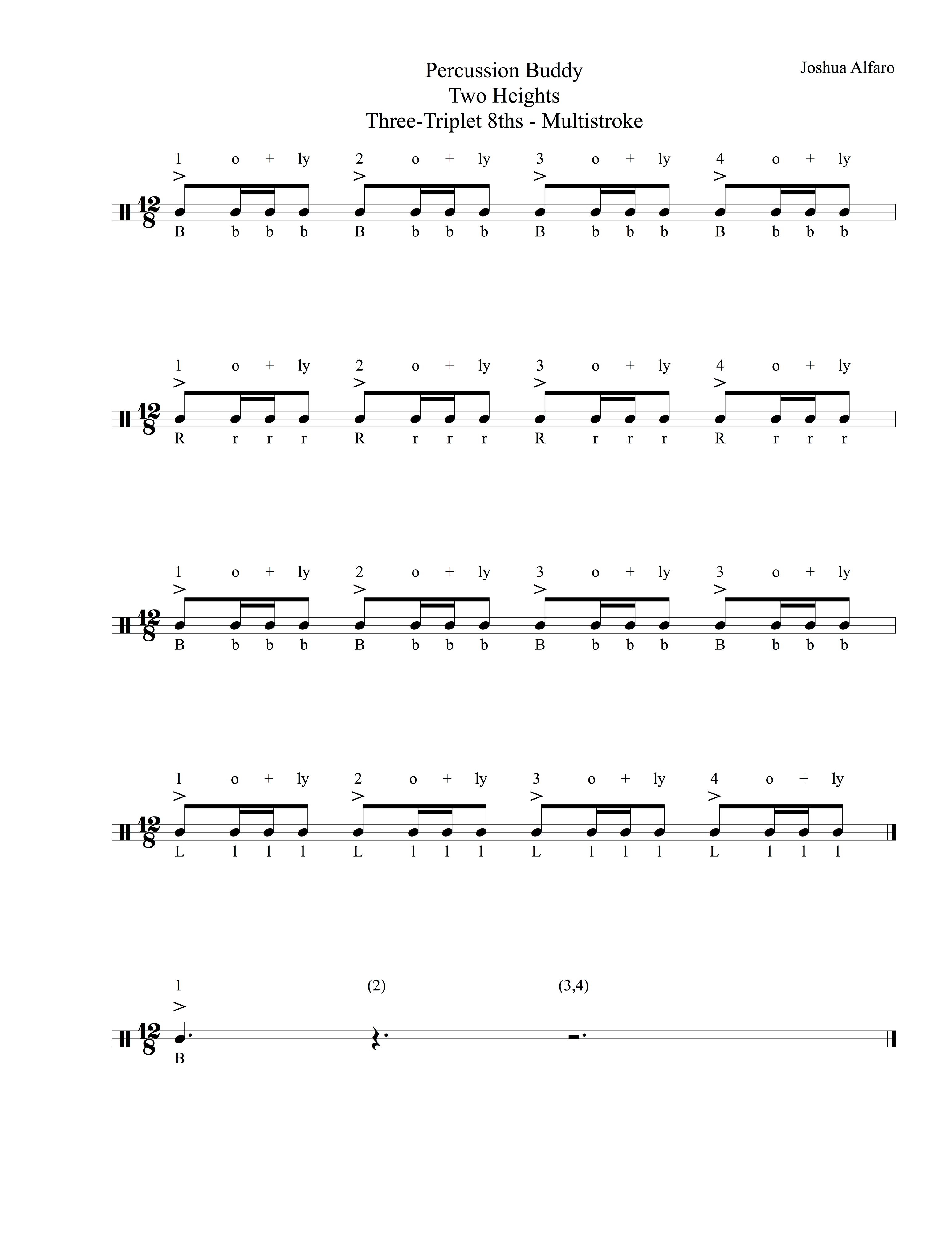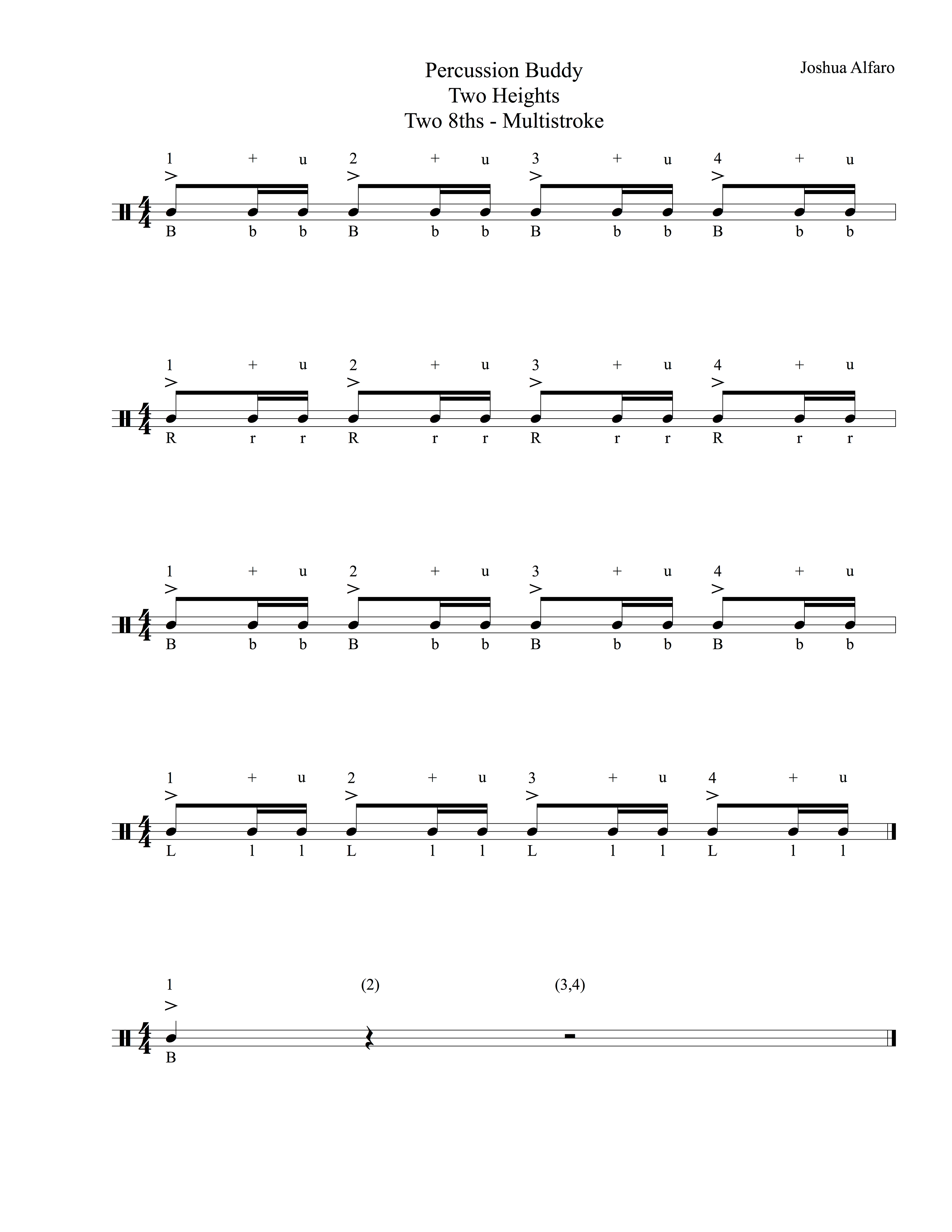 "Two Heights, Multistroke" - A percussion passage that includes a set of multiple strokes in each count.