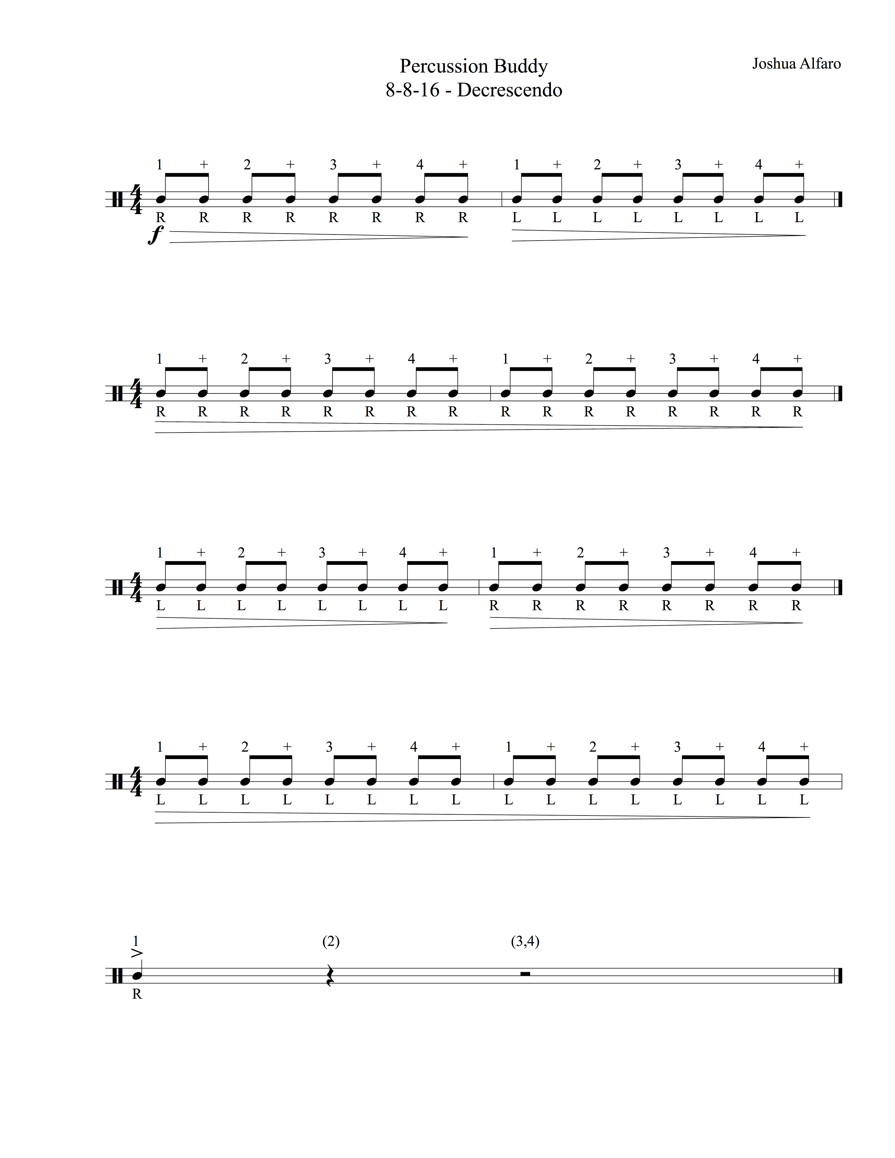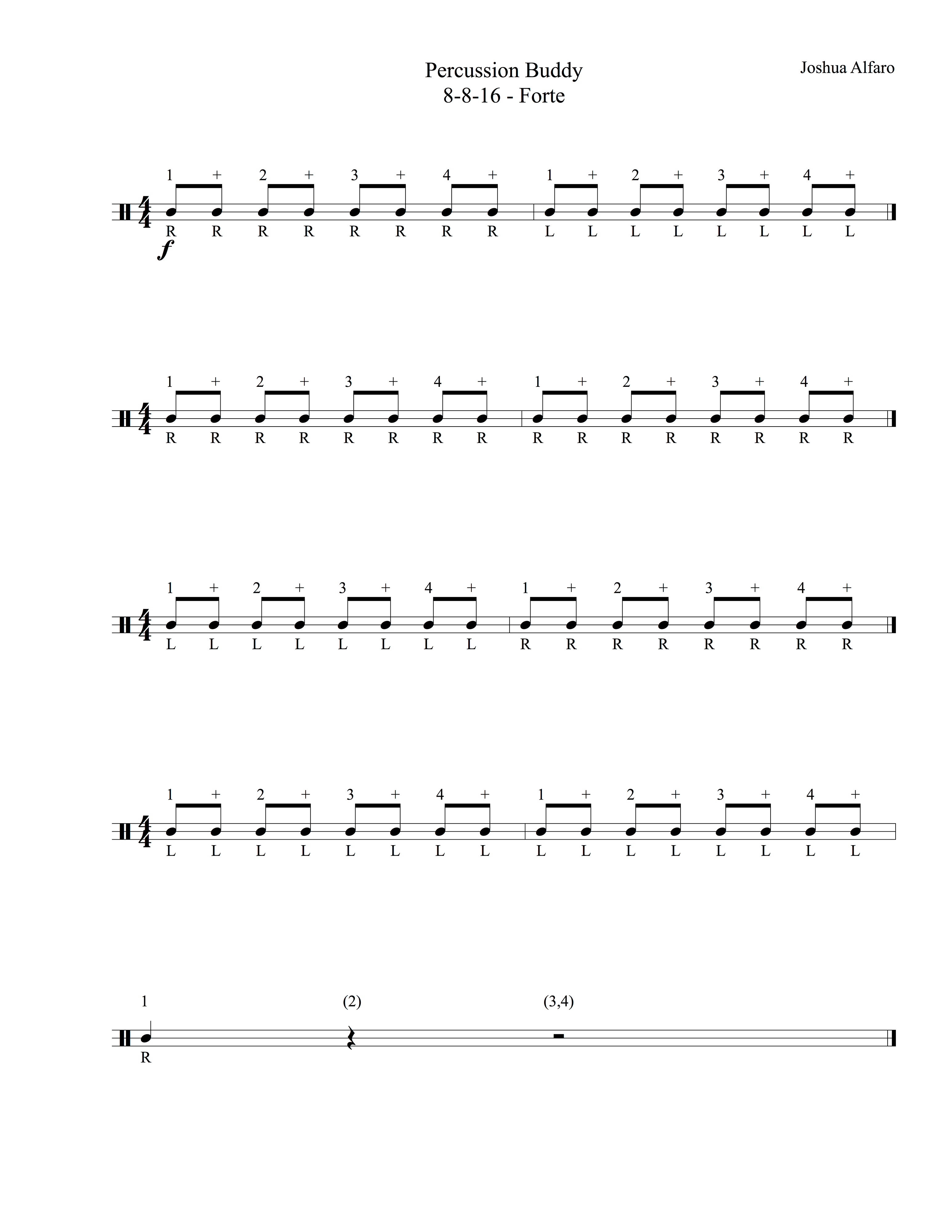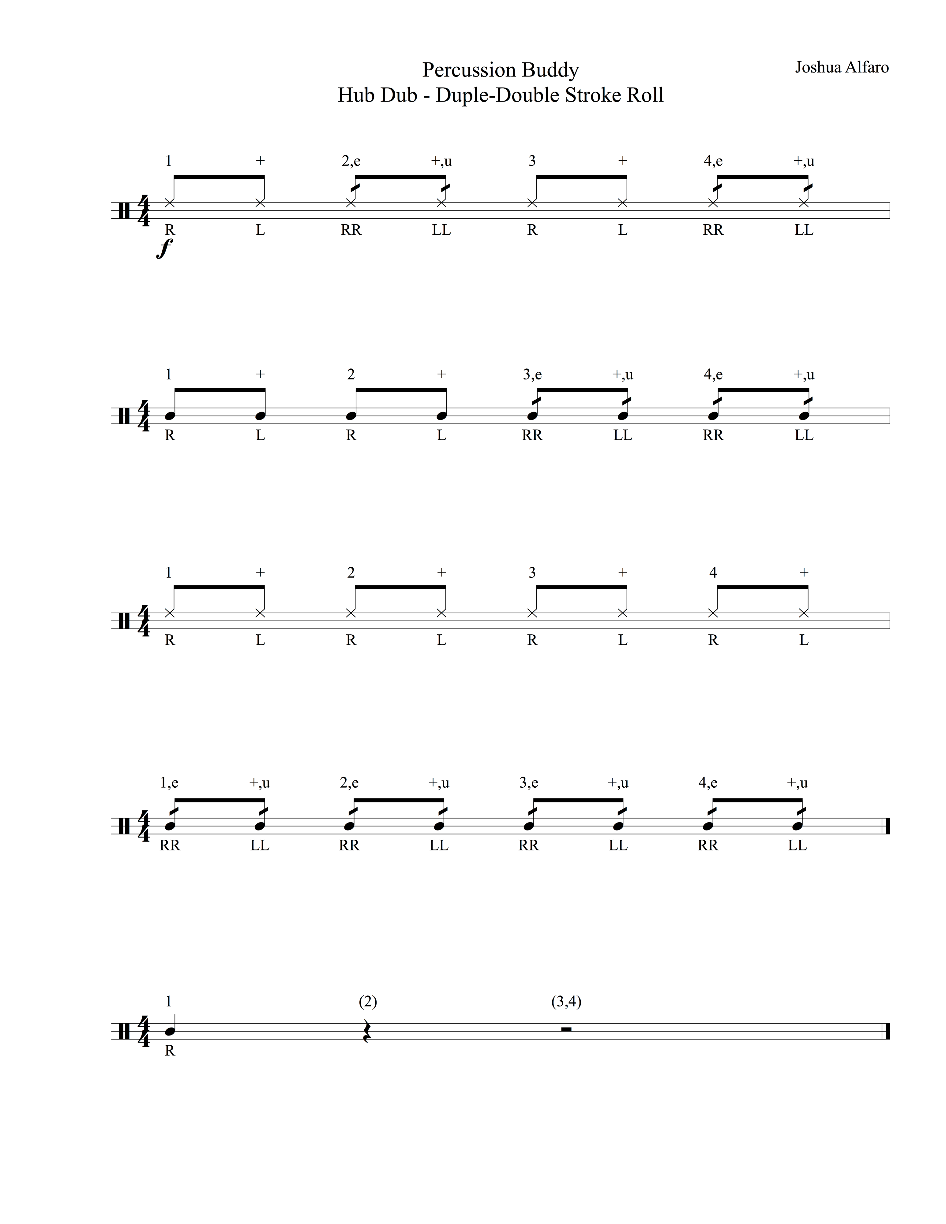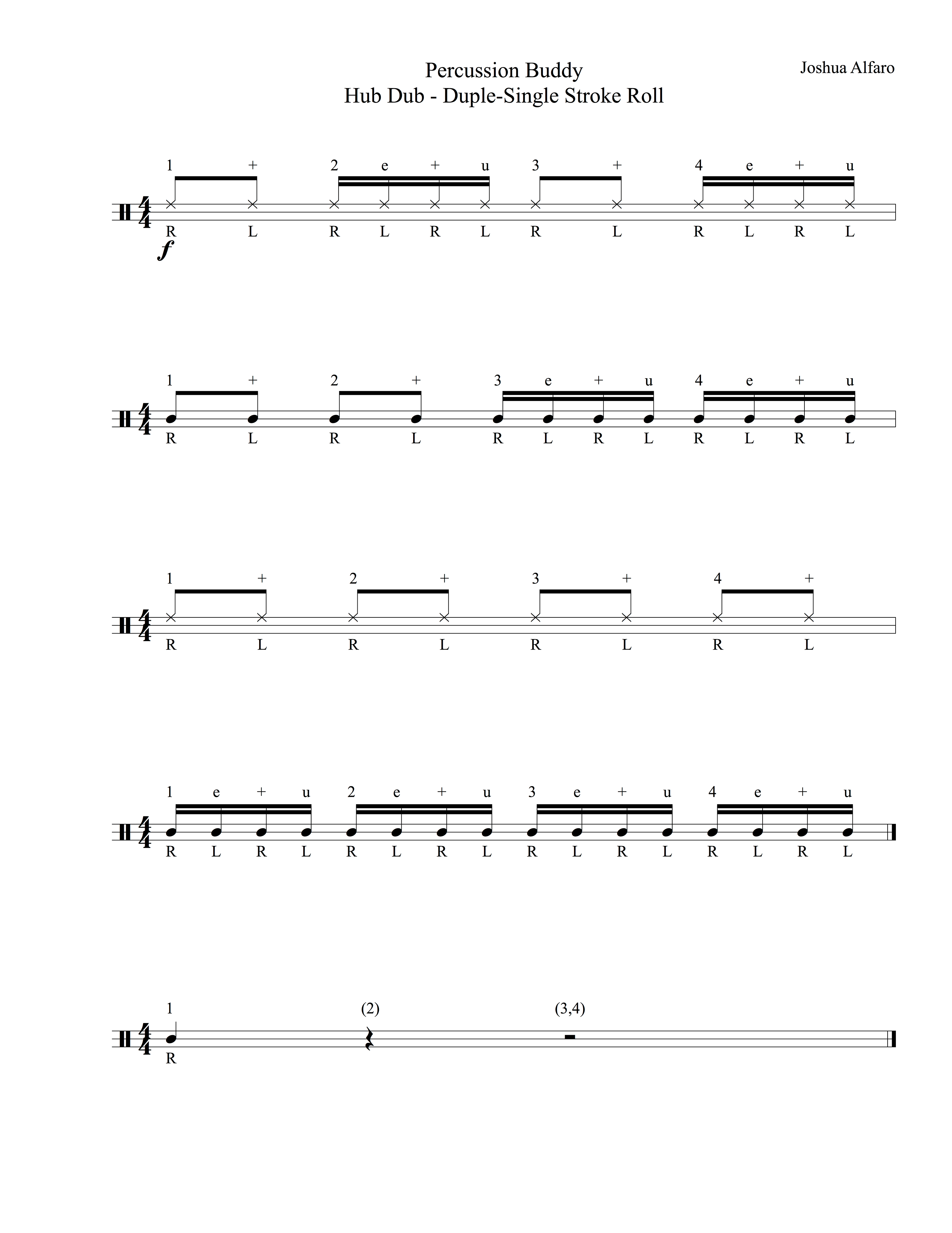 "Two Heights, Multistroke" - A percussion passage that includes a set of multiple strokes in each count.
