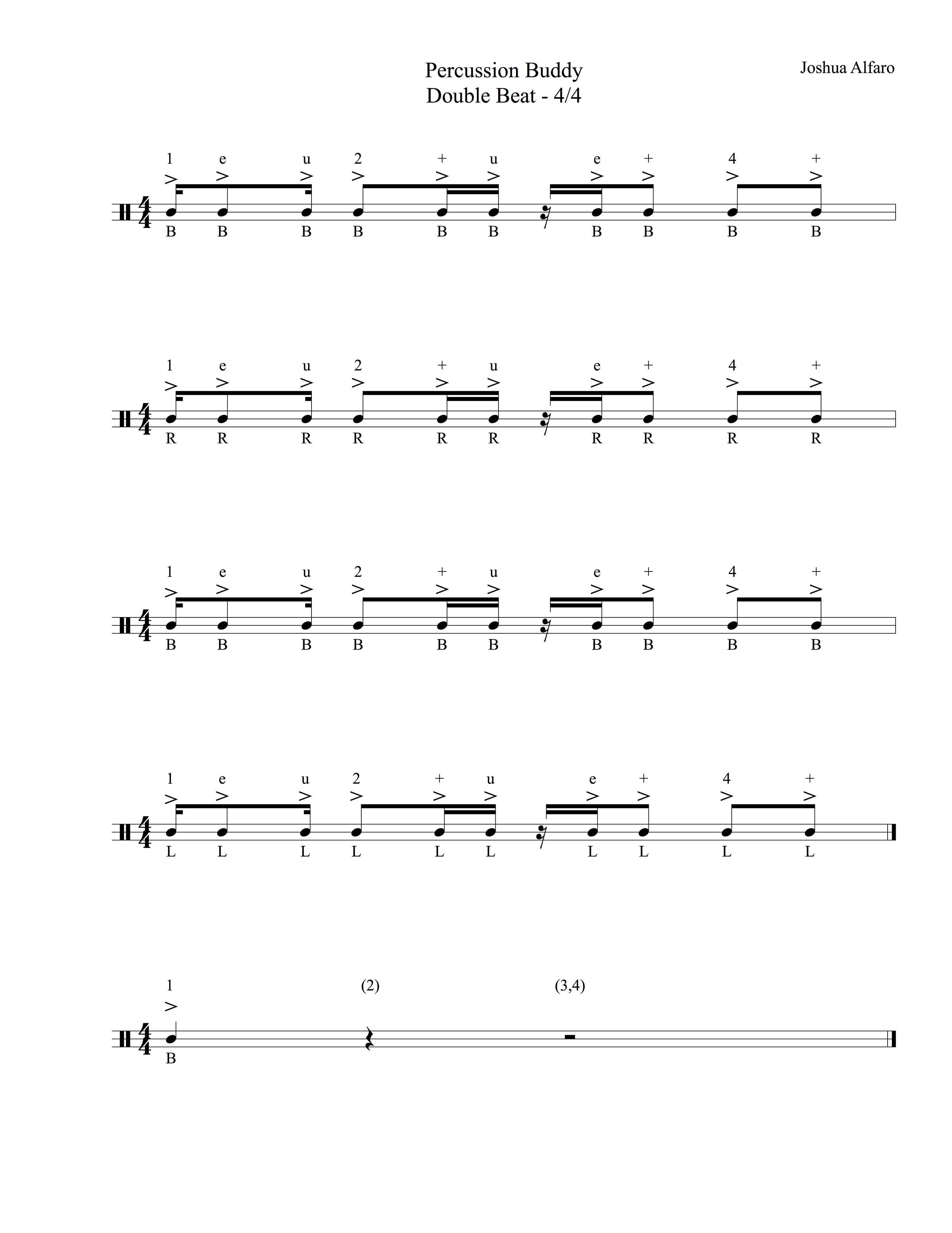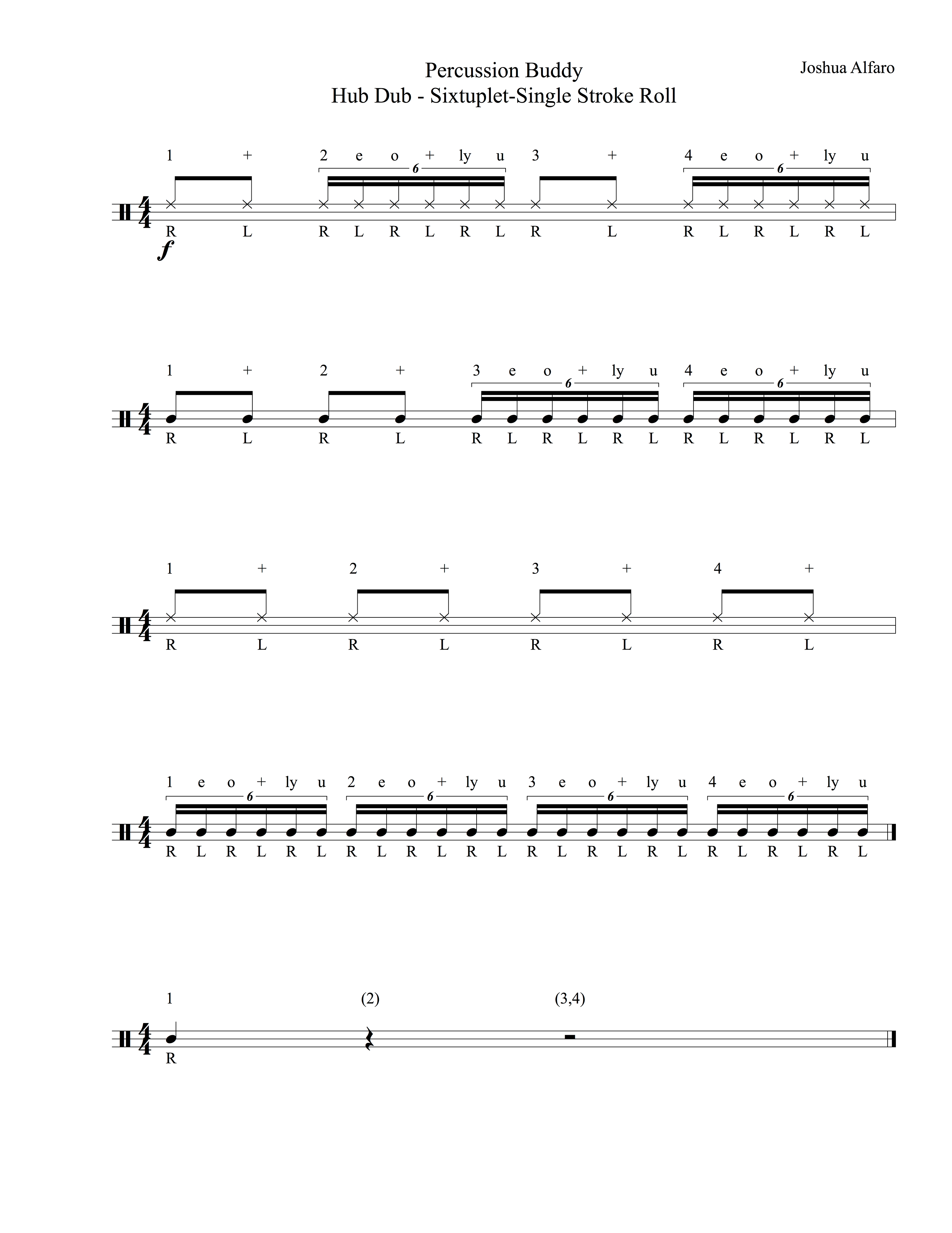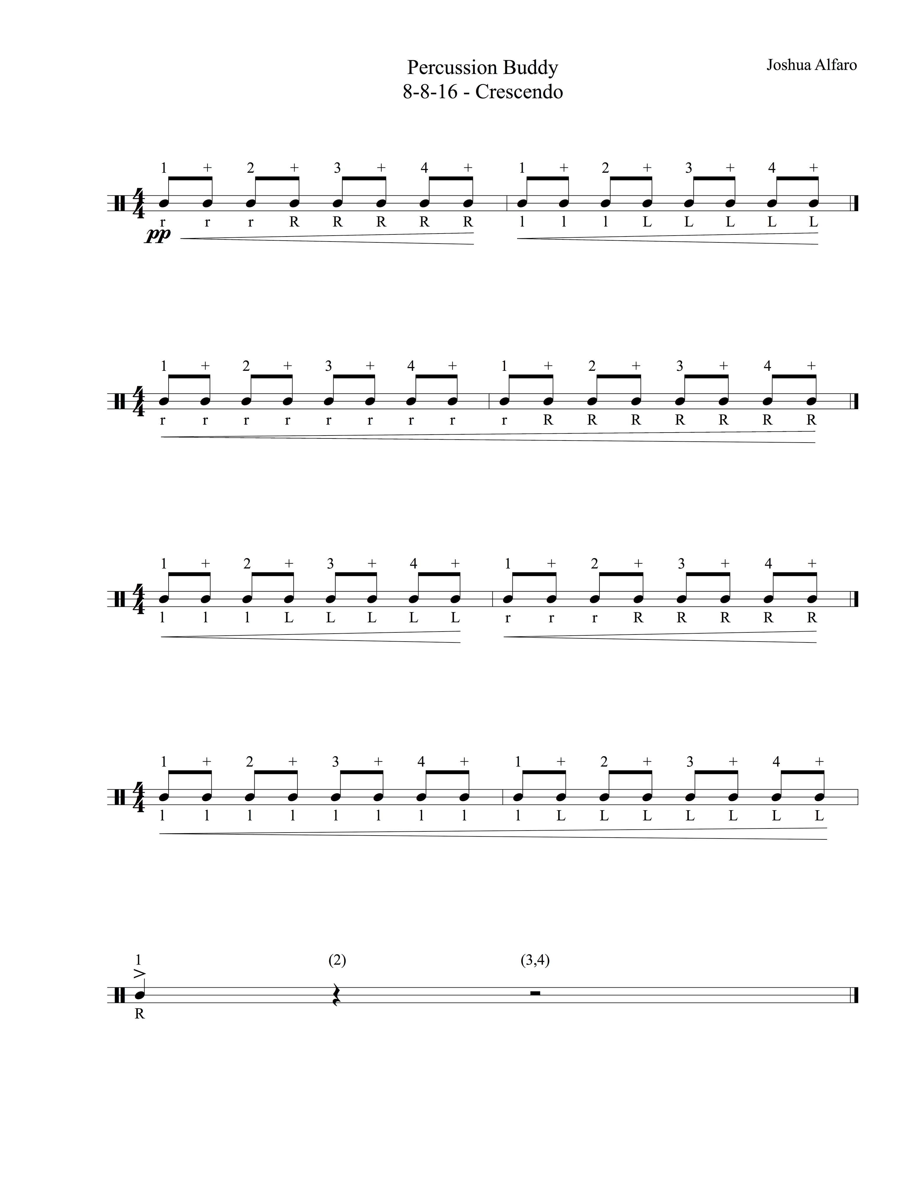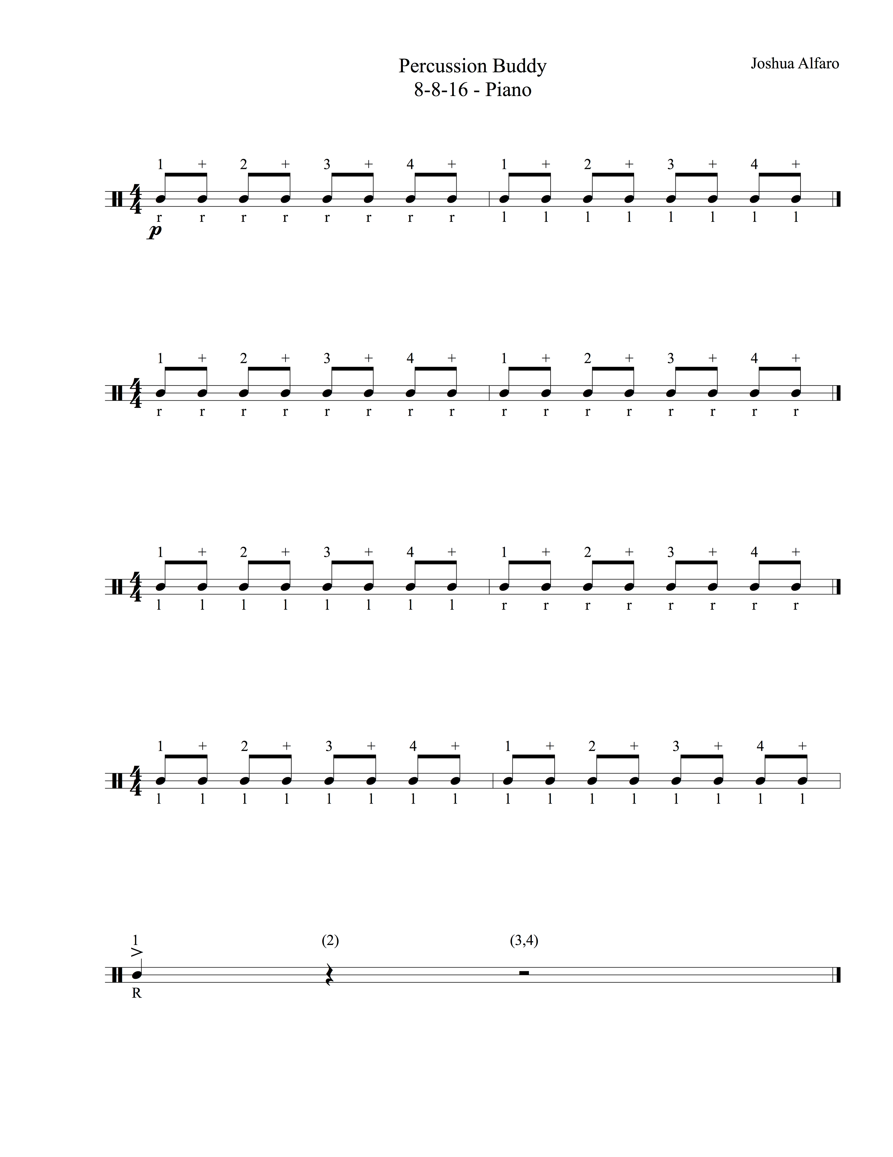 "Two Heights, Multistroke" - A percussion passage that includes a set of multiple strokes in each count.