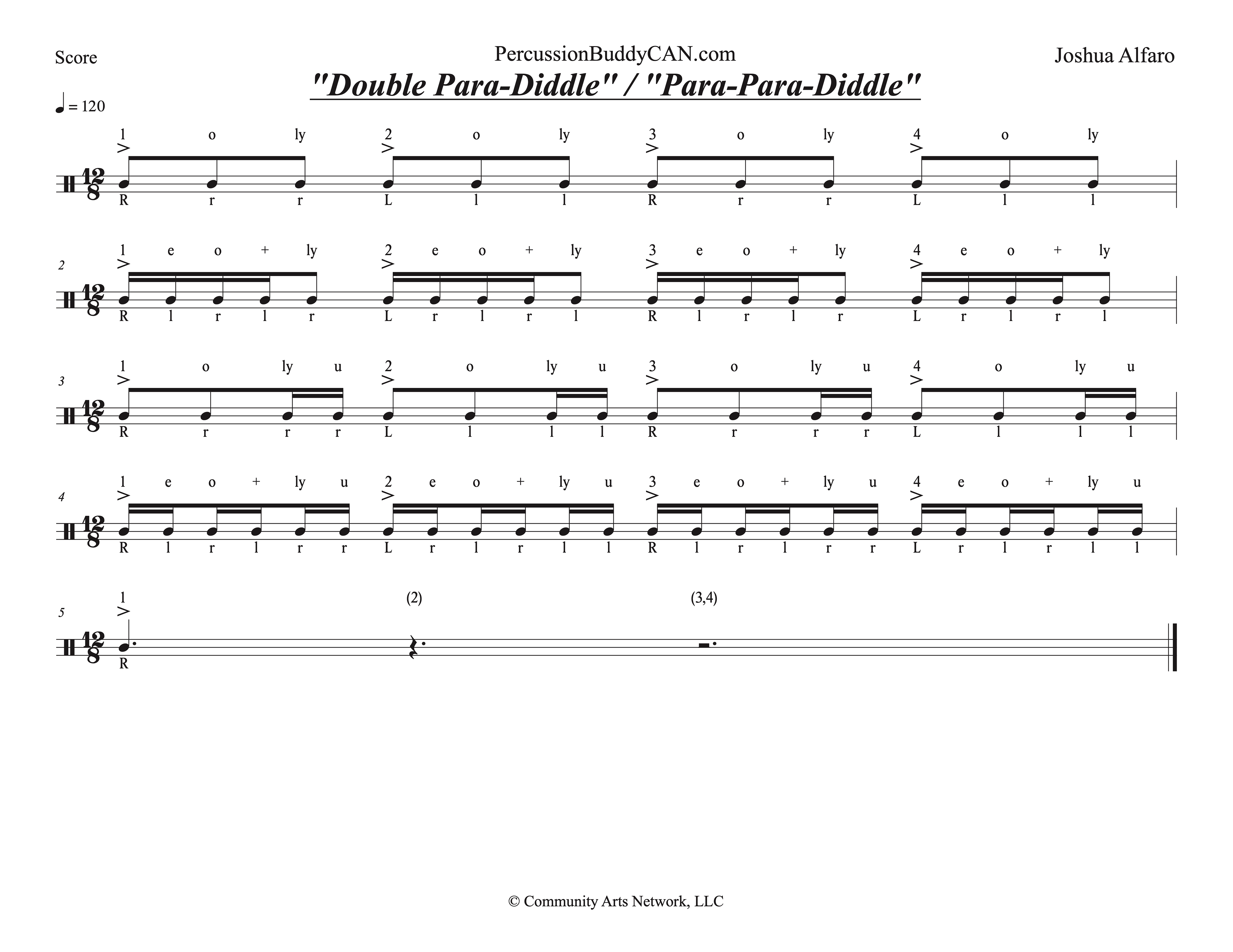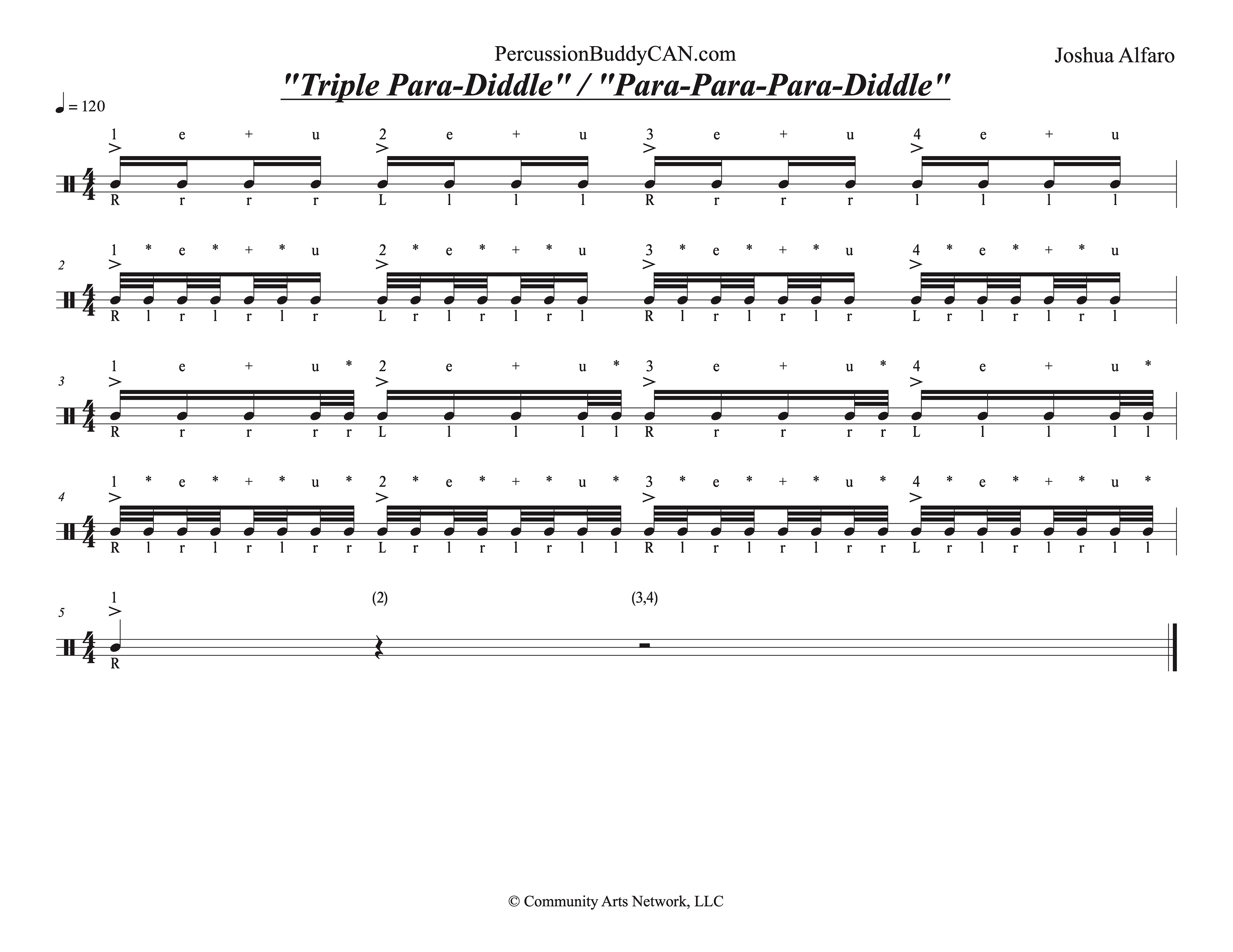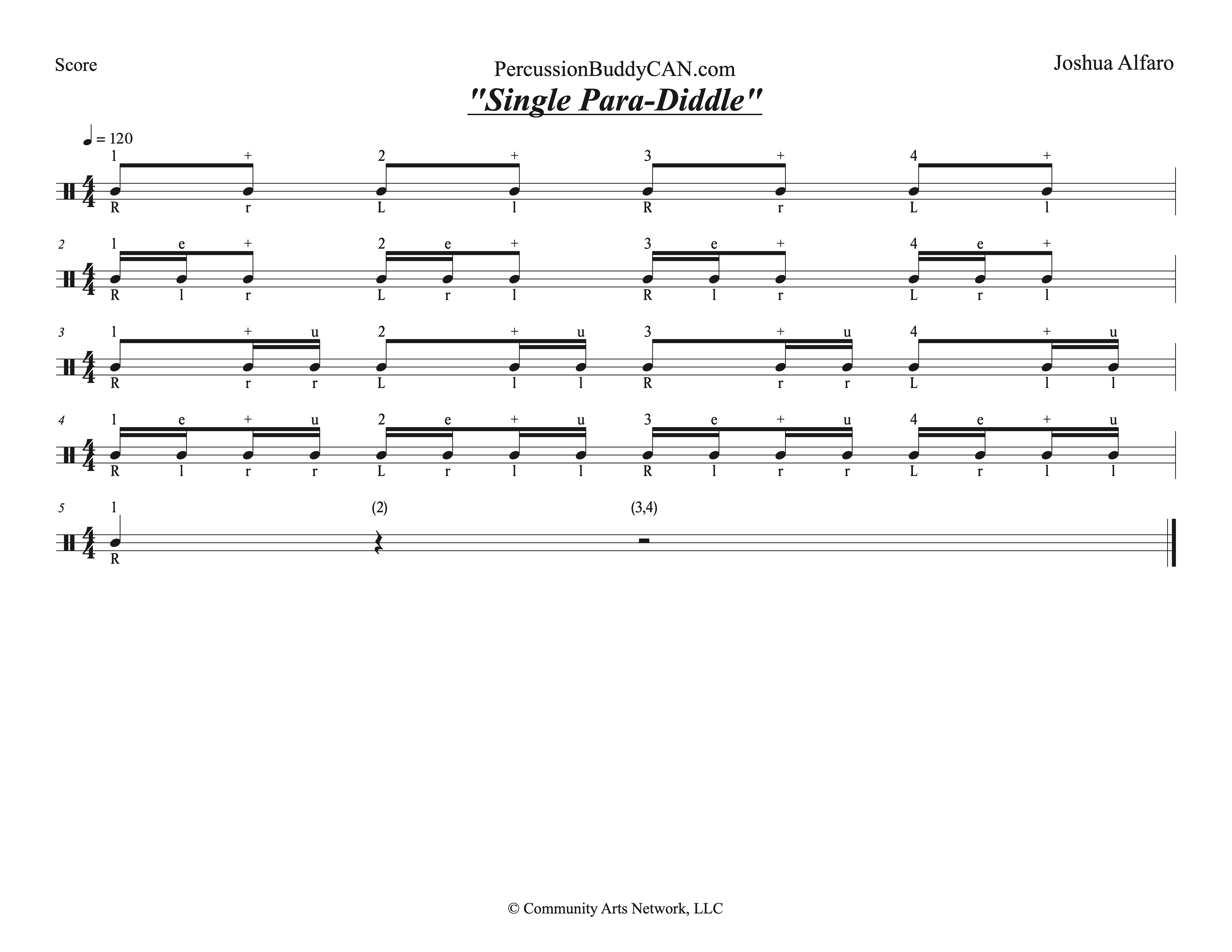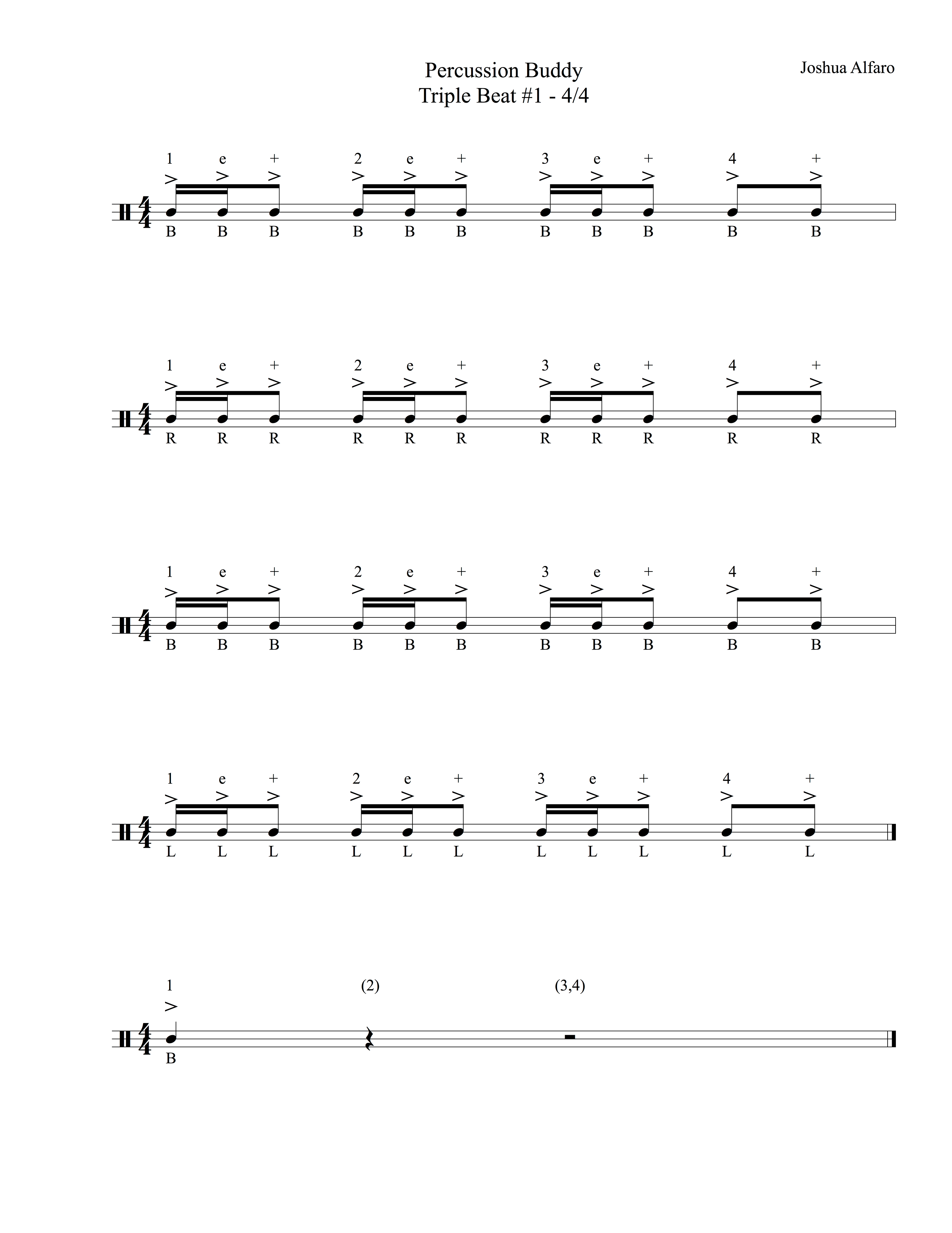 "Two Heights, Multistroke" - A percussion passage that includes a set of multiple strokes in each count.