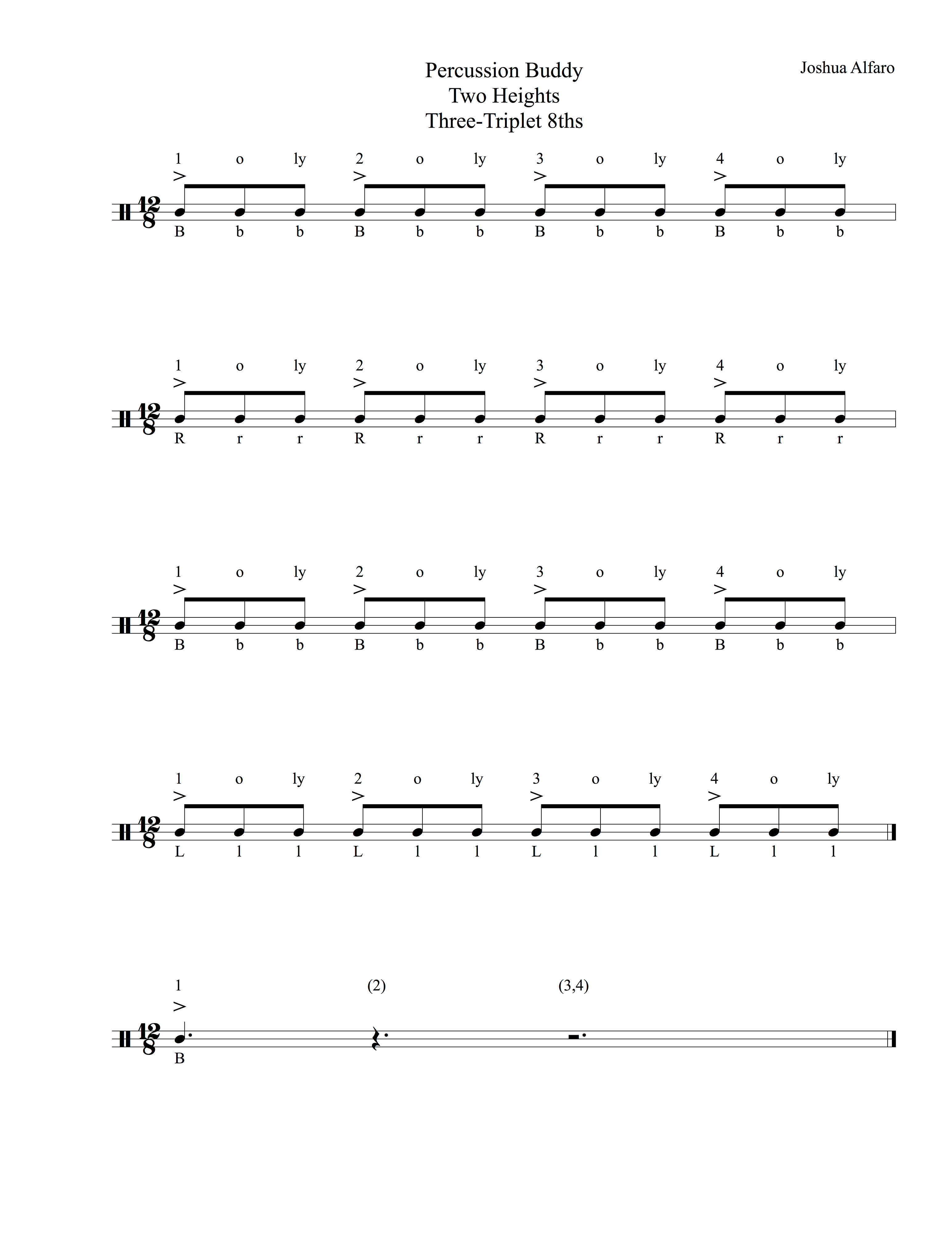 "Two Heights" - A percussion passage where the stick or hand angle for accented notes is vertical, while the stick or hand angle for non-accented notes is horizontal.