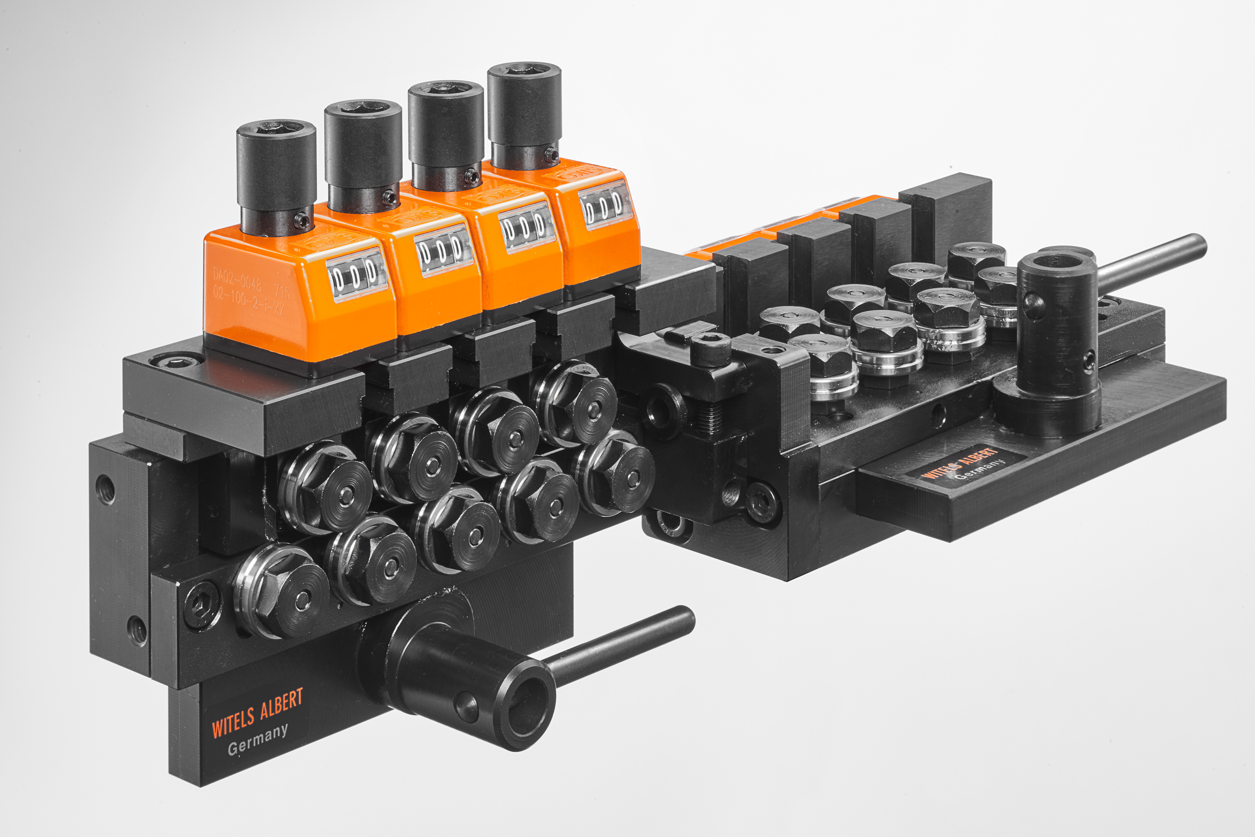 Les accessoires les plus vendus par WITELS-ALBERT pour les dresseurs ER sont les indicateurs mécaniques de position PO pour le réglage défini et reproductible des galets de dressage. Les indicateurs de position PO sont disponibles en différentes dimensions et peuvent être montés sur presque toutes les séries de dresseurs. Les nouveaux dresseurs ER 5-0.8 PO, ER 7-0.8 PO, ER 9-0.8 PO, ER 11-0.8 PO et ER 13-0.8 PO sont adaptées au travail de fils d'un diamètre de 0,5 mm à 0,8 mm.