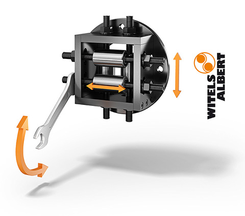 En raison de la conception spéciale des axes de rouleaux, le déplacement axial des axes de rouleaux est également possible. Les axes des rouleaux en plusieurs parties et à filetage extérieur dépassent plus ou moins latéralement du bâti du guidage après le déplacement axial. Avec un peu d’entrainement, l’utilisateur possède l’avantage de régler correctement le point de contact ou d'usure et de multiplier par 4 la durée de vie des rouleaux.
