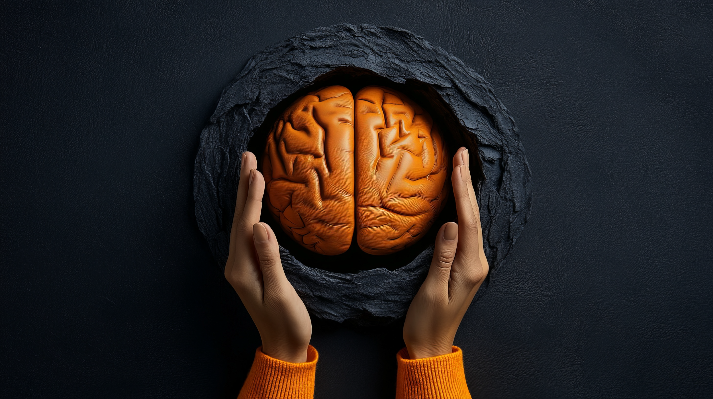 Created with images by Christian Horz - "top view of old typewriter and crumpled paper balls on blue desk background, writing or blogging concept" • airdone - "Who am I concept. Anonymouse muslim lady wearing hijab covering her face with paper of question mark" • NAPHAT - "Brain in Focus: A conceptual artistic representation of the human brain, held tenderly within hands, highlighting the significance of cognitive function." • Din Nasahrudin - "Gold texture metallic golden foil and shinny wrapping paper bright yellow wallpaper background for design decoration element" • Daniel Coulmann - "Figuren / Isolation" • peshkova - "Innovation and creativity concept"