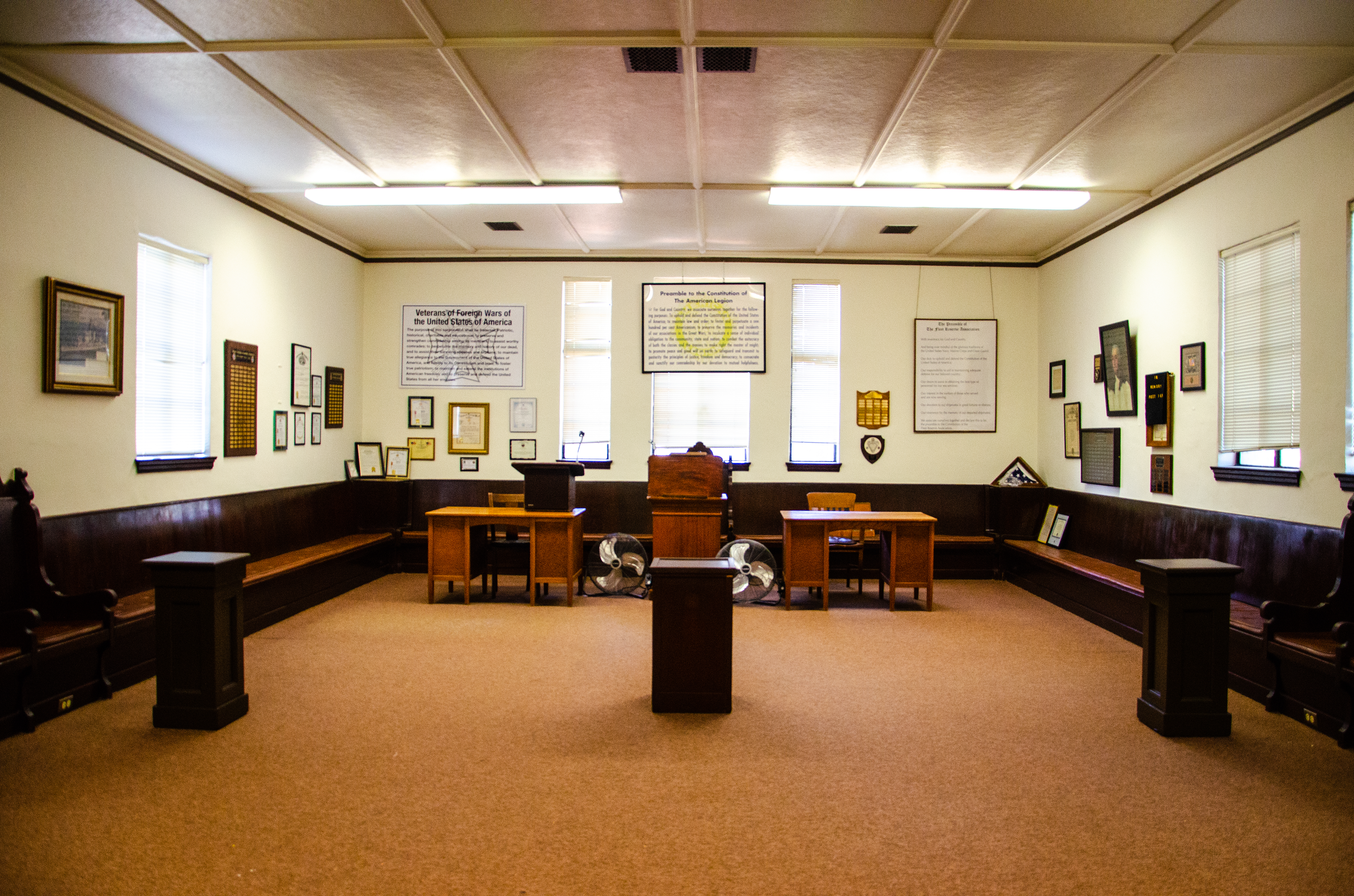 The memorial building is home to the Alyn W. Butler American Legion Post 169, Veterans of Foreign Wars Post 1487, Vietnam Veterans of America Chapter 500, Fleet Reserve Association Sunrise Branch Unit #230 and Ladies Auxiliary of the Fleet Reserve Association.
