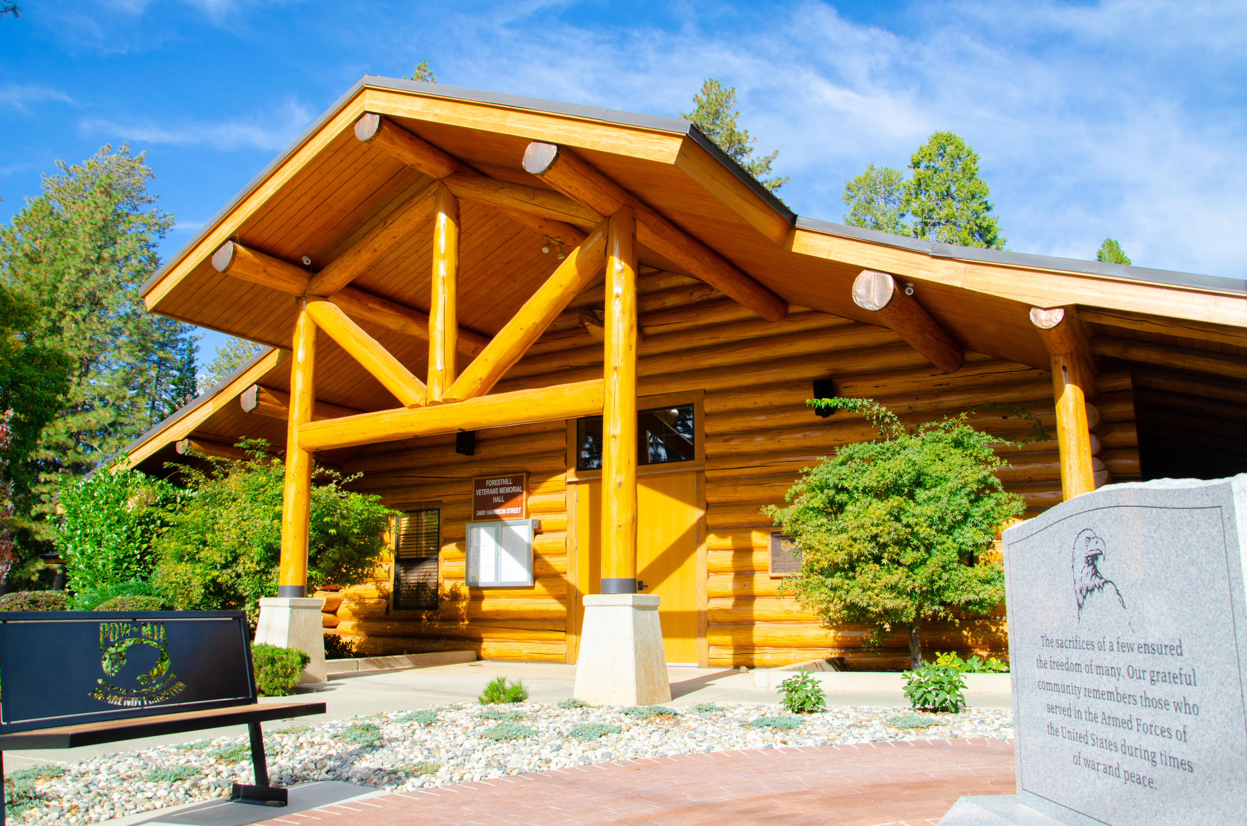 The Foresthill Veterans Memorial Hall is located at 24601 Harrison Street in Foresthill.