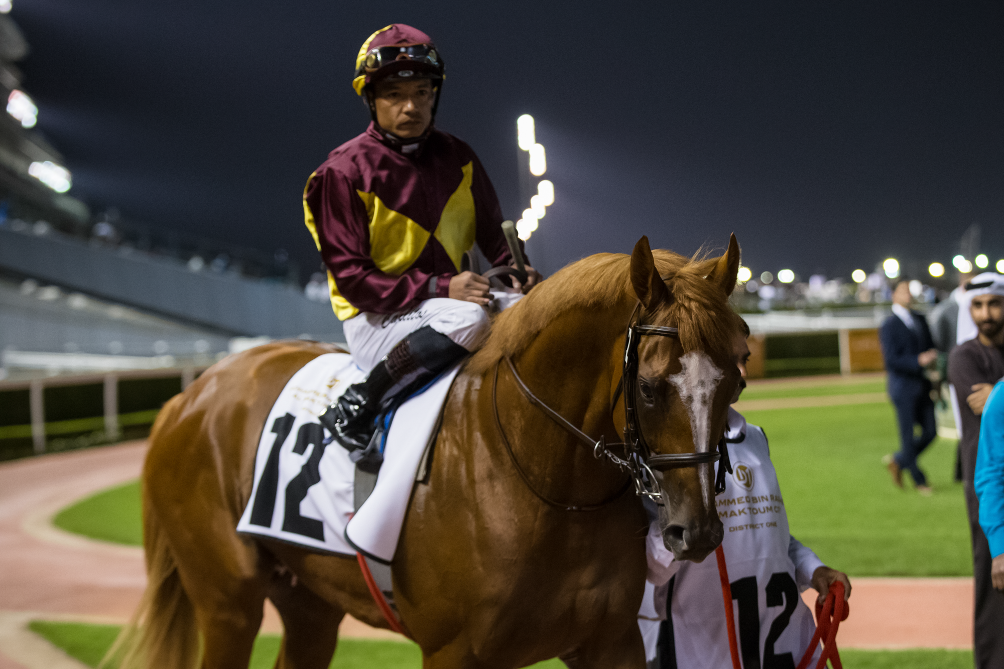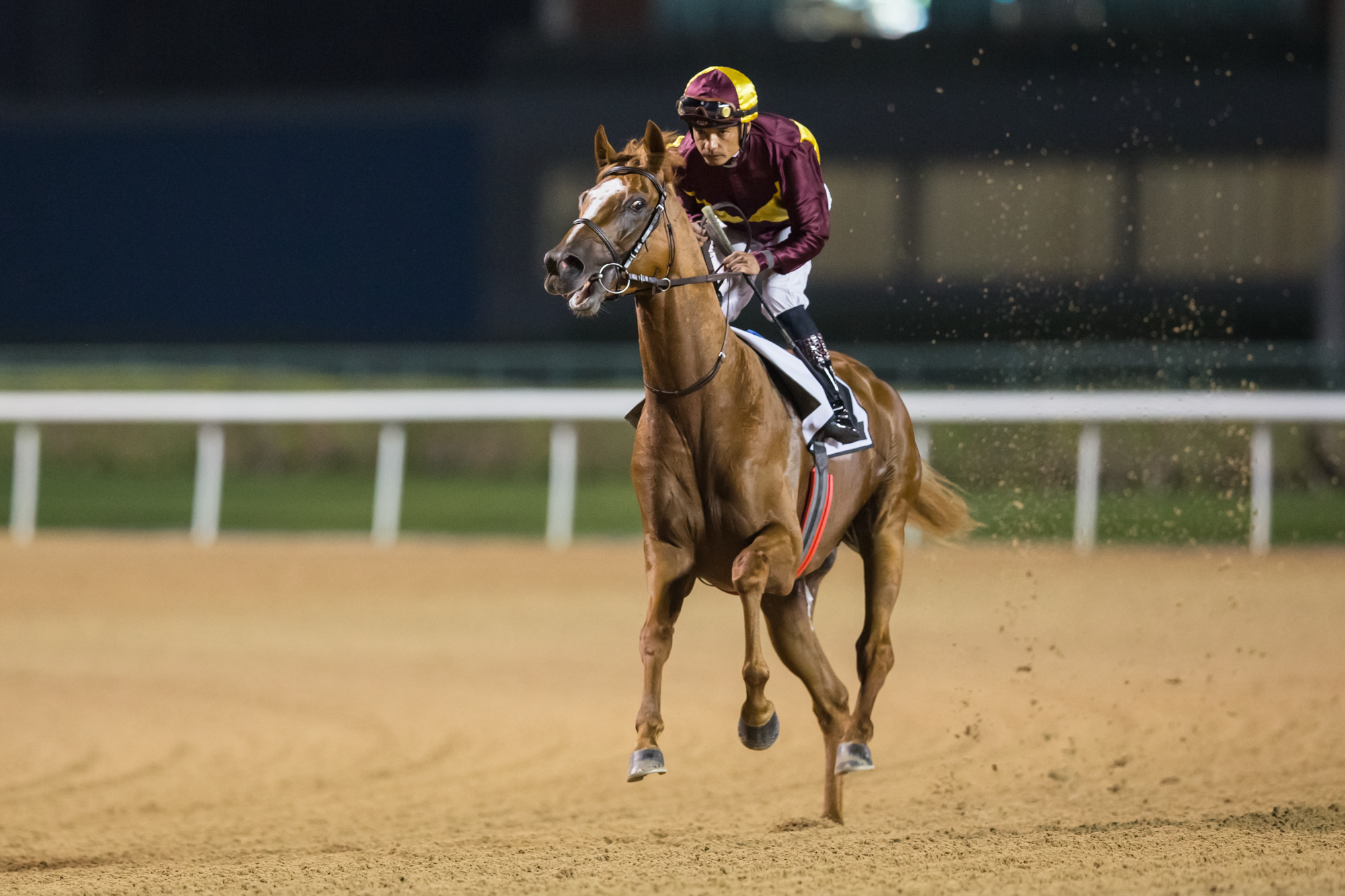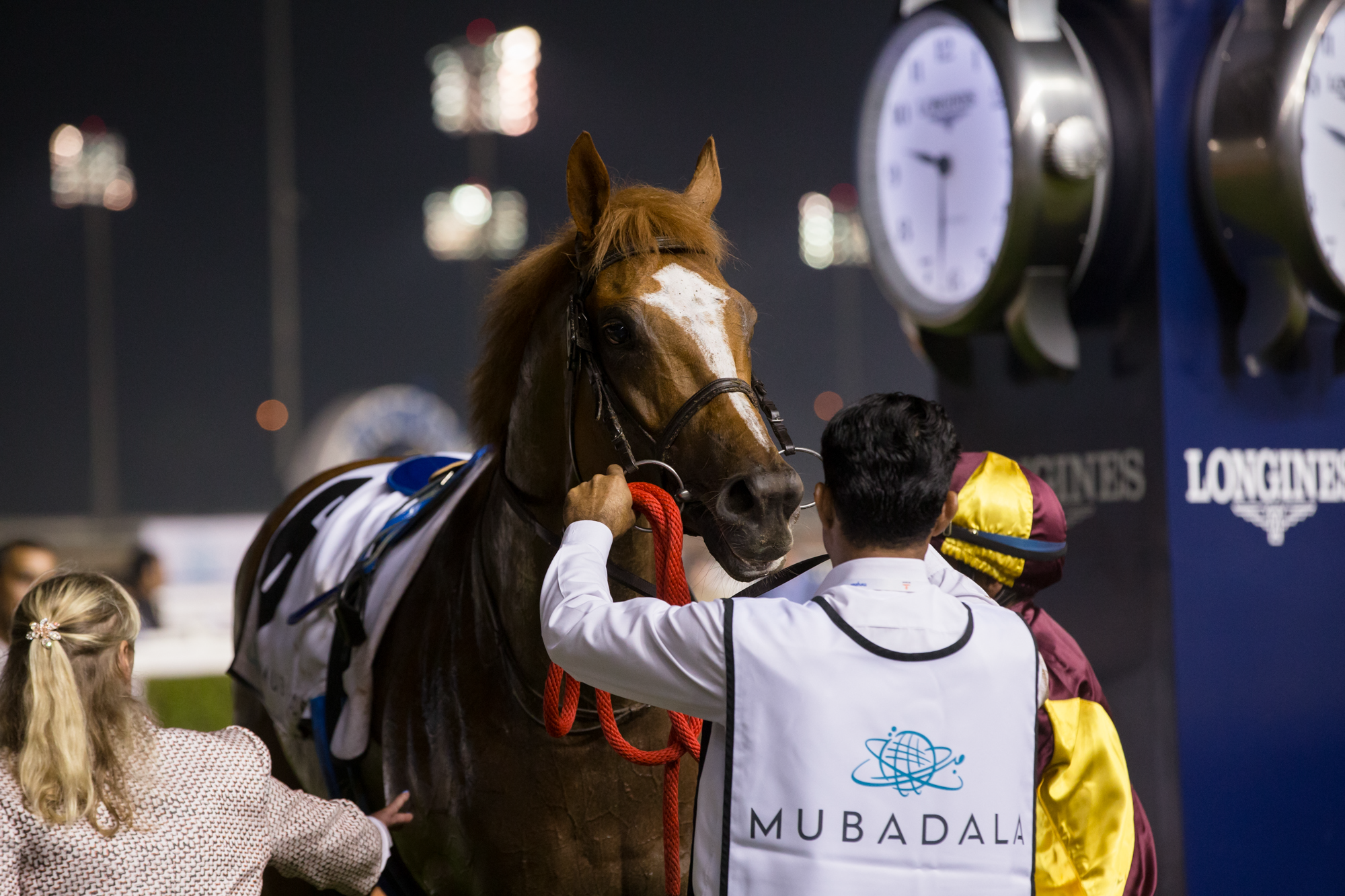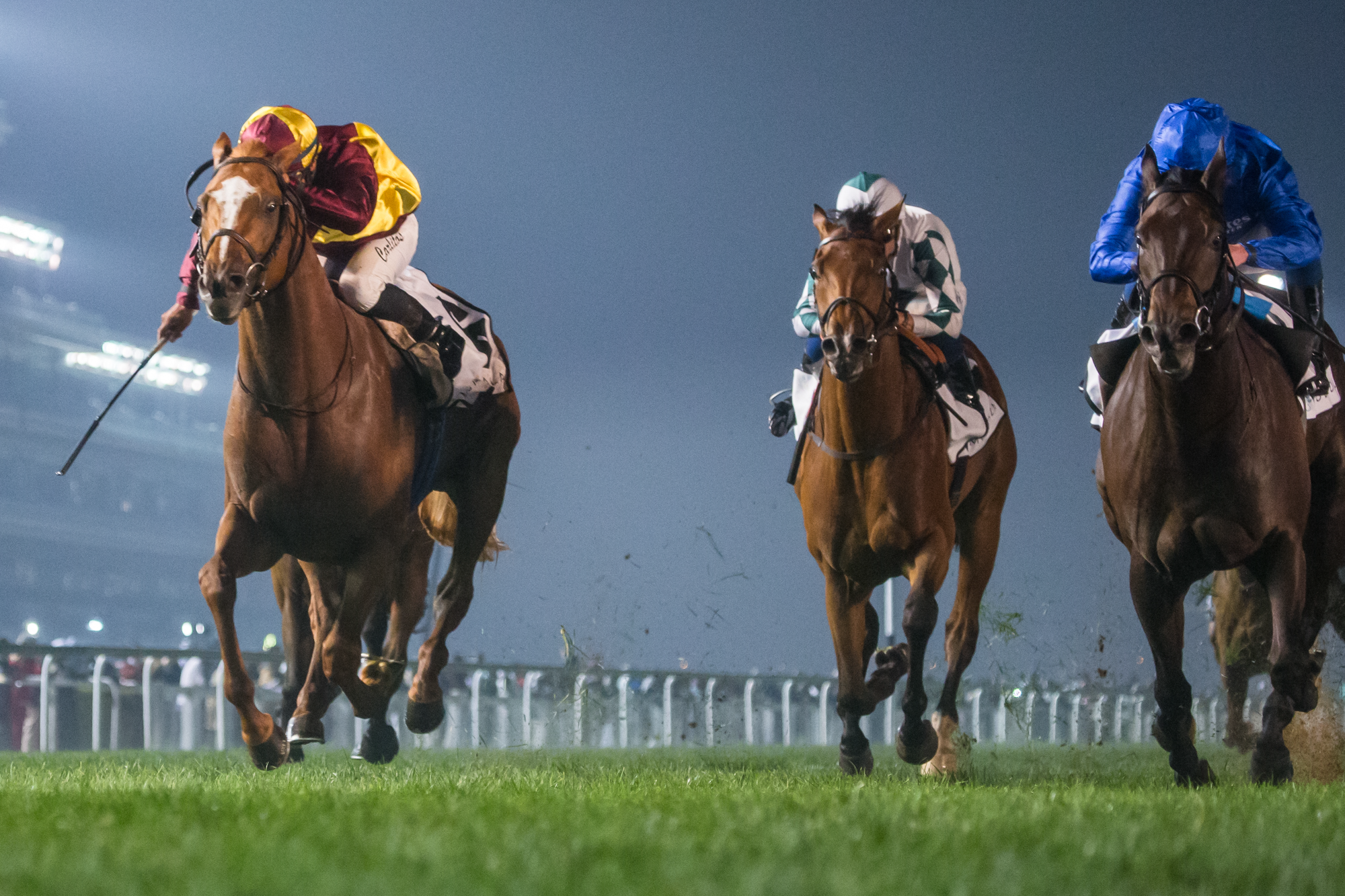 2. i Strata Trophy (1800 meter græs, Meydan) med kort hoved bag Art Du Val.