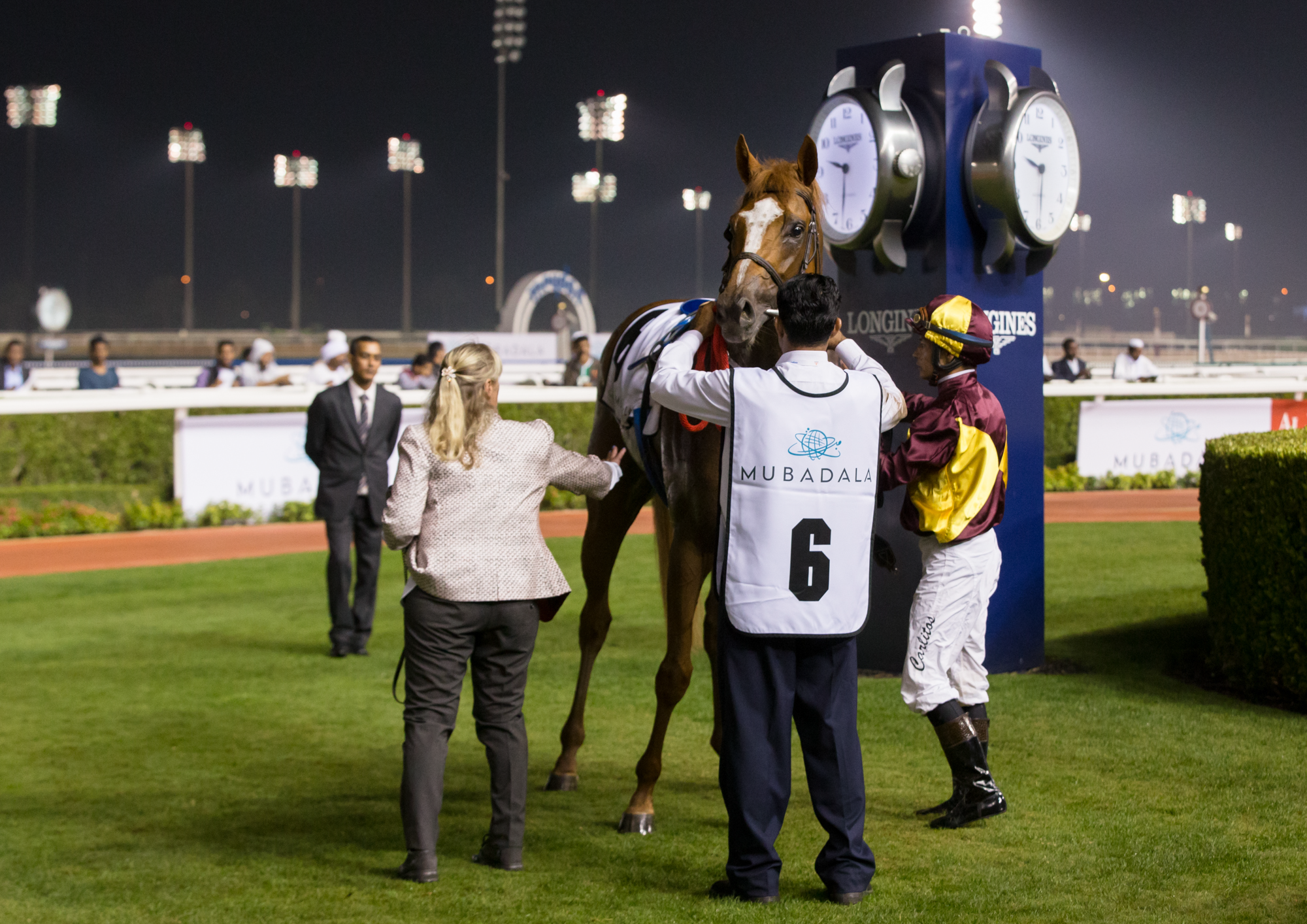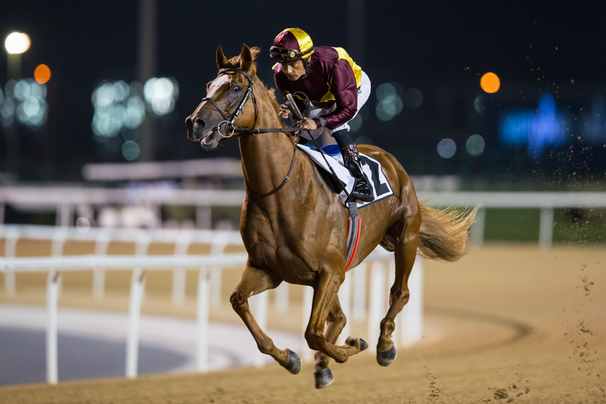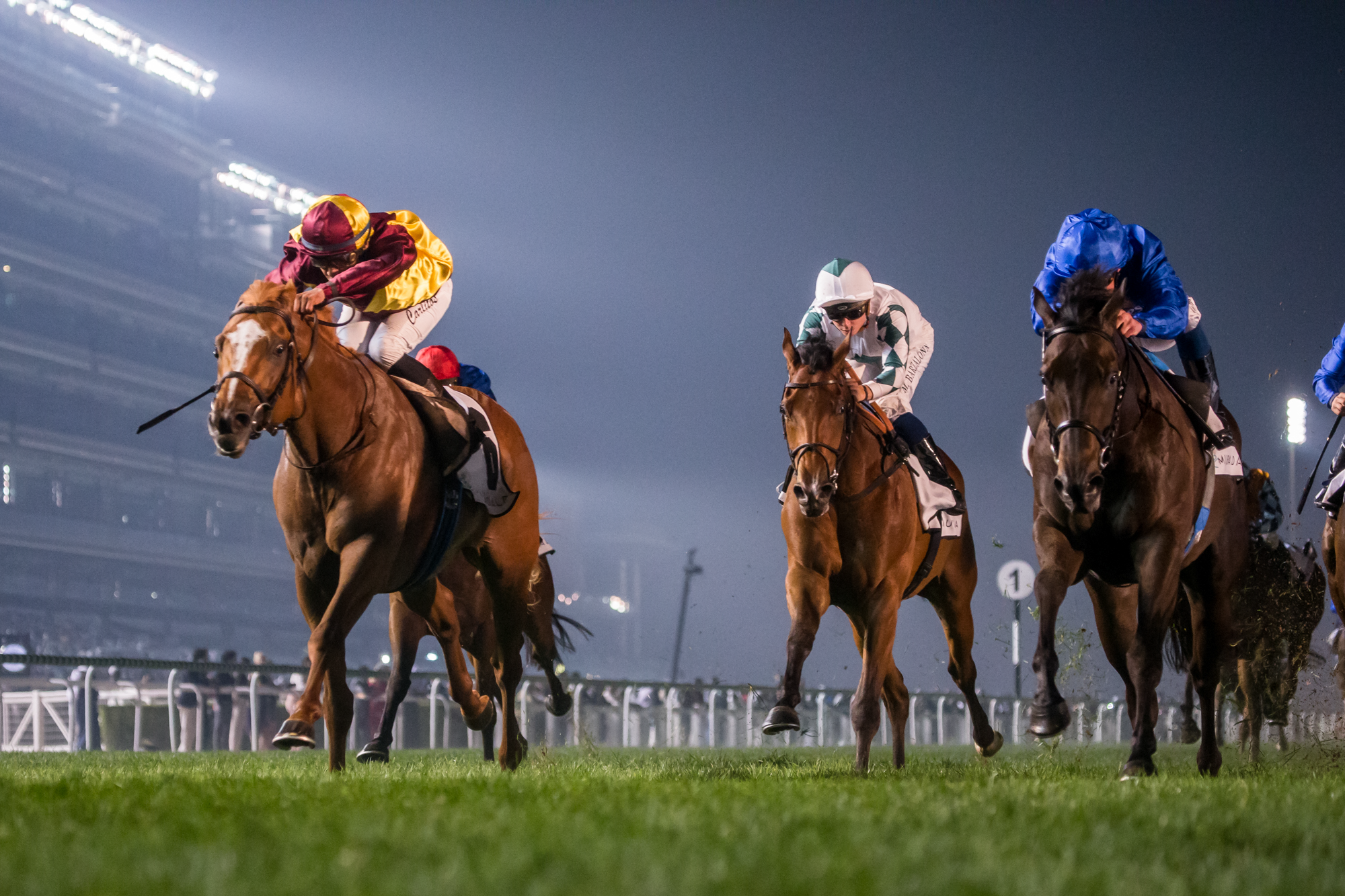 2. i Strata Trophy (1800 meter græs, Meydan) med kort hoved bag Art Du Val.