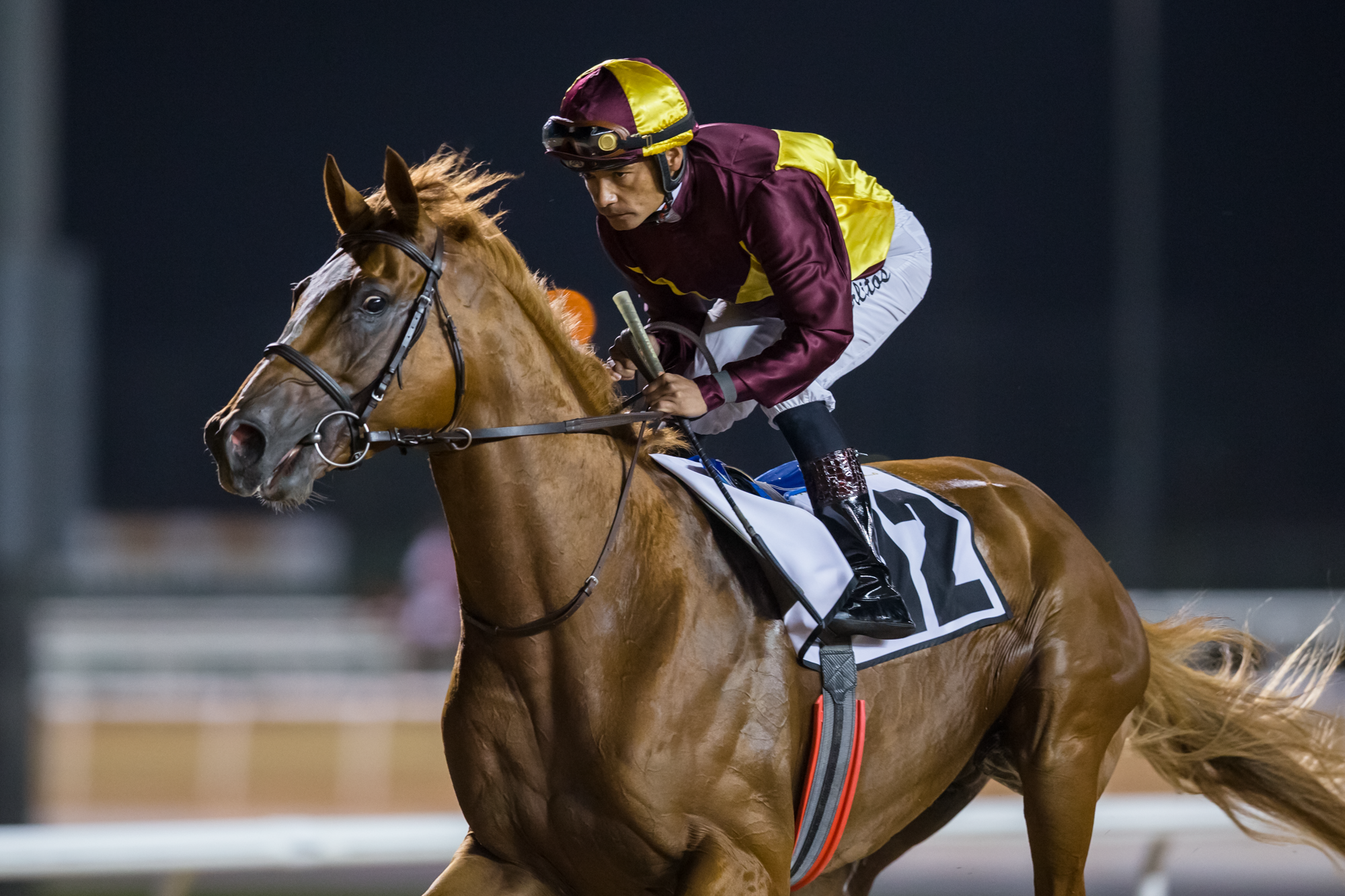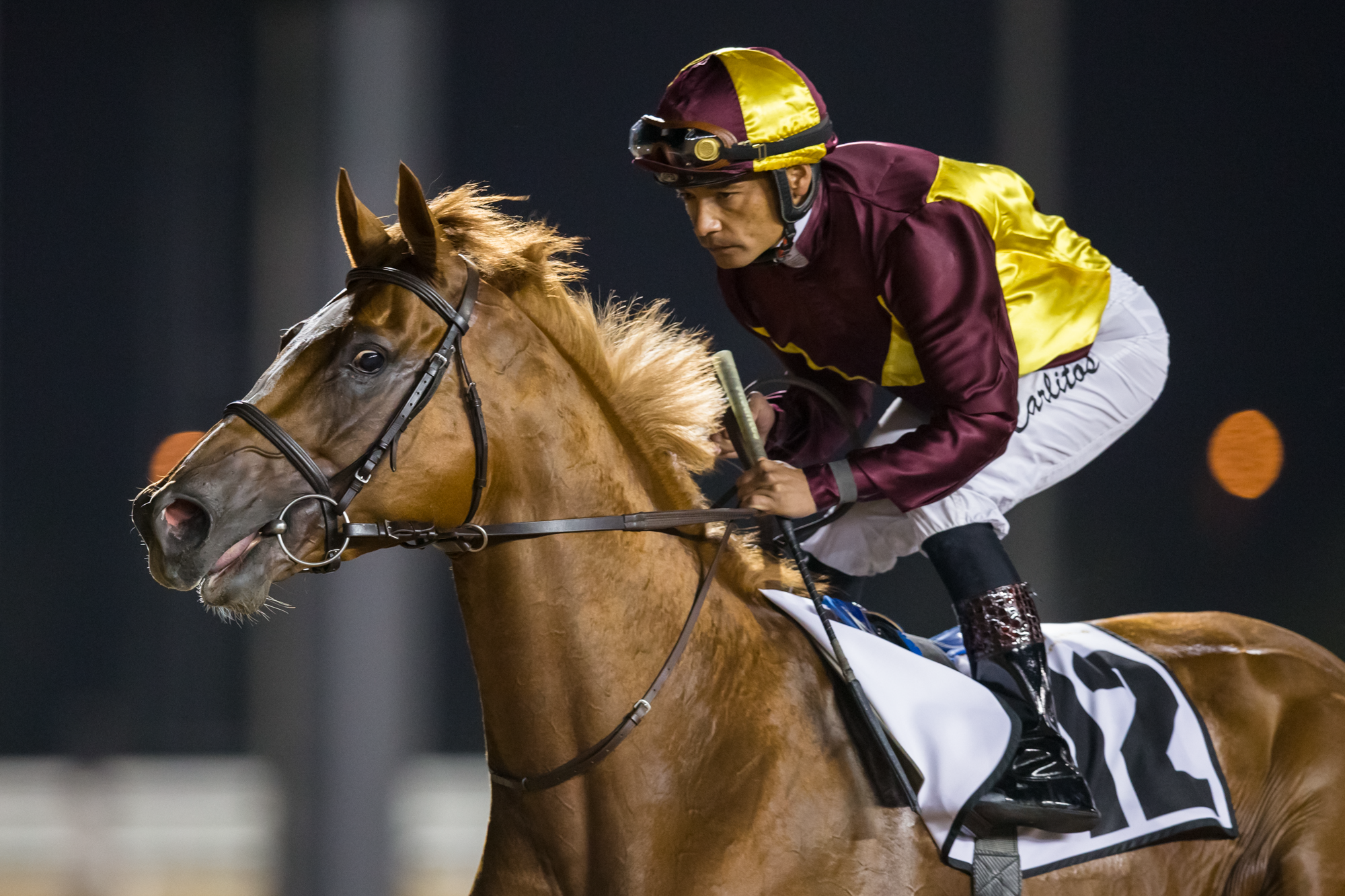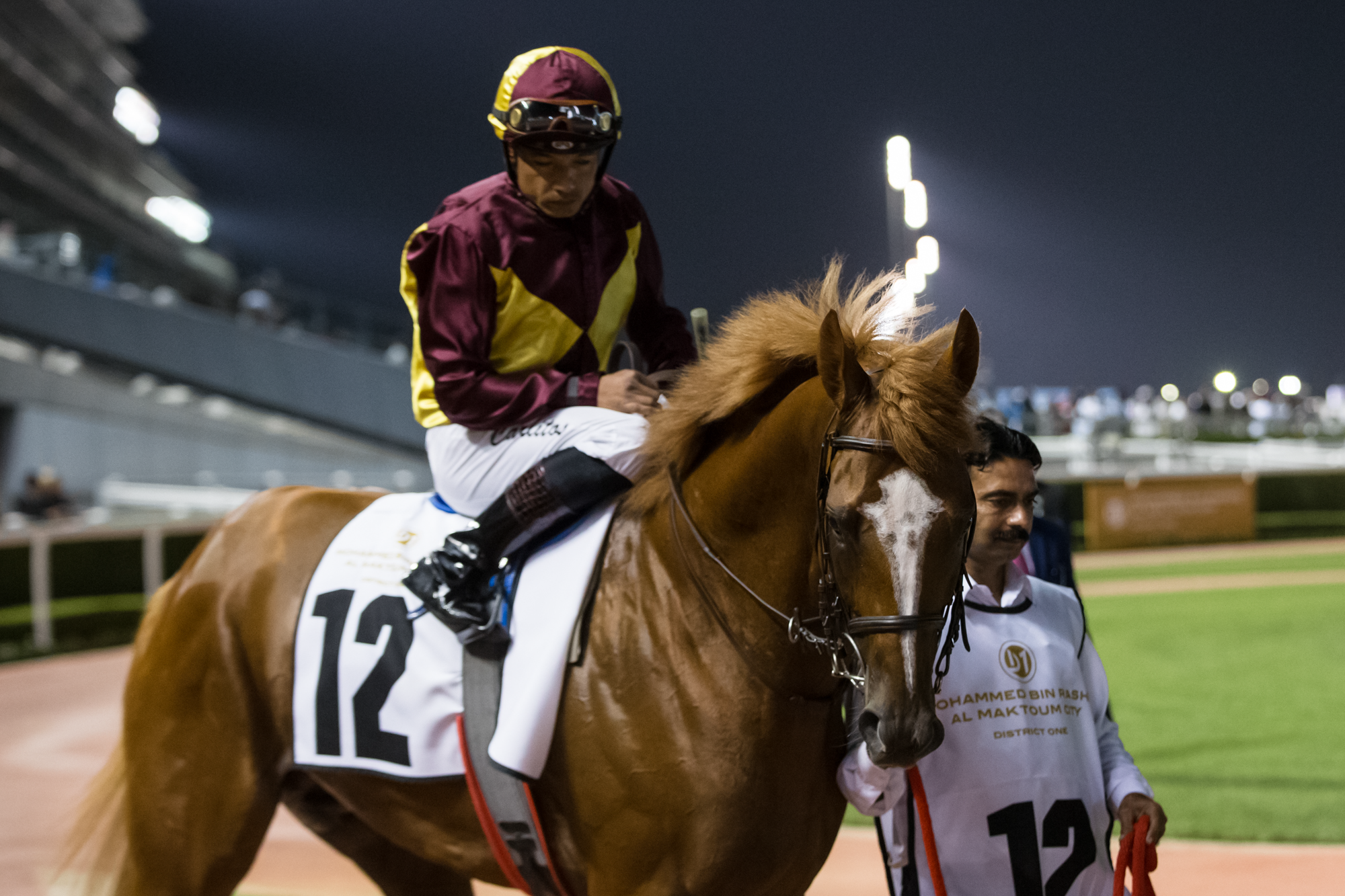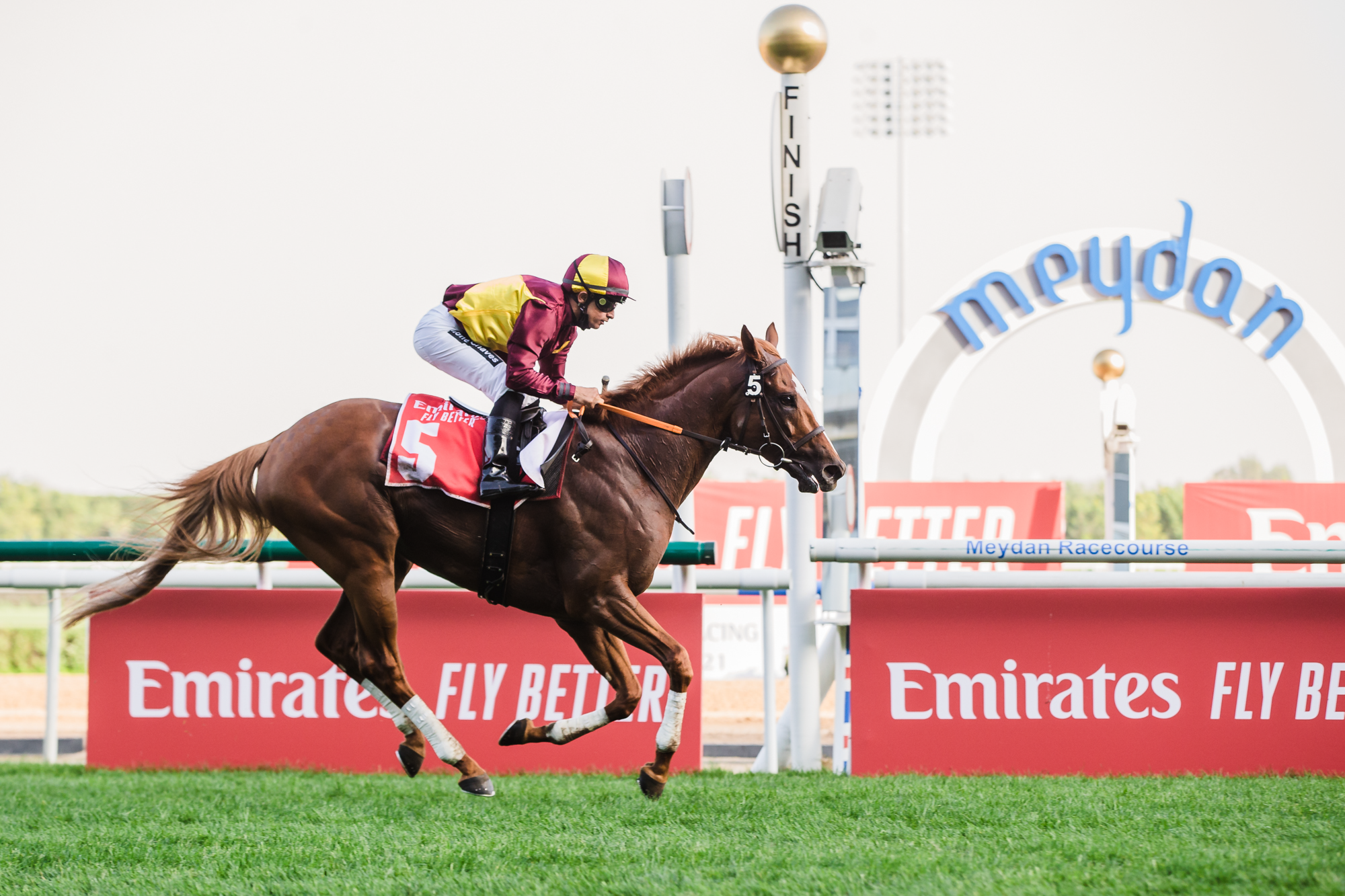 2. i Strata Trophy (1800 meter græs, Meydan) med kort hoved bag Art Du Val.