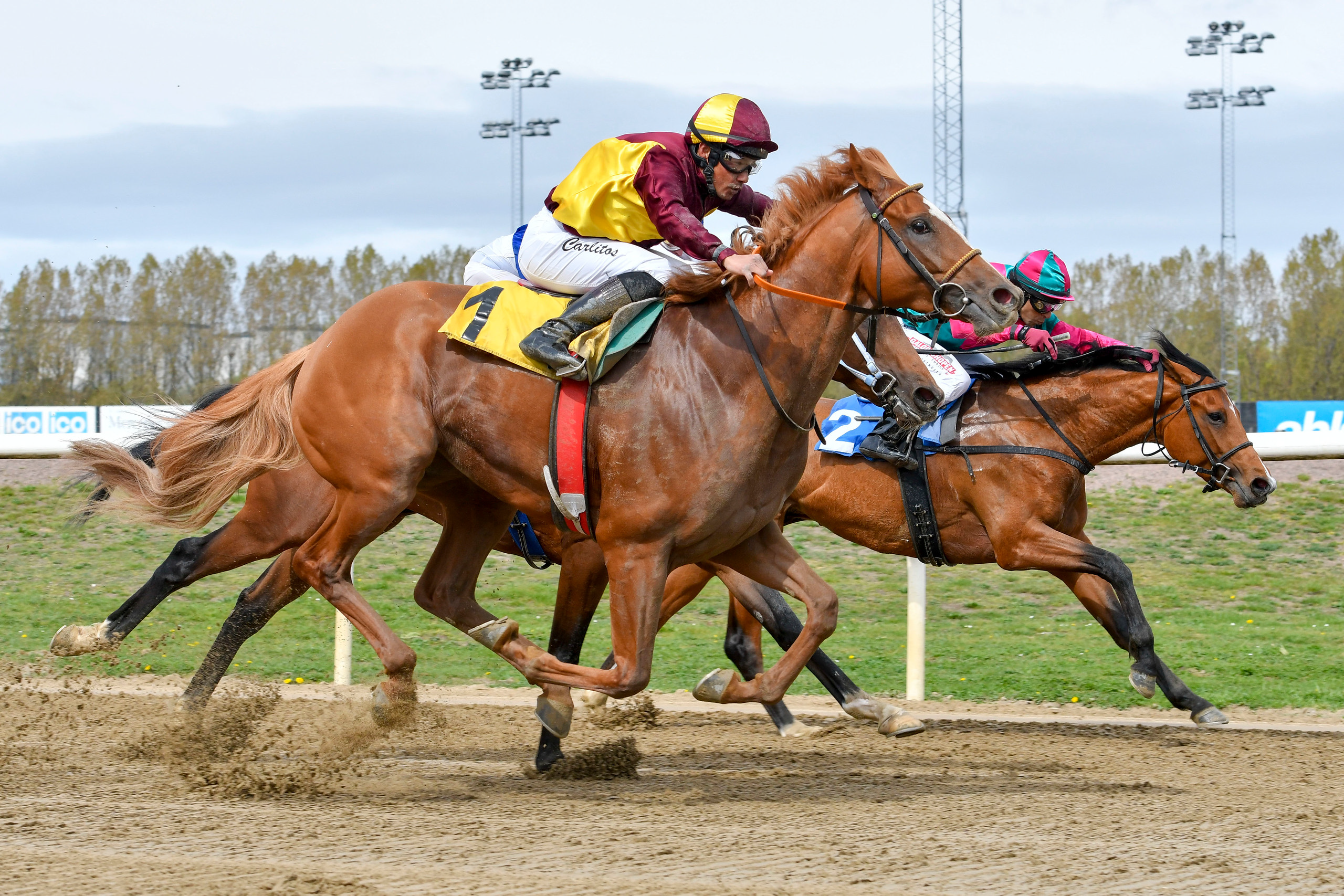 Vinder af Hurricanelöpning (2650 meter dirt, Jägersro), 4,5 længder foran All Run, Plantstepsdream etc.