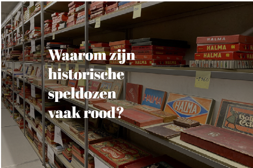 Om de afronding van dit jarenlange registratietraject te vieren, kozen de vrijwilligers nogmaals een favoriet spel uit. Dit keer met focus op eerste helft van de 20ste eeuw. In die periode waren speldozen meestal rood van kleur. Rood karton was toen makkelijk te maken. Tijdens de Eerste Wereldoorlog controleerde de Duitse bezetter de kartonproductie om de propaganda in eigen handen te houden. Spellen moesten uit rood karton gemaakt worden. Elke speluitgever kreeg genummerde rollen rood karton. Pas vanaf 1948 duiken opnieuw spellen op in andere kleuren, met Monopoly als koploper. Voor spellen zoals Halma en Mens erger je niet bleef de rode kleur verder gehandhaafd tot ca. 1970 omwille van de herkenbaarheid. Vandaar dat heel wat spellen uit de 20ste eeuw in een rode doos zitten.