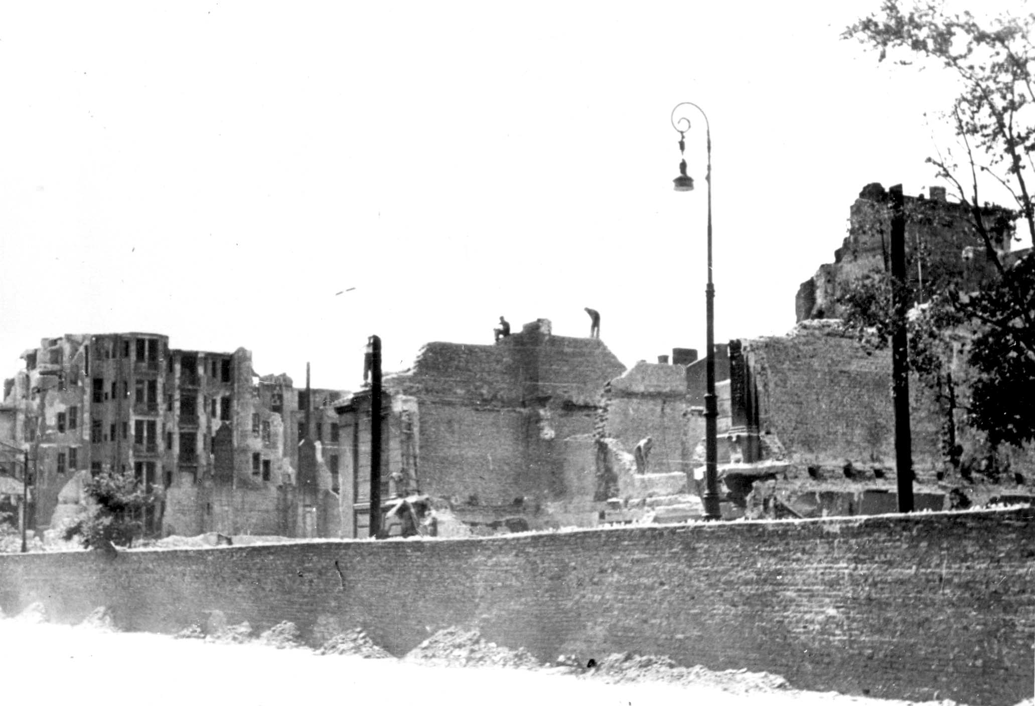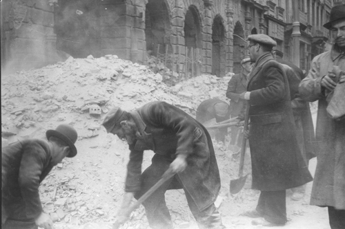 Construction du mur du ghetto. Varsovie, Pologne, vers 1940. Source : Yad Vashem.