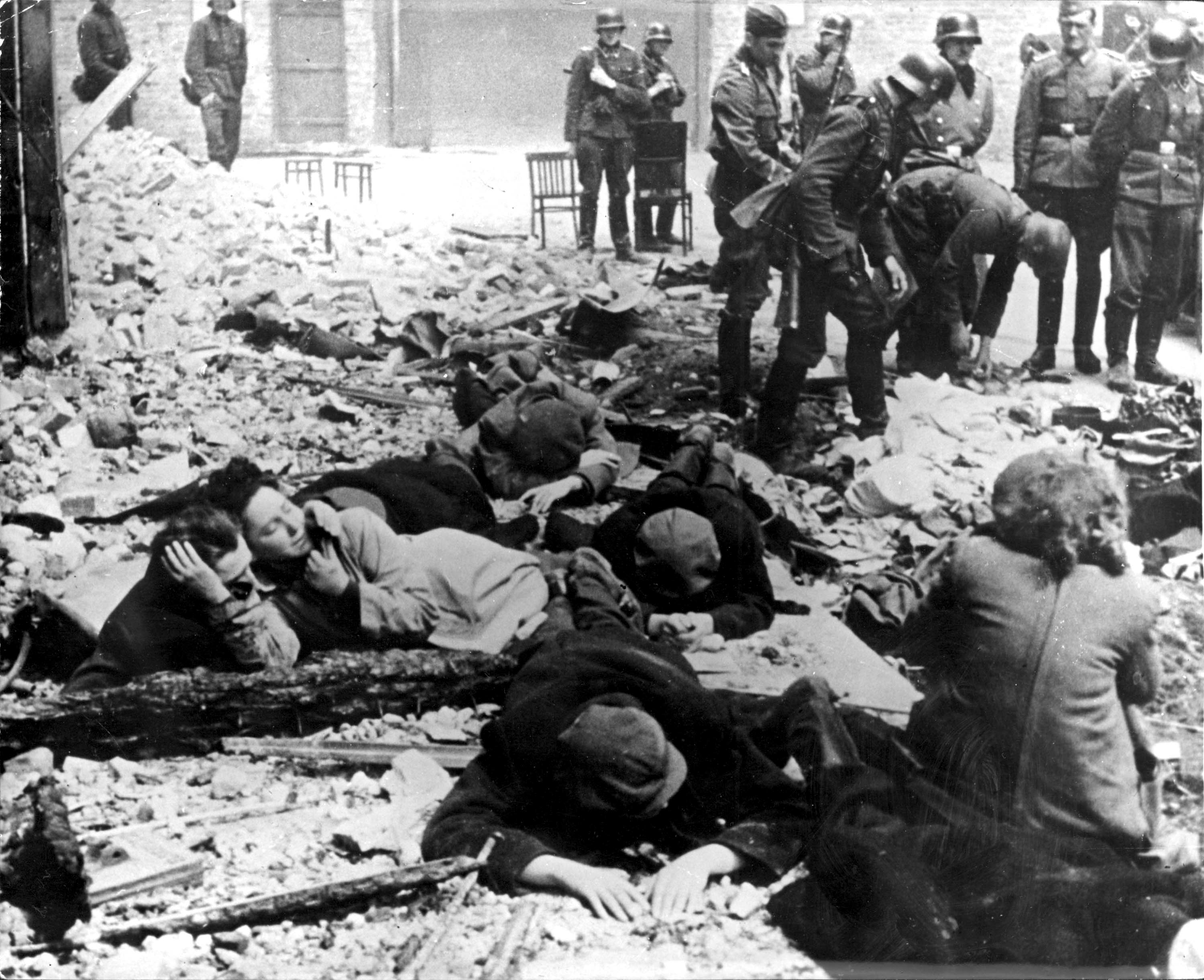 Les déportations étaient de plus en plus fréquentes et, d’après certaines rumeurs, le ghetto allait bientôt être rasé et tous les Juifs qui s’y trouvaient conduits dans les camps de concentration et de la mort. Pour faire face à cette menace, les Juifs du ghetto préparaient une résistance armée. L’Organisation juive de combat (Żydowska Organizacja Bojowa, ou ŻOB) est parvenue à communiquer avec armée de l’Intérieur polonaise en dehors du ghetto afin de planifier une attaque coordonnée le moment où les Allemands essaieraient de vider le ghetto de ses occupants. Lorsque les Allemands sont entrés dans le ghetto le 19 avril 1943, les Juifs se sont cachés dans les bunkers, tandis que les combattants de la ŻOB ouvraient le feu sur les Allemands à l’aide d’armes introduites clandestinement dans le ghetto. L’attaque a pris les Allemands par surprise, et l’affrontement a duré près d’un mois. Mais les armes des combattants résistants ne faisant pas le poids face à l’arsenal nazi, la plupart des Juifs ont été capturés et bon nombre d’entre eux tués quand l’armée allemande a mis le feu au ghetto.